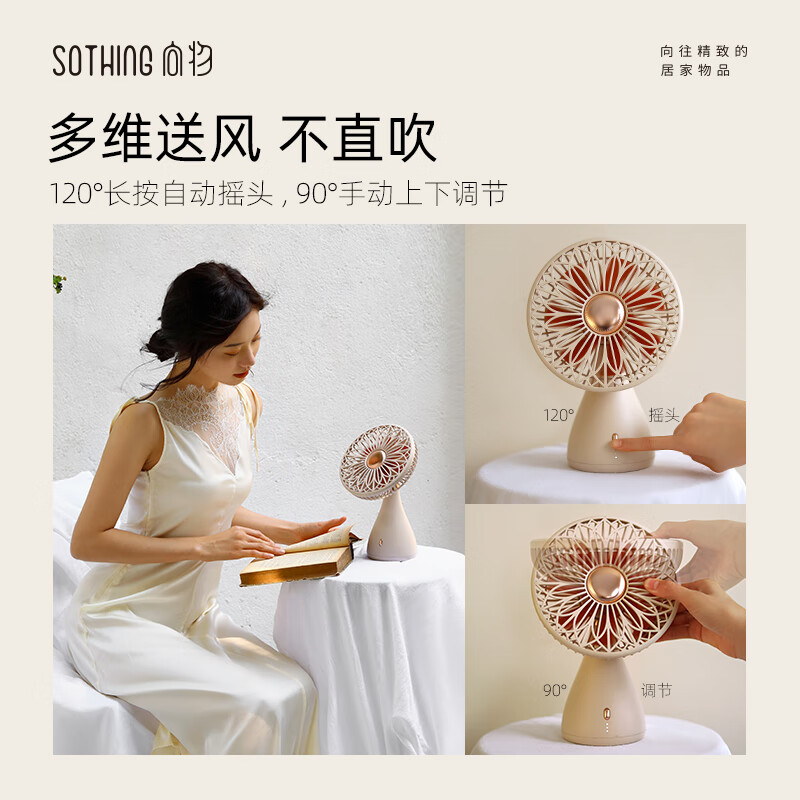向物(SOTHING) 桌面风扇-手捧花 充电版 杏白 DSHJ-S-2113A