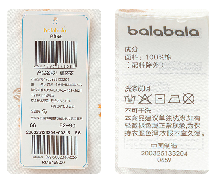 巴拉巴拉婴儿连体衣宝宝睡衣新生儿哈衣2025新款全棉