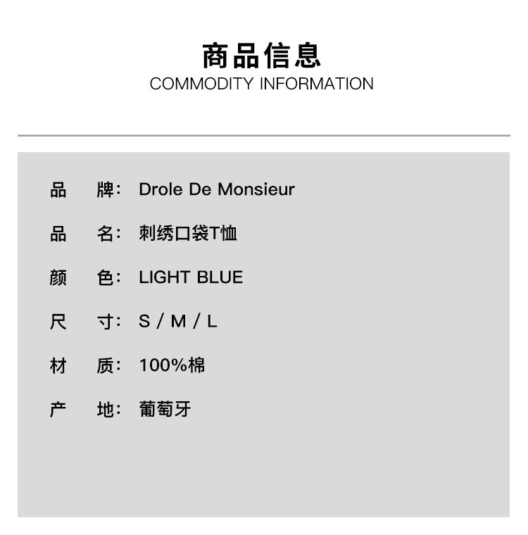 Drole De Monsieur Le T-Shirt Parasol 俱乐部刺绣口袋短袖T恤
