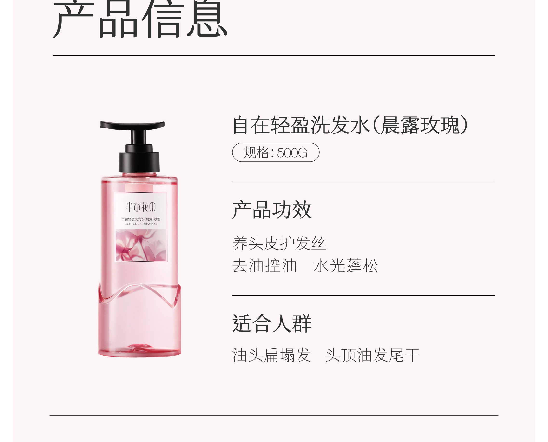 【控油蓬松、适合油性发质】【双旦|年终会员日】半亩花田自在轻盈洗发水(晨露玫瑰)500g 鲜花花水洗发水香蓬瓶控油蓬松去油清洁洗护