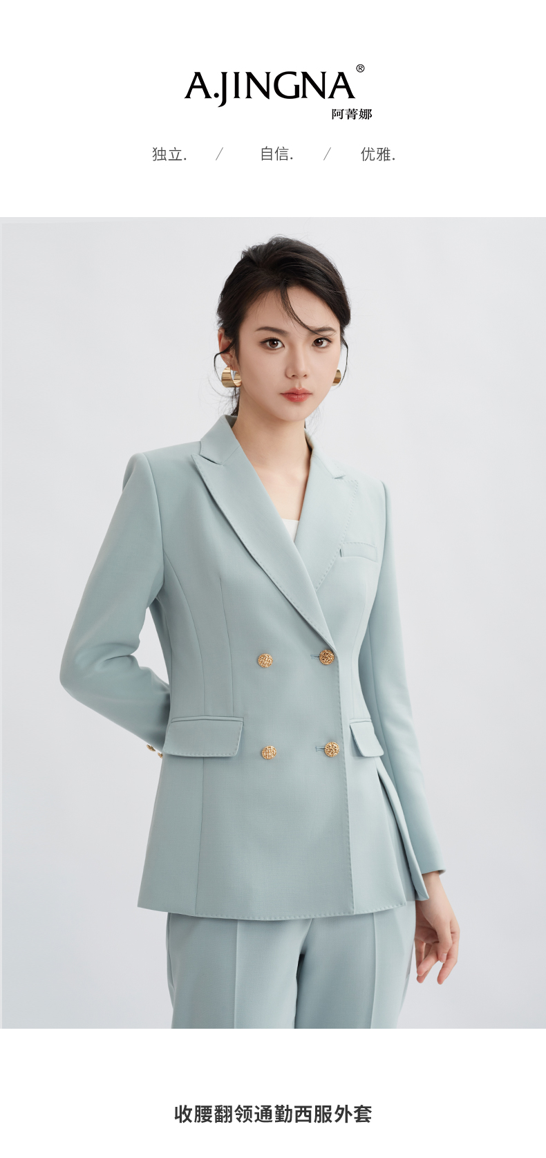 【雅致格调】阿菁娜收腰翻领显瘦通勤简约西服外套A29C208036