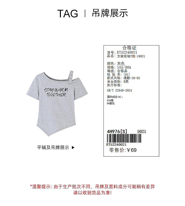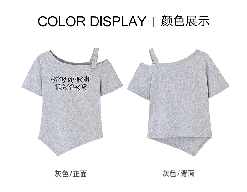 女装圆领露肩散粉短袖T恤-19921T5224002