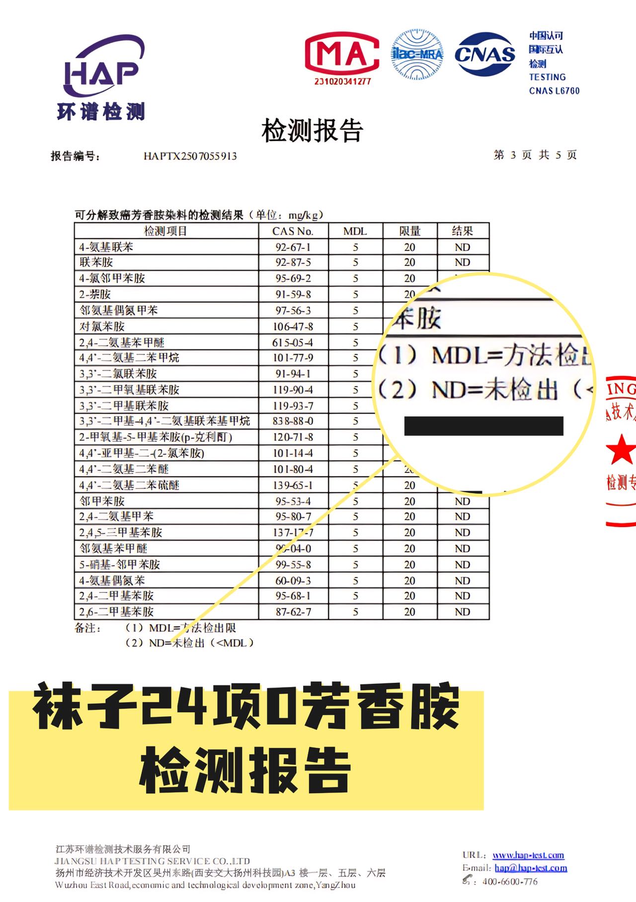 ④国标A类0甲醛0芳香胺染料,更健康的袜子穿着更放心