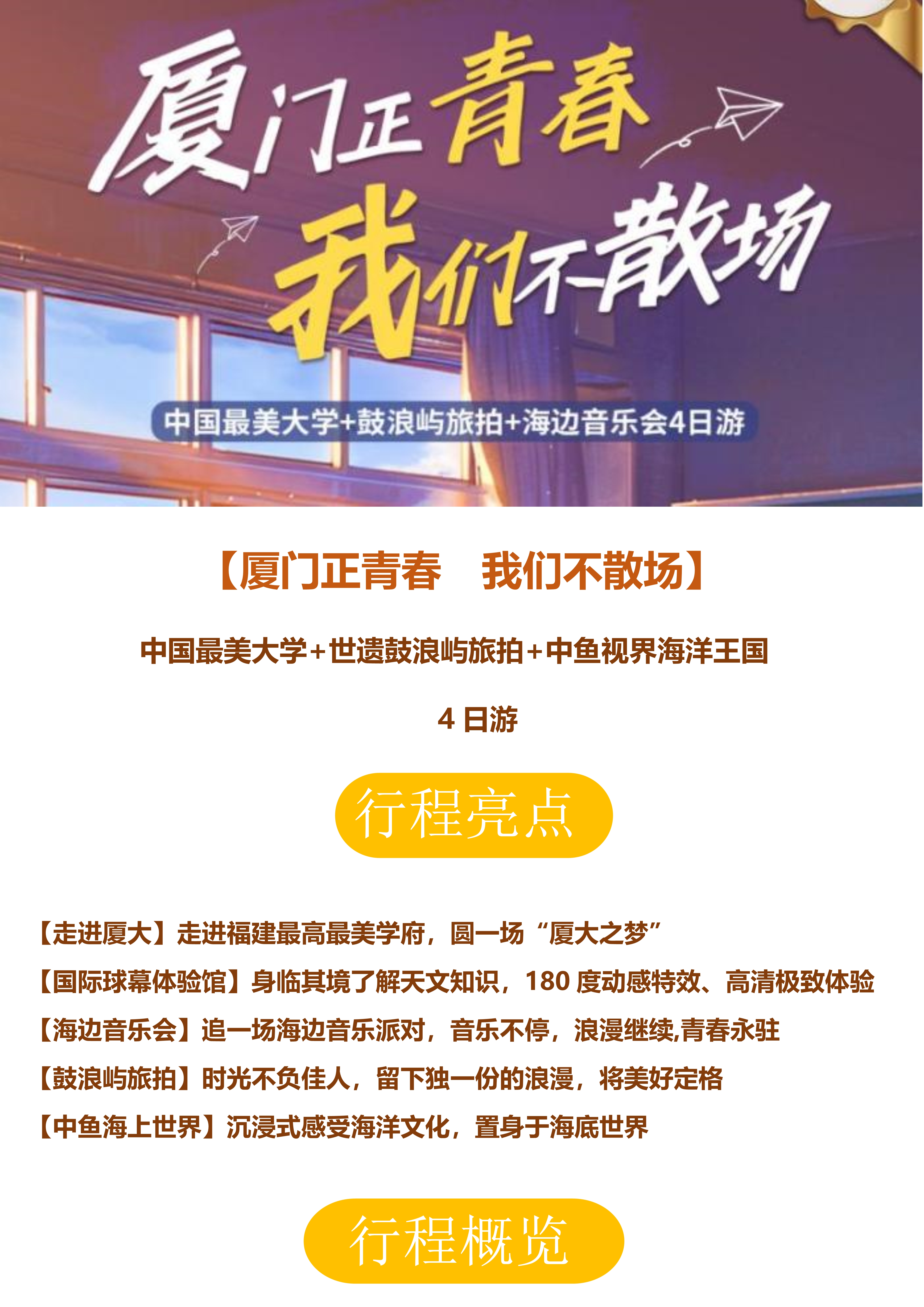 【厦门正青春 我们不散场】 中国最美大学+世遗鼓浪屿旅拍+中鱼视界海洋王国 4 日游
