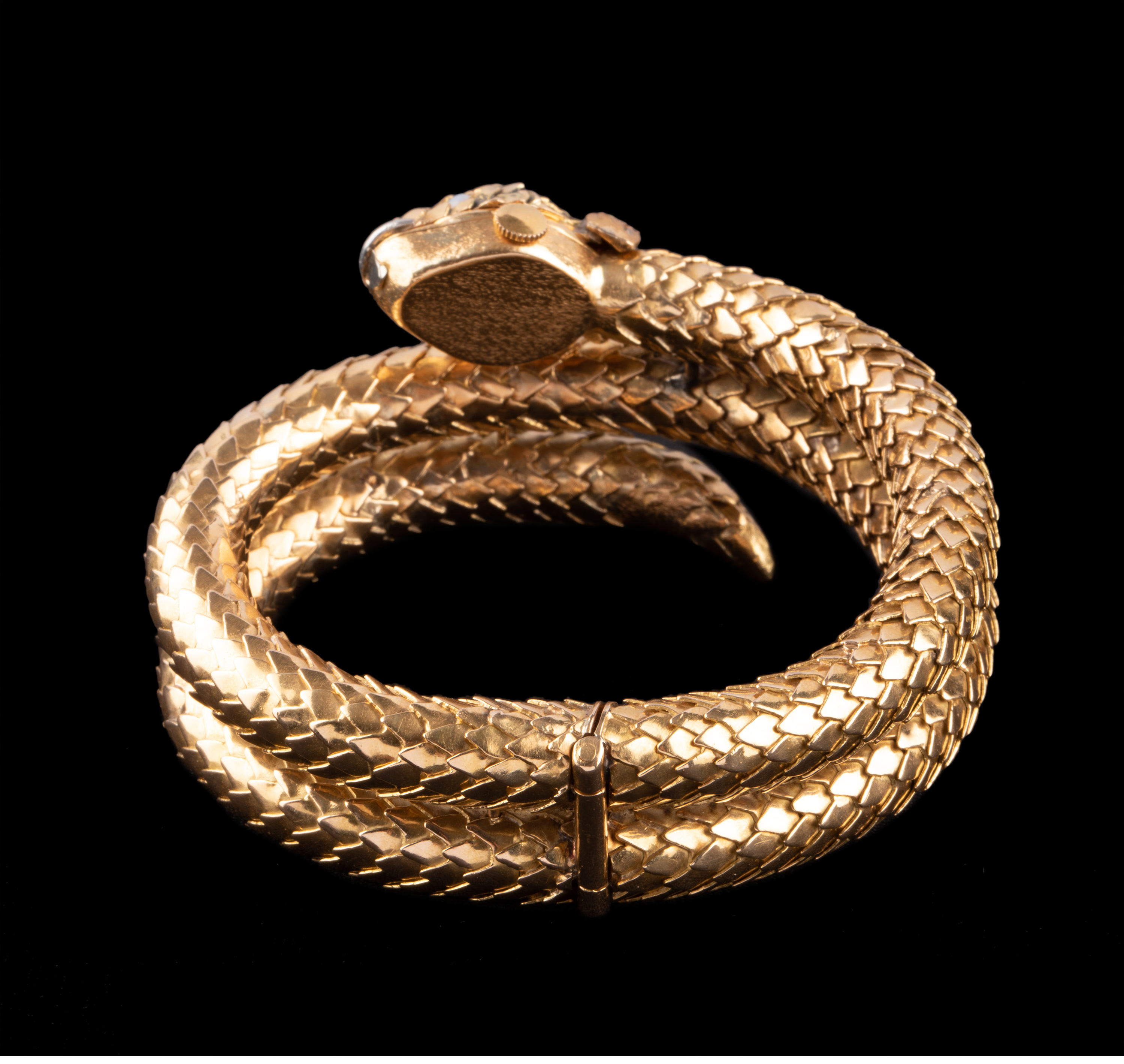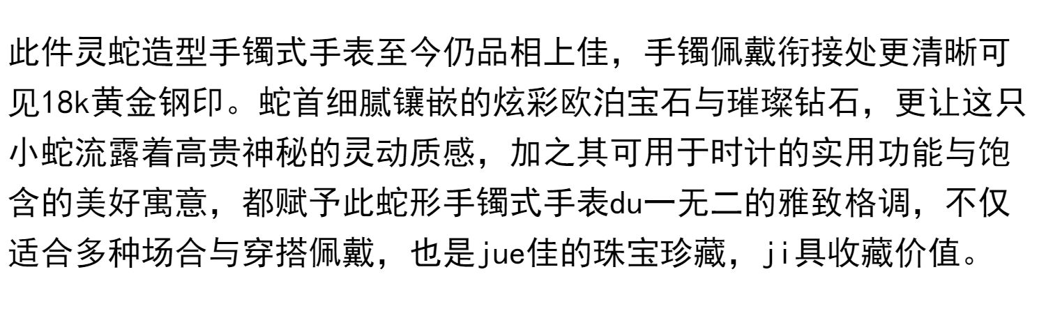 独角鹿西洋古董瑞士18K黄金镶嵌欧泊石钻石灵蛇造型手镯式女手表
