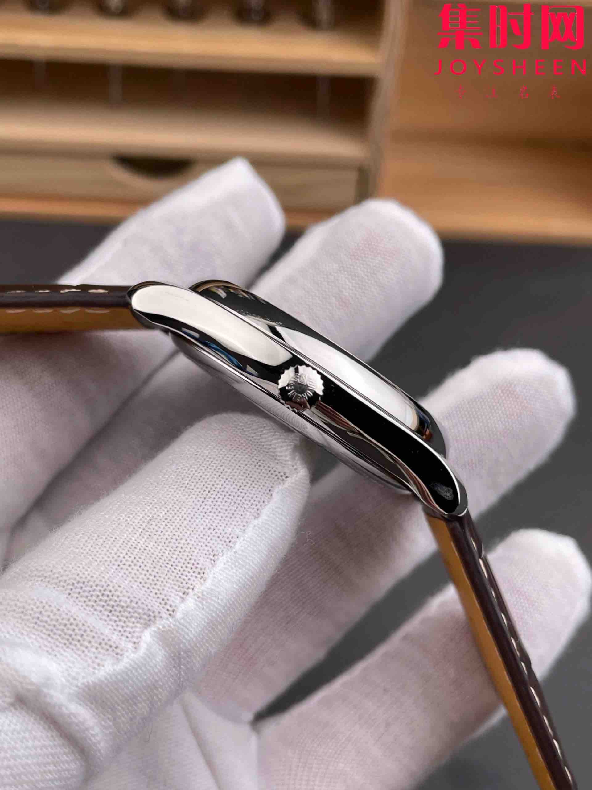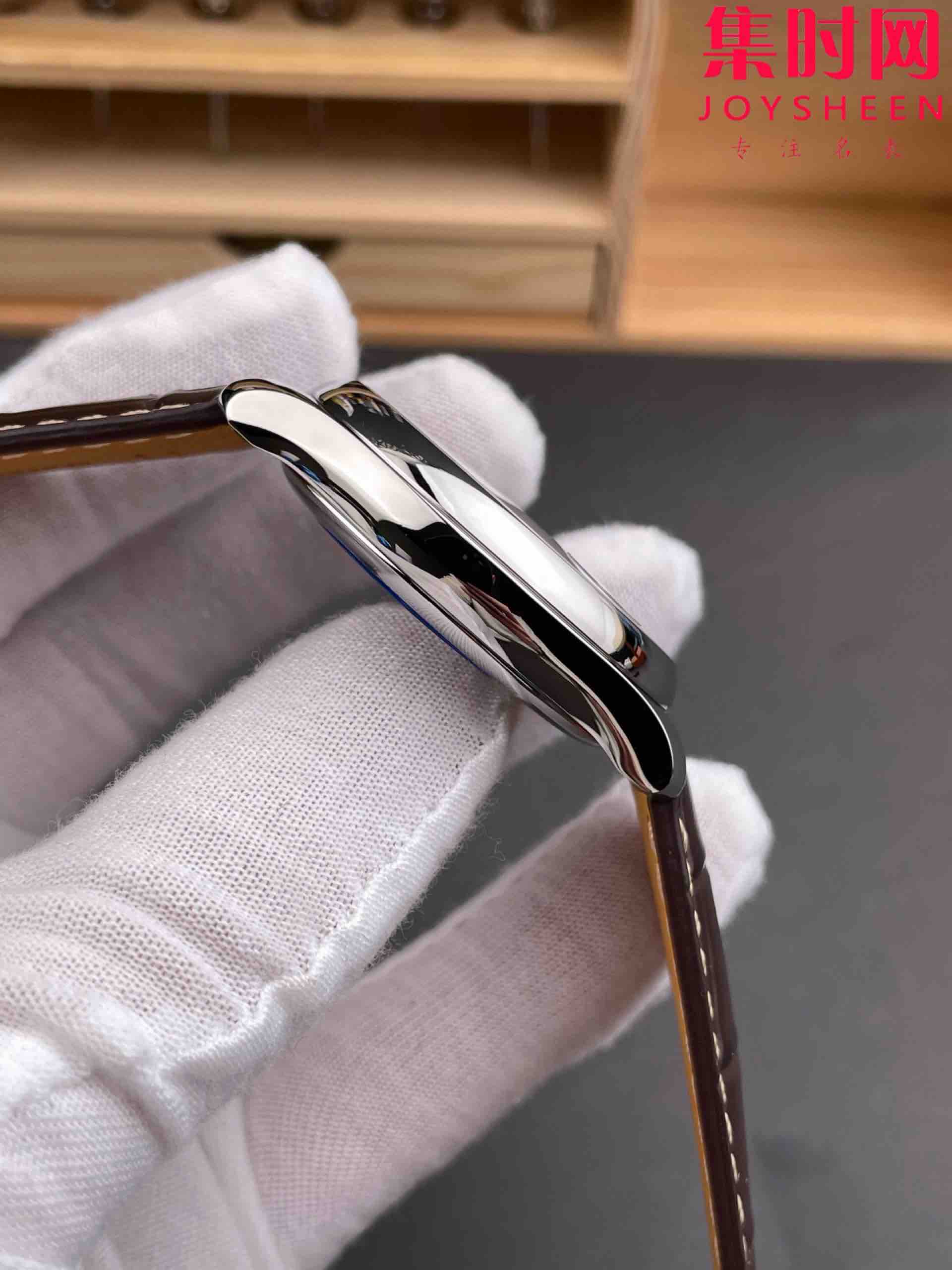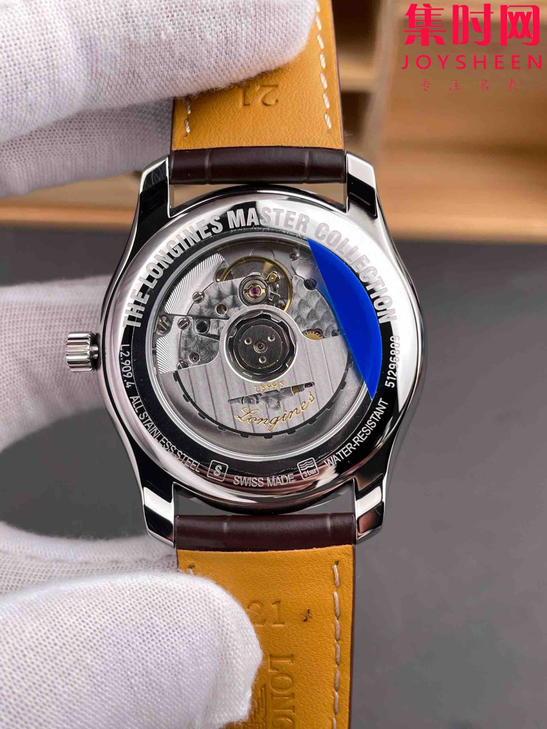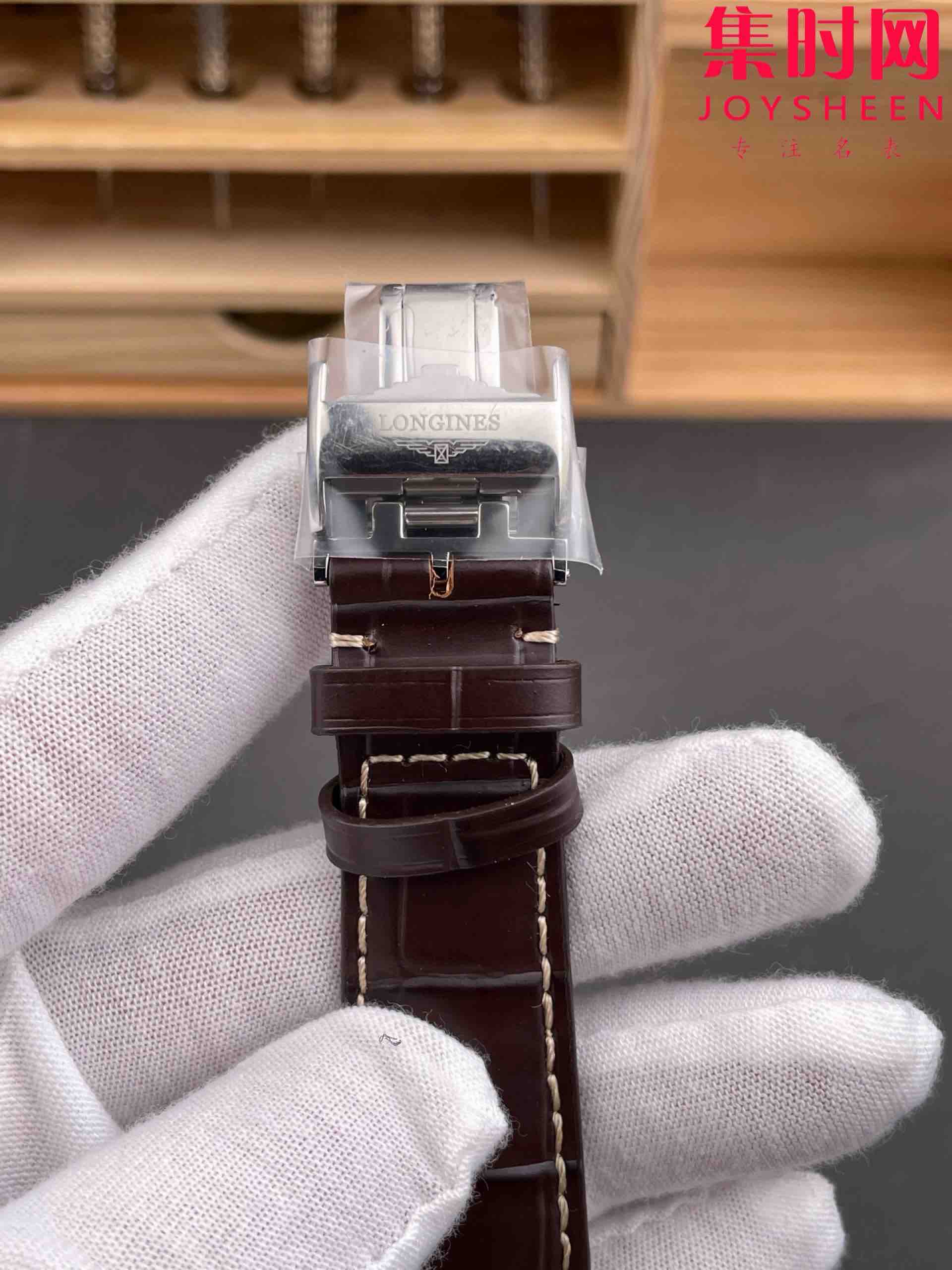 表带:意大利小牛皮表带搭配浪琴经典蝴蝶式精钢表扣。