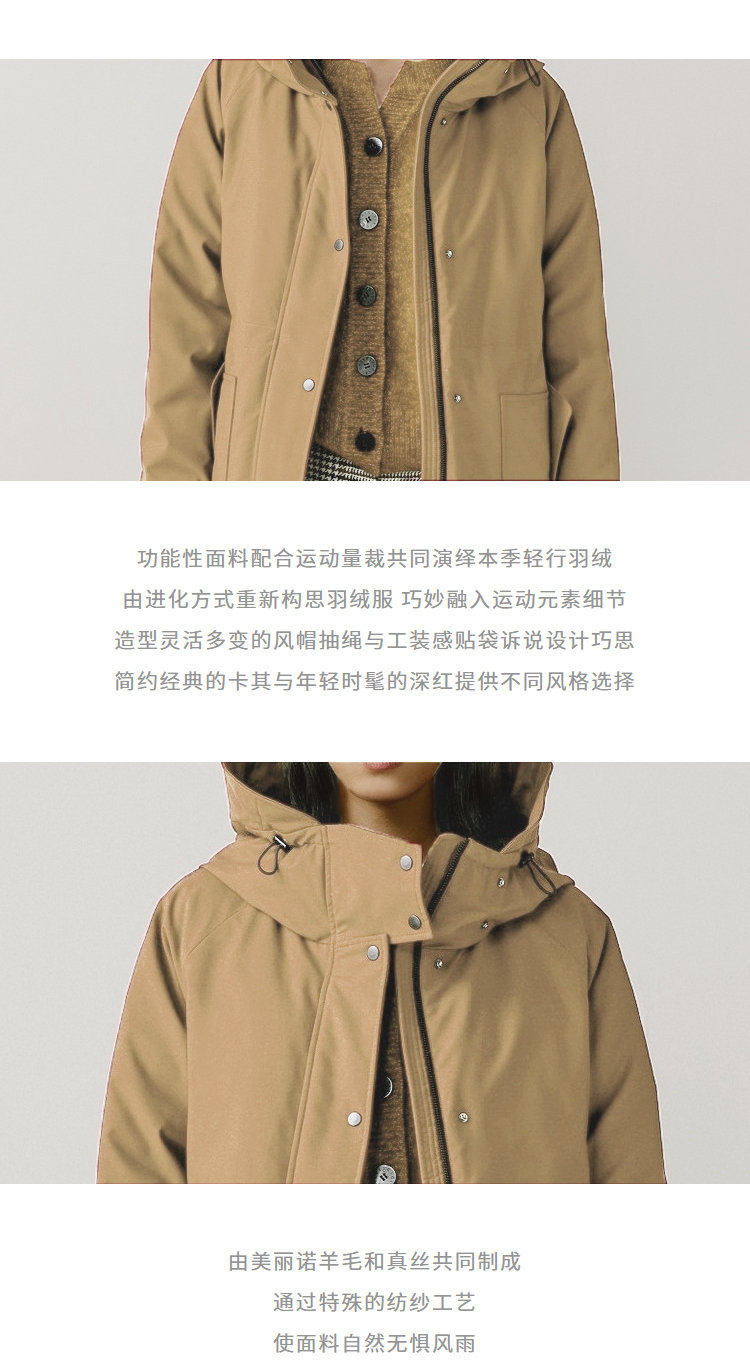 功能性面料配合运动量裁 共同演绎本季轻行羽绒