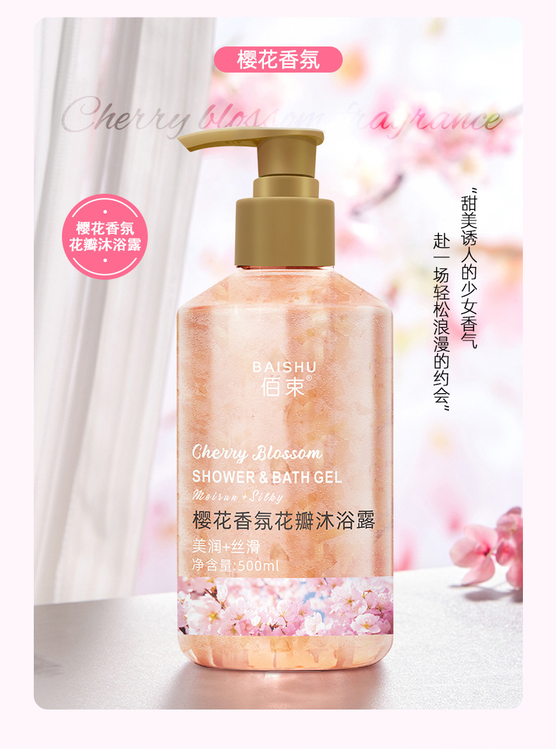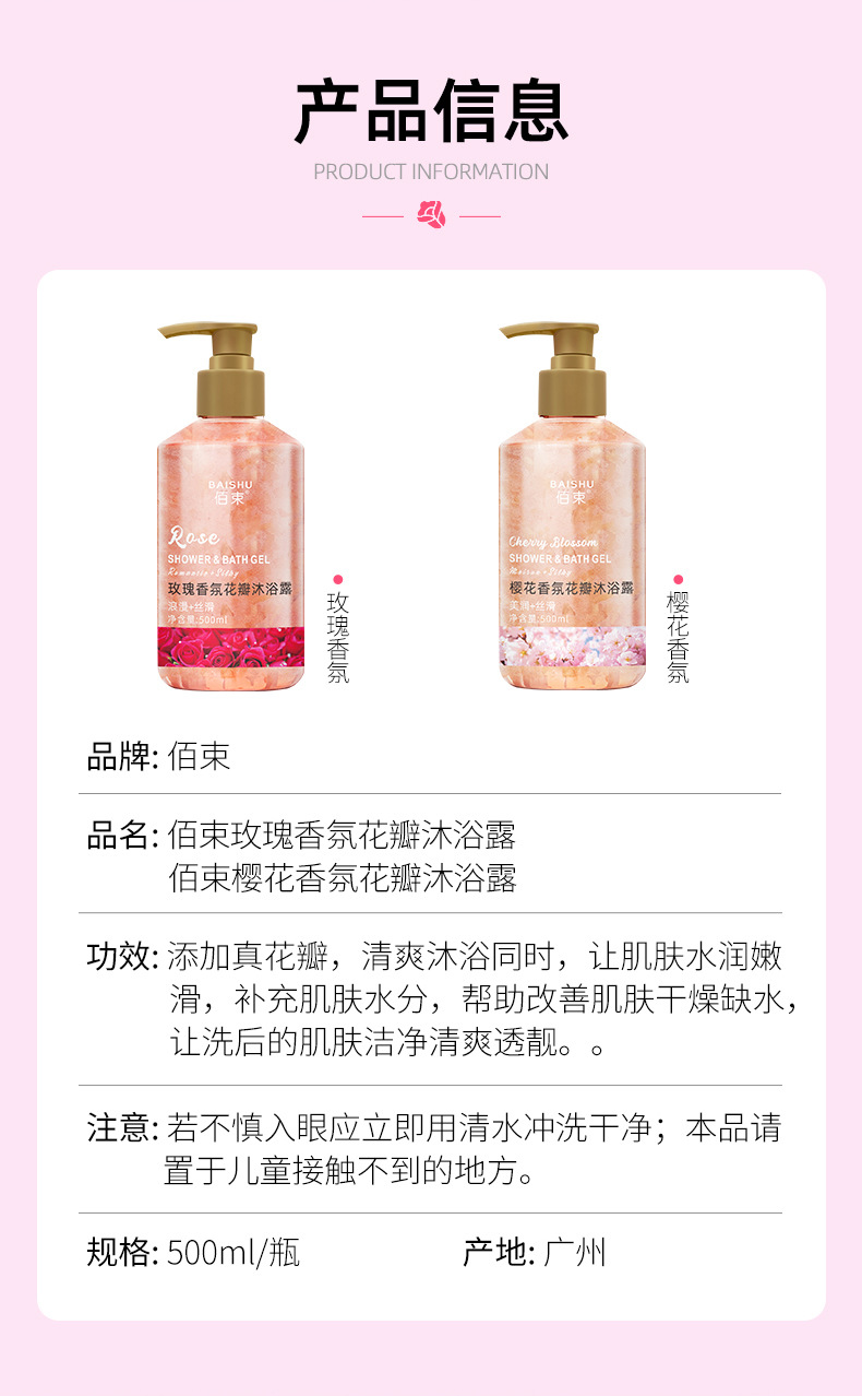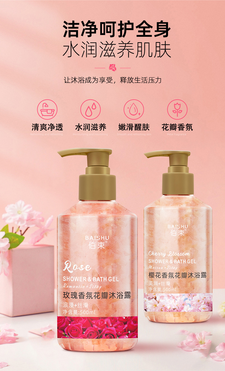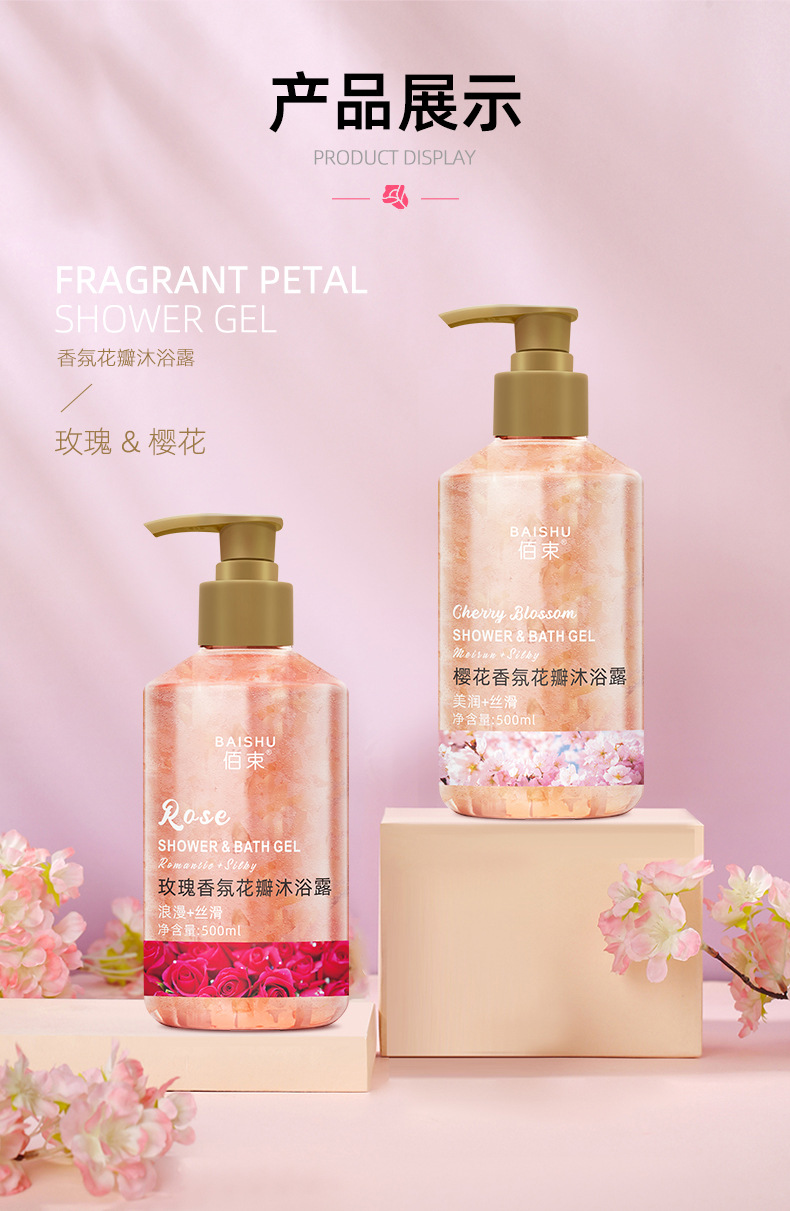 「买1送1!花瓣香氛」佰束花瓣樱花沐浴露 保湿舒缓肌肤留香玫瑰花瓣控油清洁浴