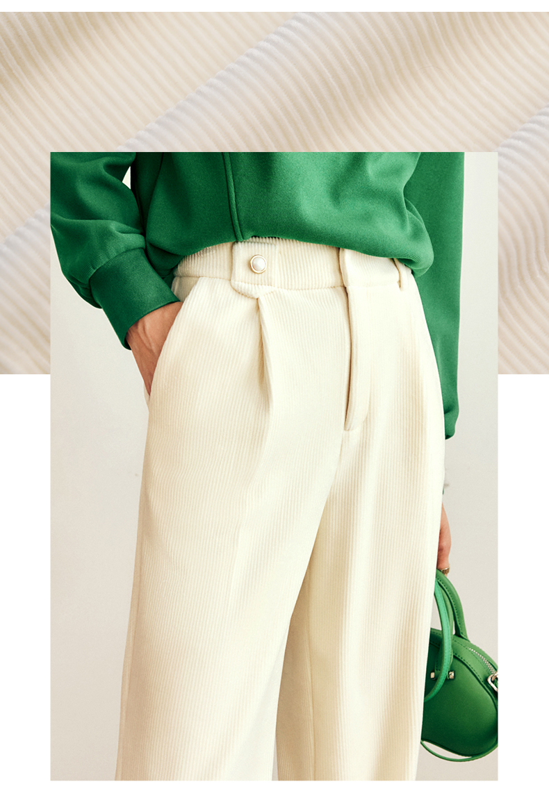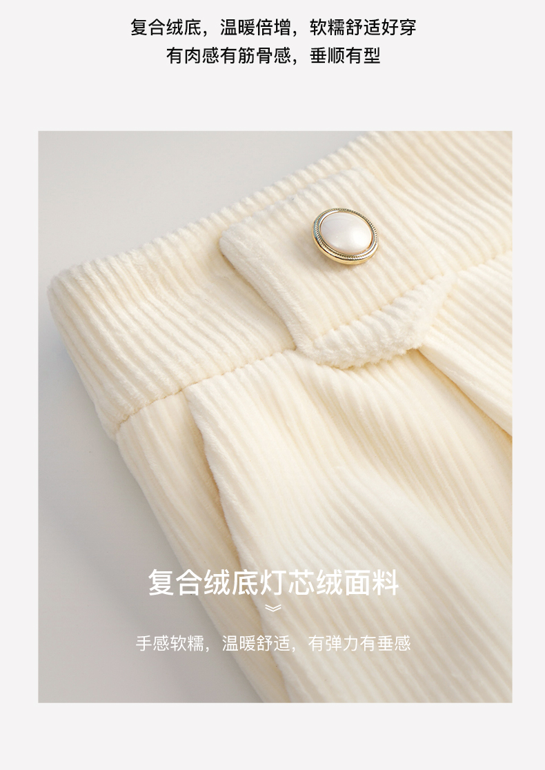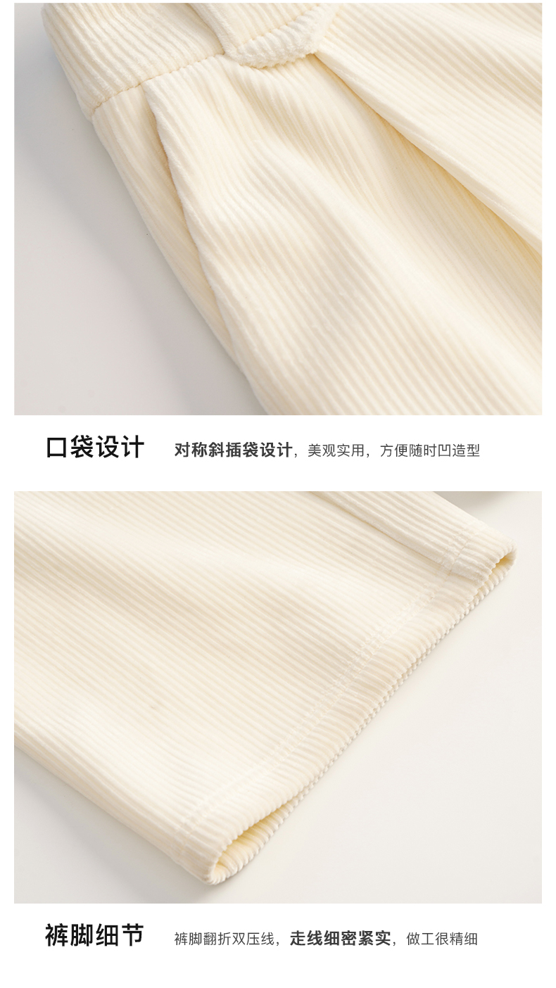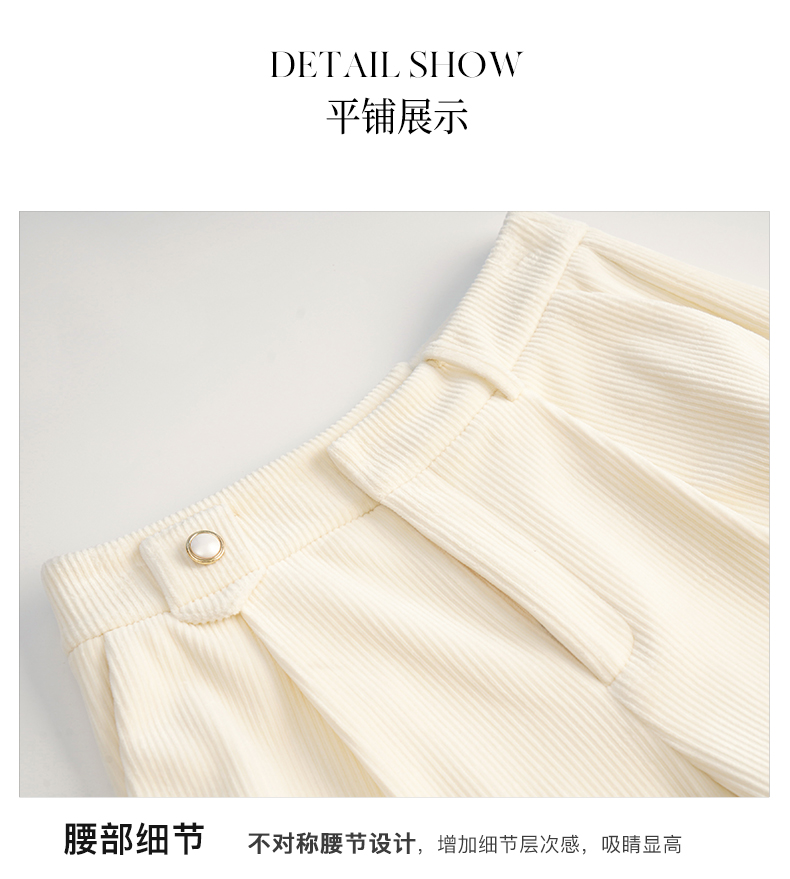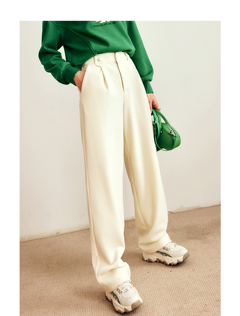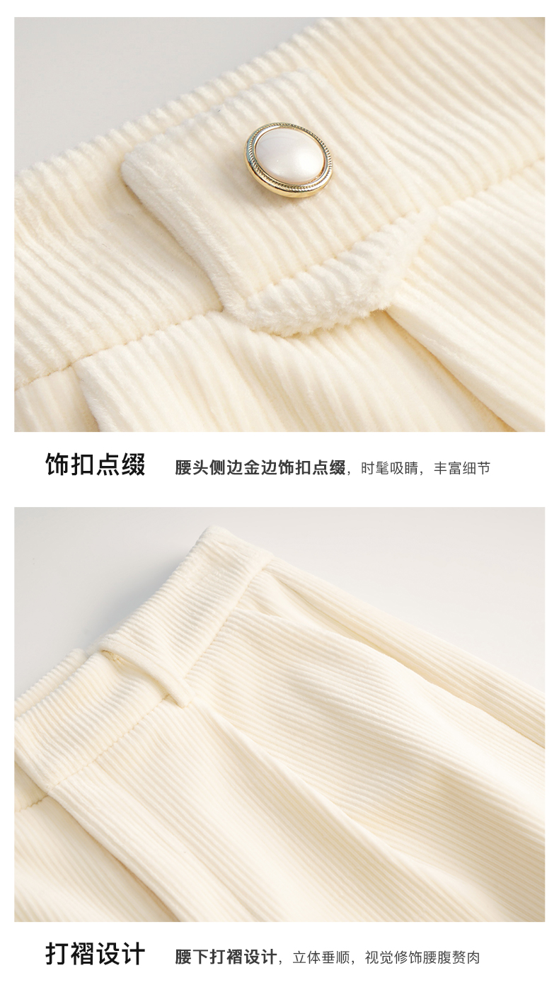 OLrain欧芮儿法式灯芯绒休闲裤女秋冬2022新款高腰奶fufu拖地长裤