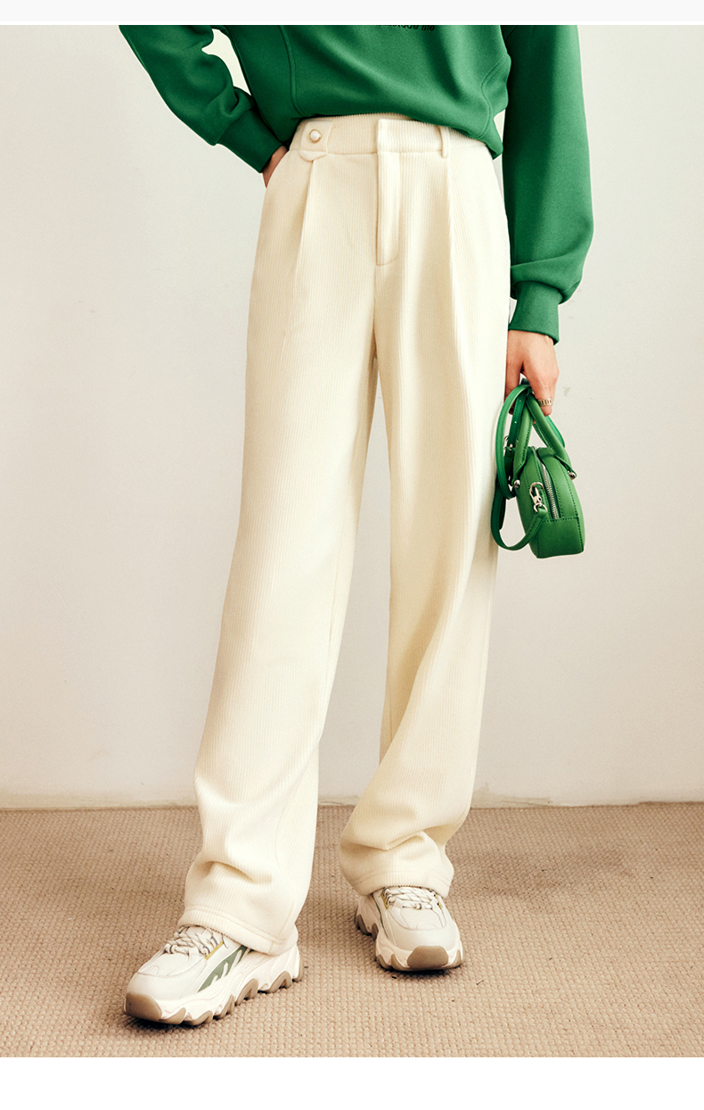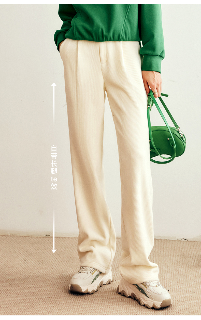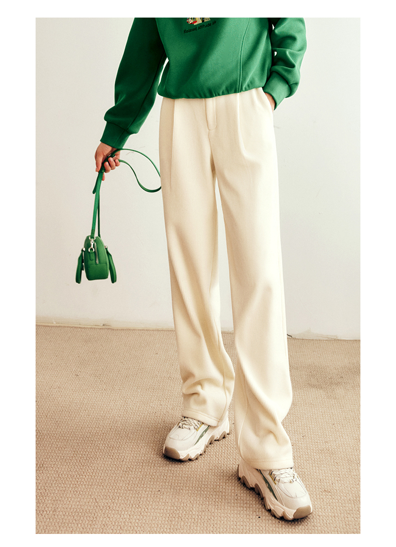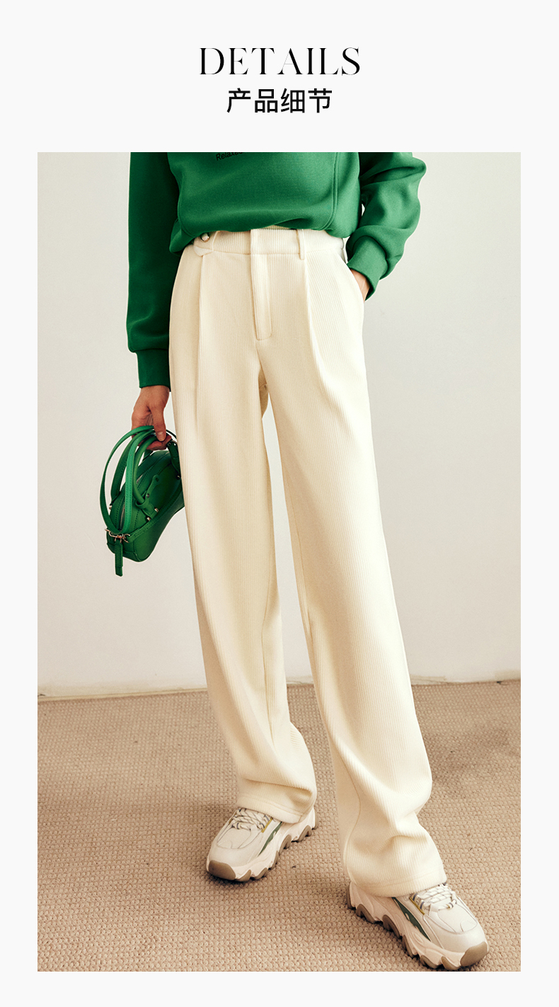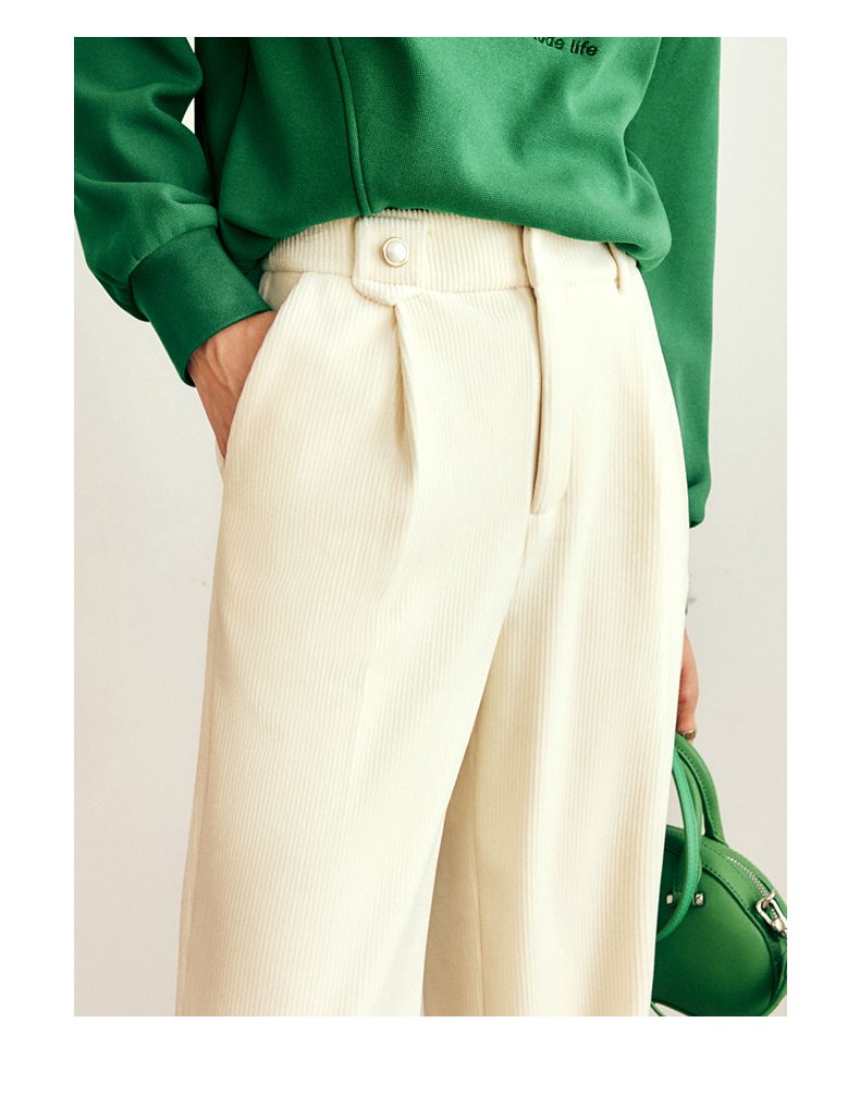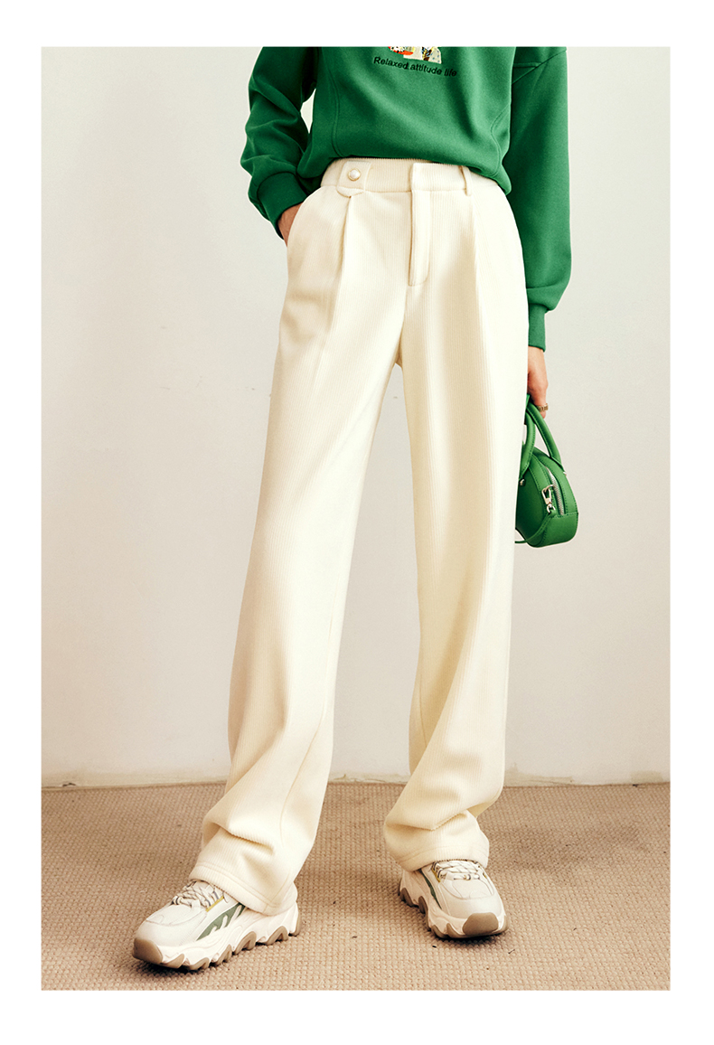 OLrain欧芮儿法式灯芯绒休闲裤女秋冬2022新款高腰奶fufu拖地长裤