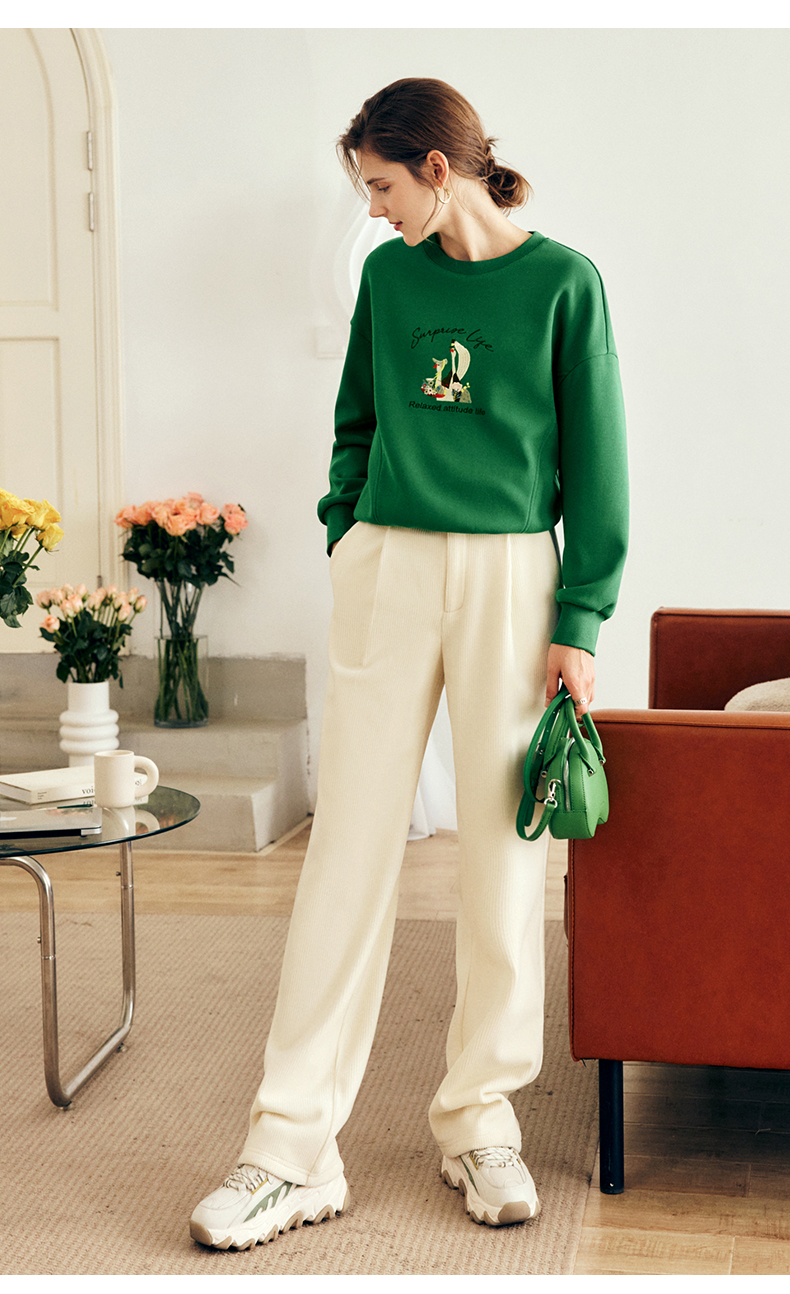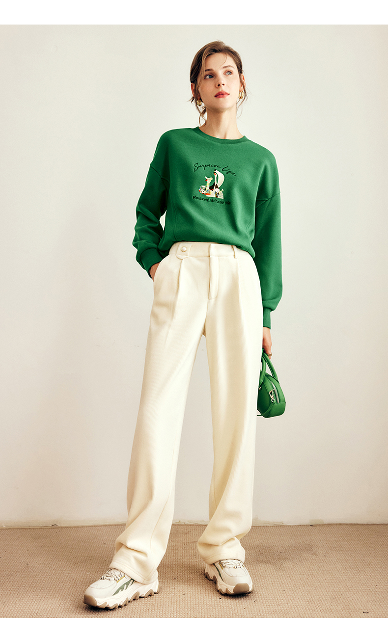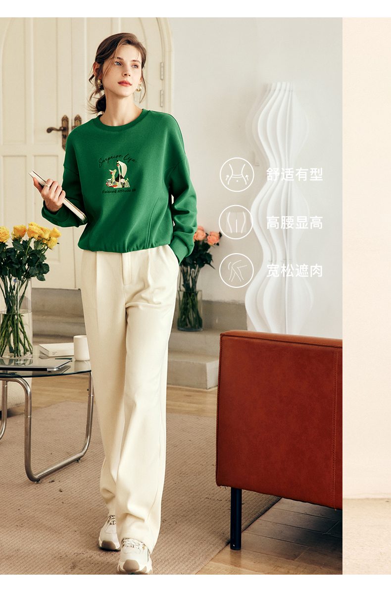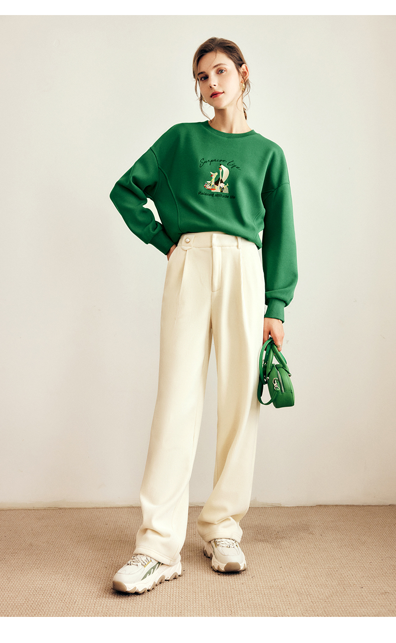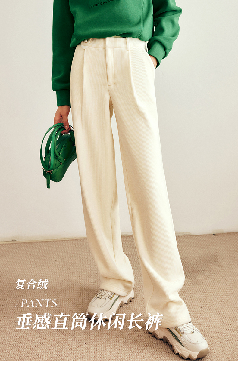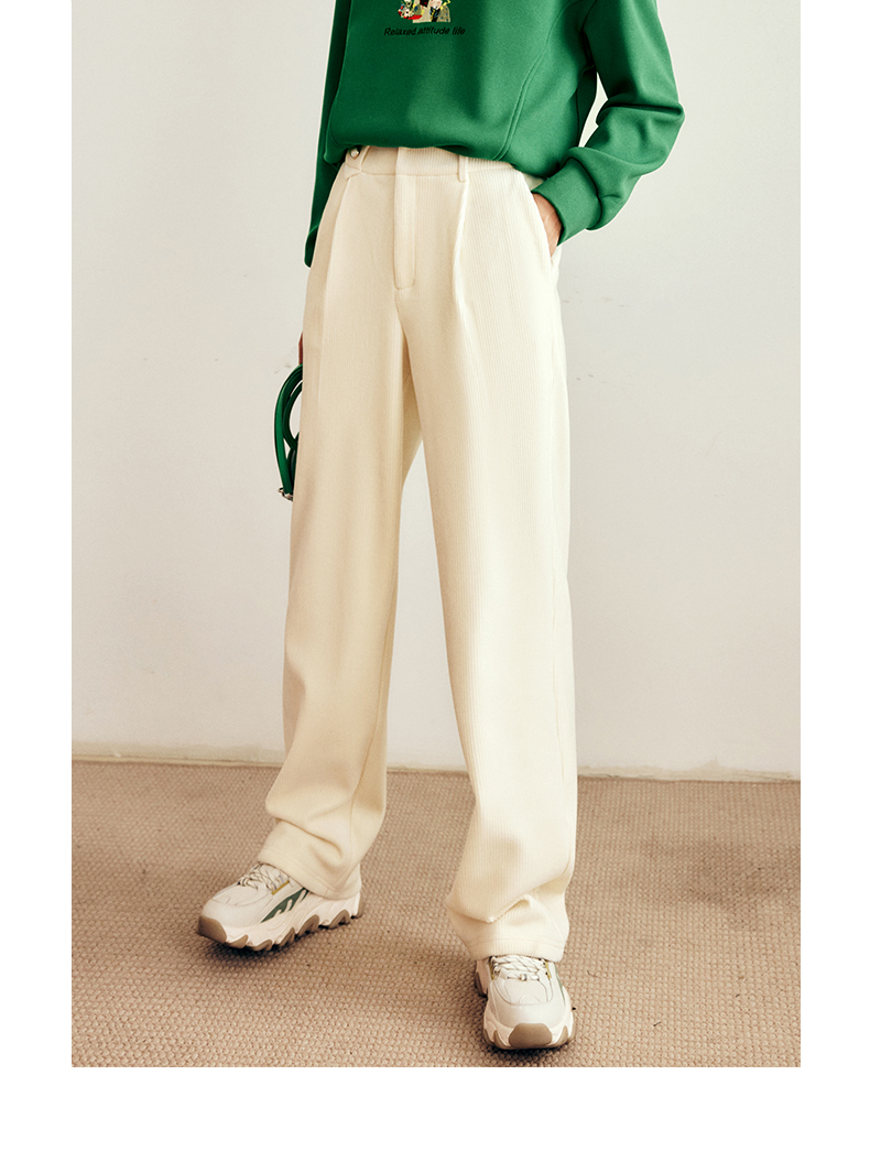 OLrain欧芮儿法式灯芯绒休闲裤女秋冬2022新款高腰奶fufu拖地长裤