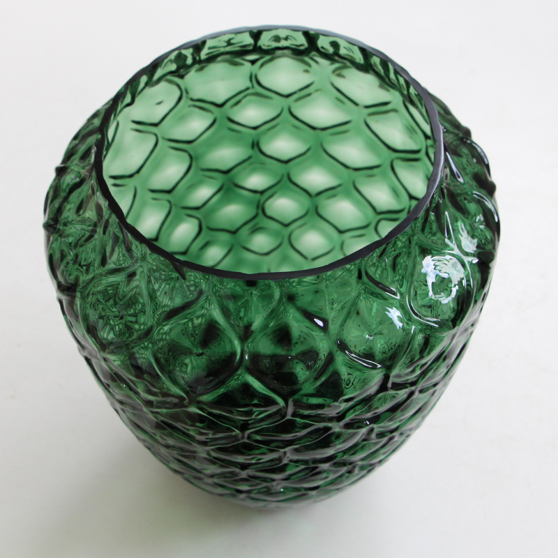 现代简约大肚子吊钟玻璃花瓶摆件墨绿高级感家居装饰品水培花器