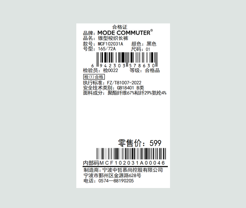 MODE COMMUTER | MC春季挺括斜纹锥形梭织长裤MCF102031A