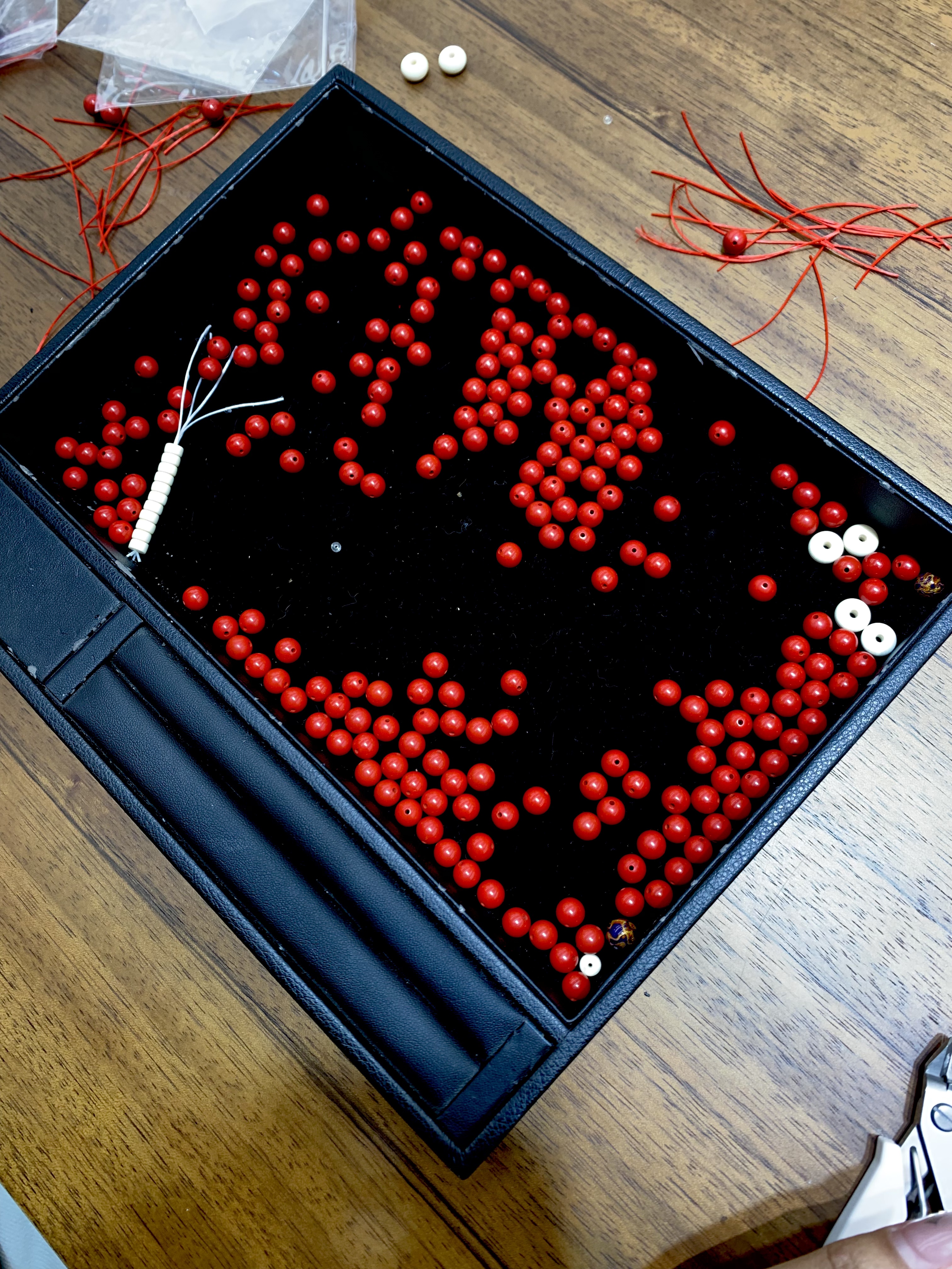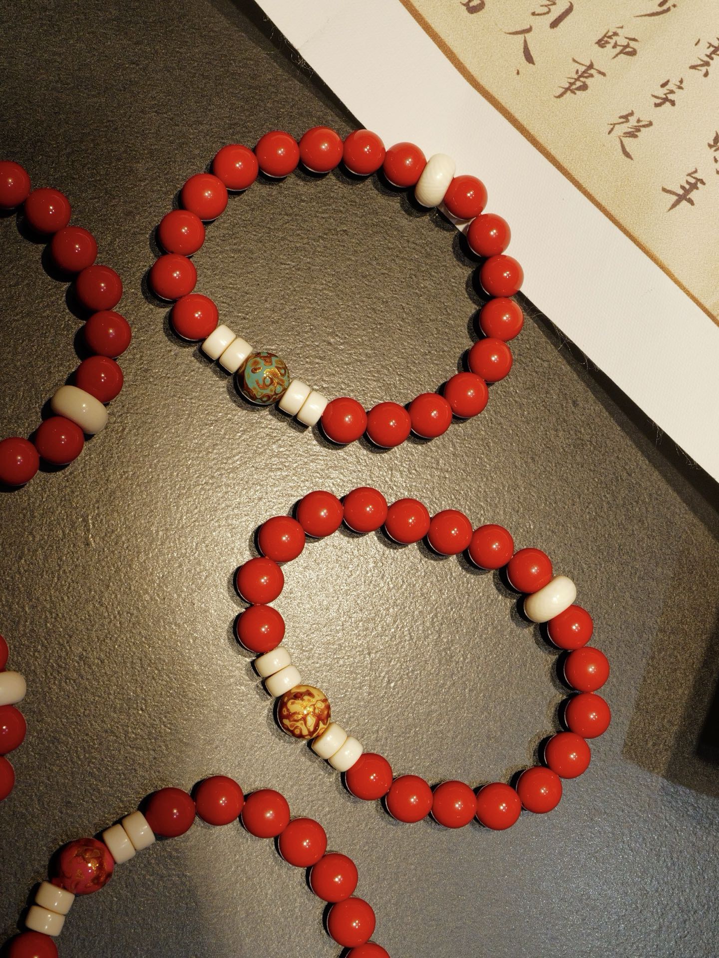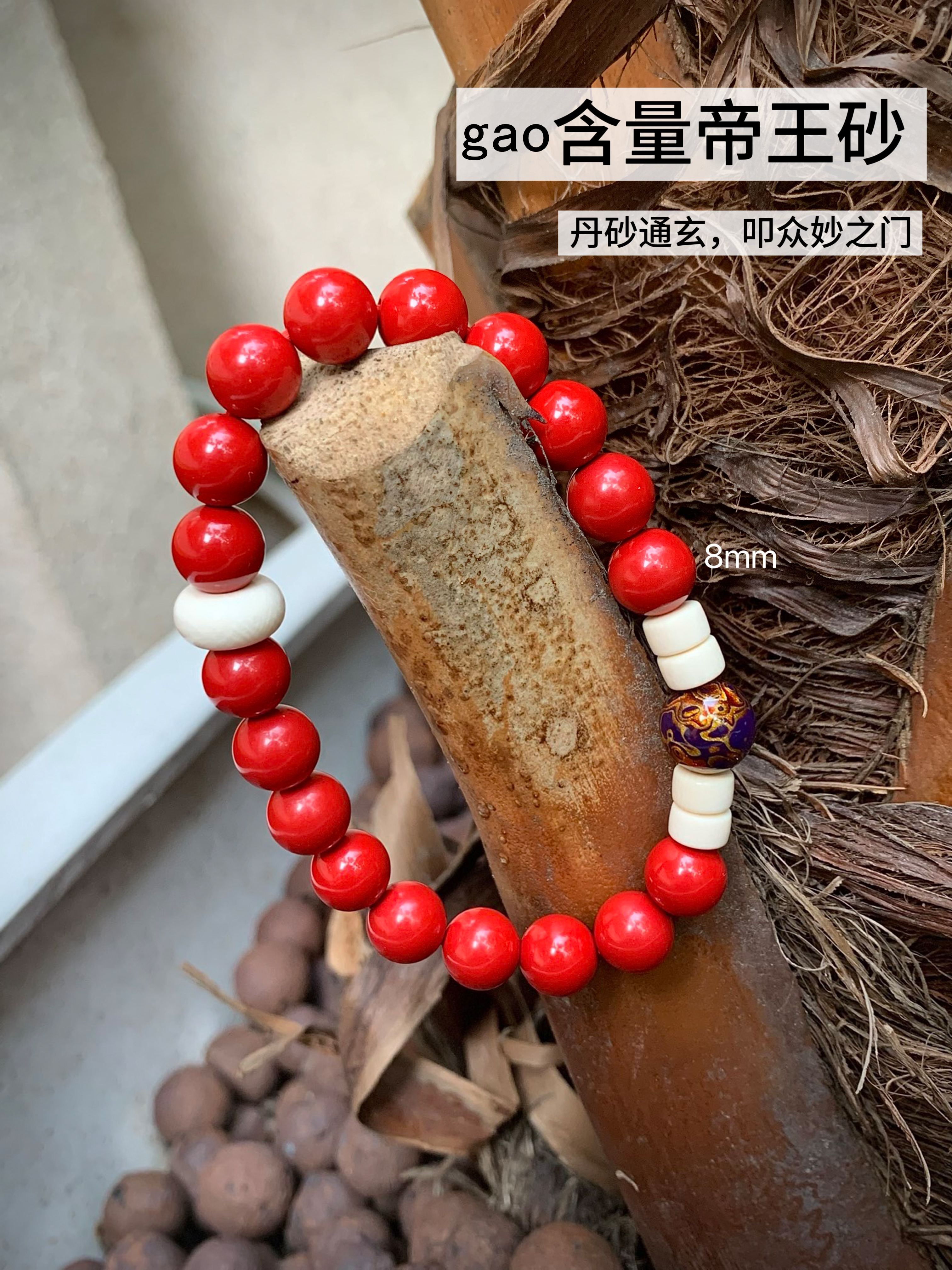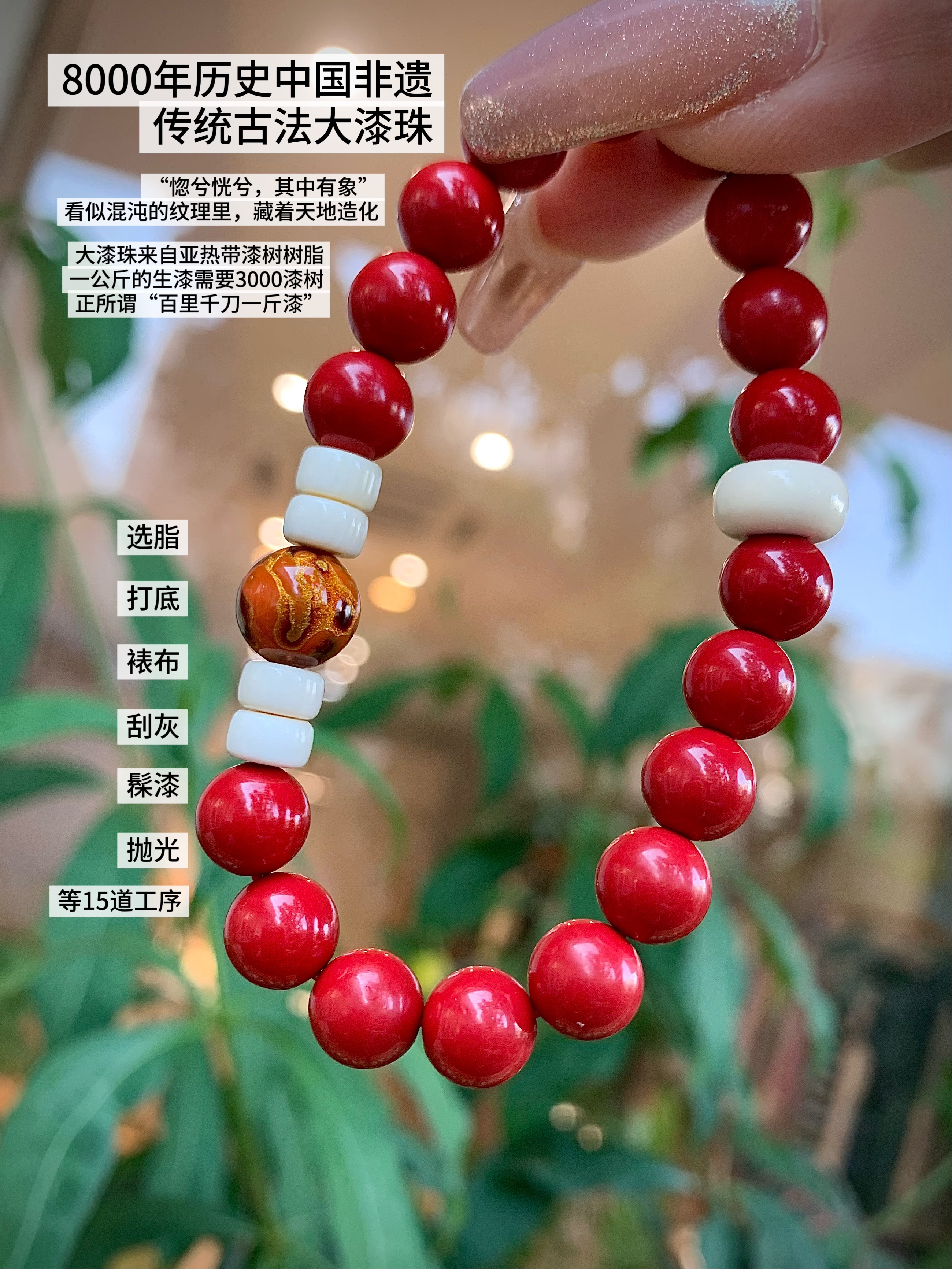 直径也比去年大了2mm,今年是8mm。漂亮纹路的非遗大漆珠,看似hun沌实则藏着天地造化,在中元节中更似“tong神之眼”,“大漆显象,映照天地”,而朱砂能净化zhuo气,这一年来有朱砂的每一天都是安心的,很友好地保护了我们的jing气,“丹砂者,太阳之精也”,对应离火之象,蕴含先天阳气!