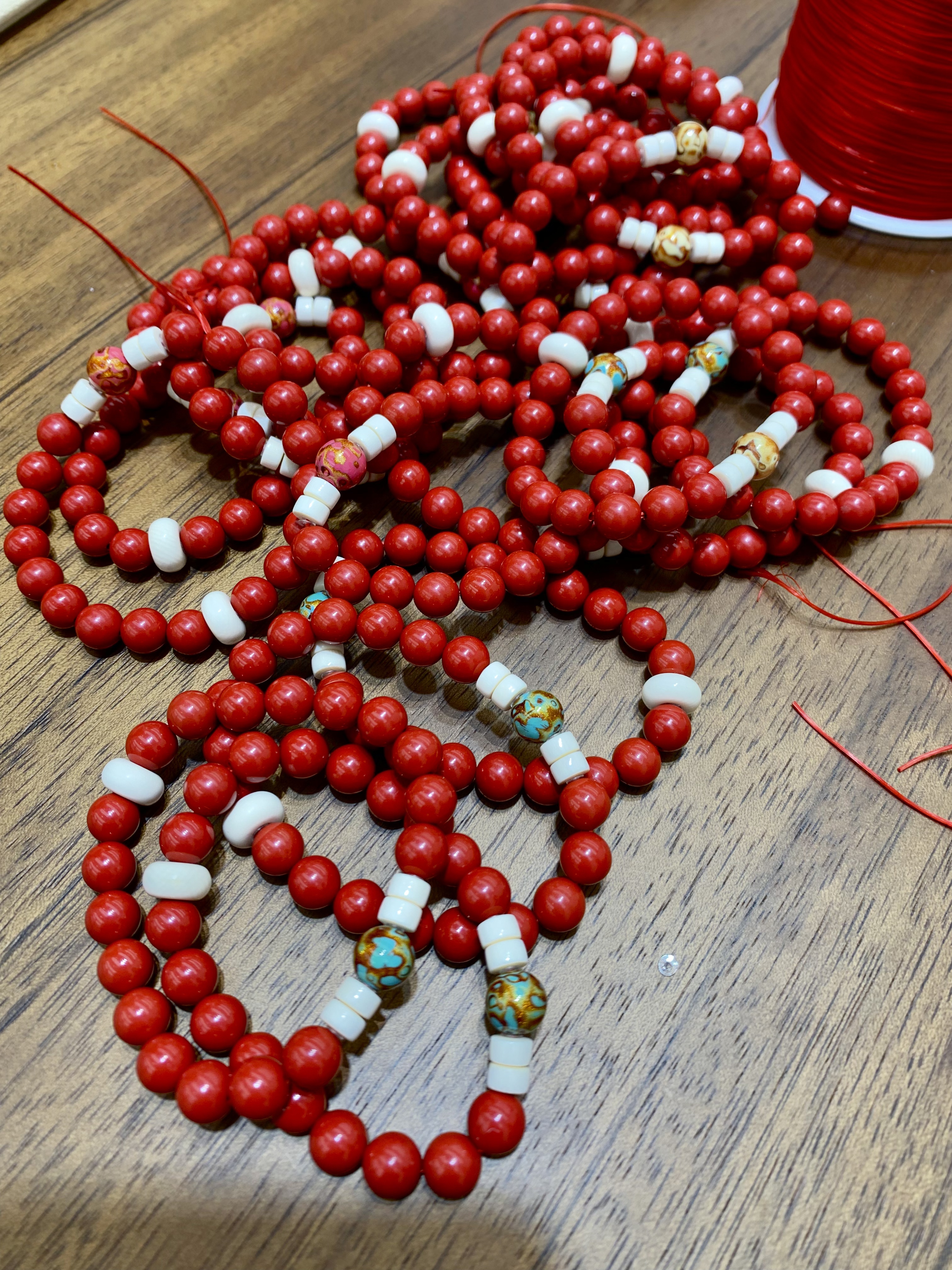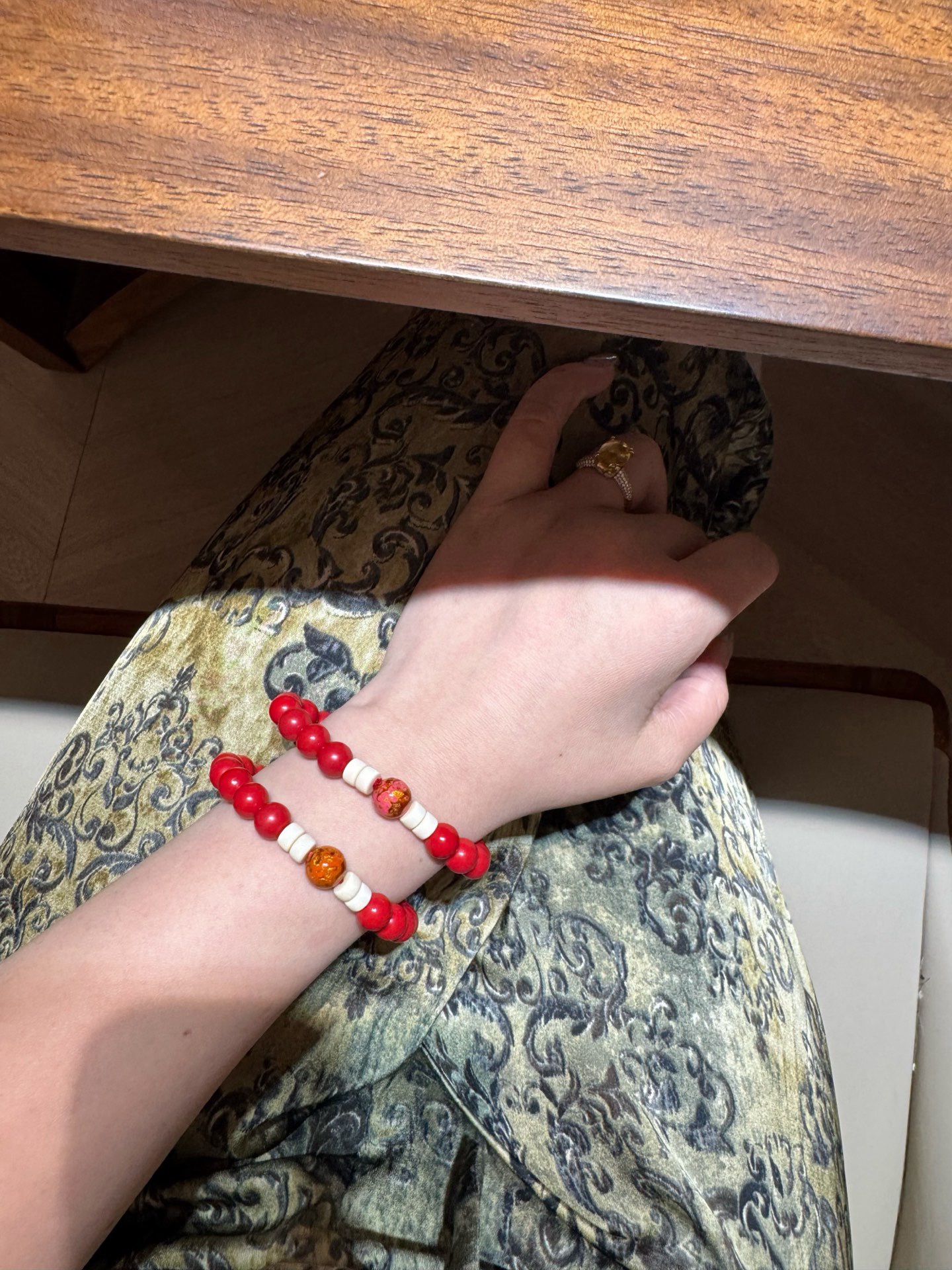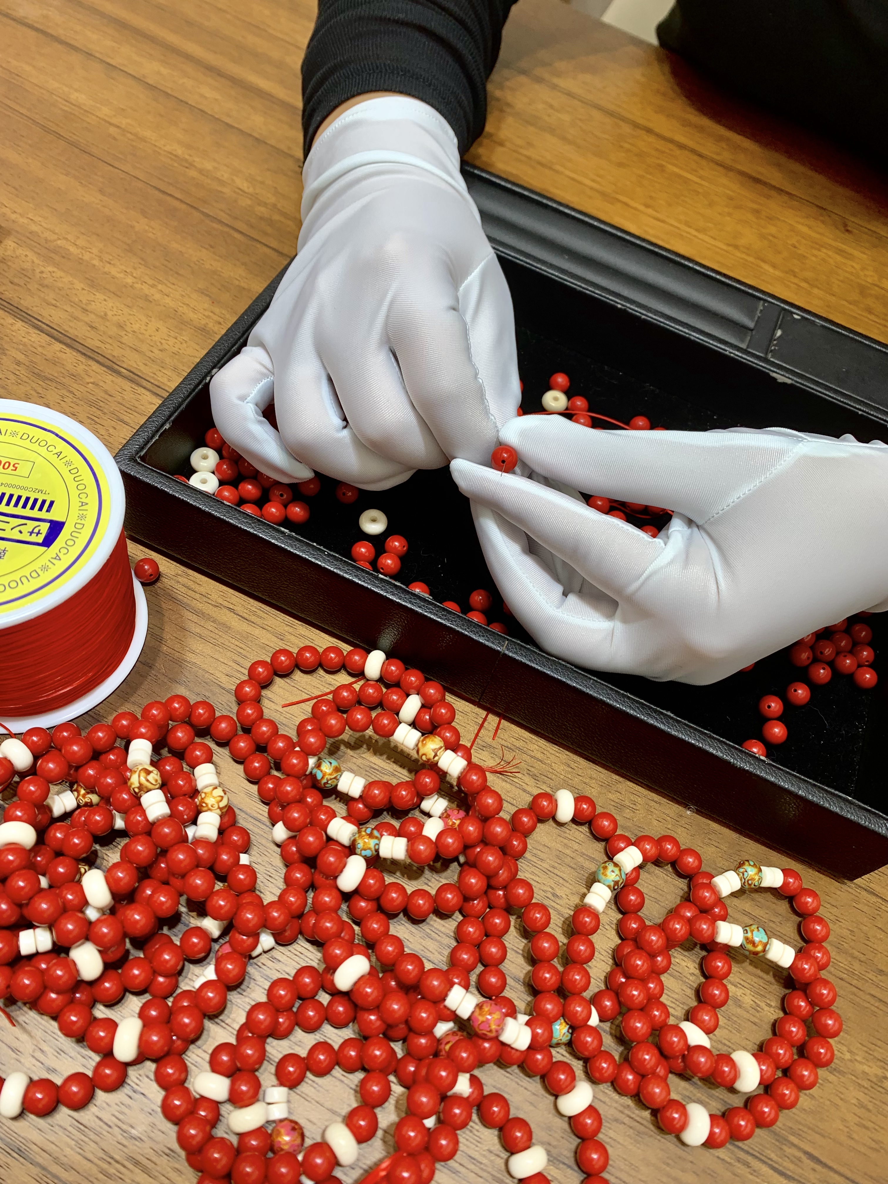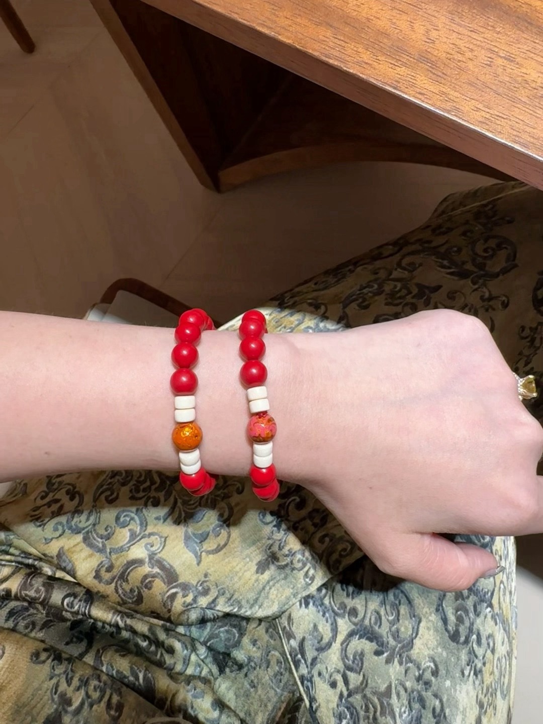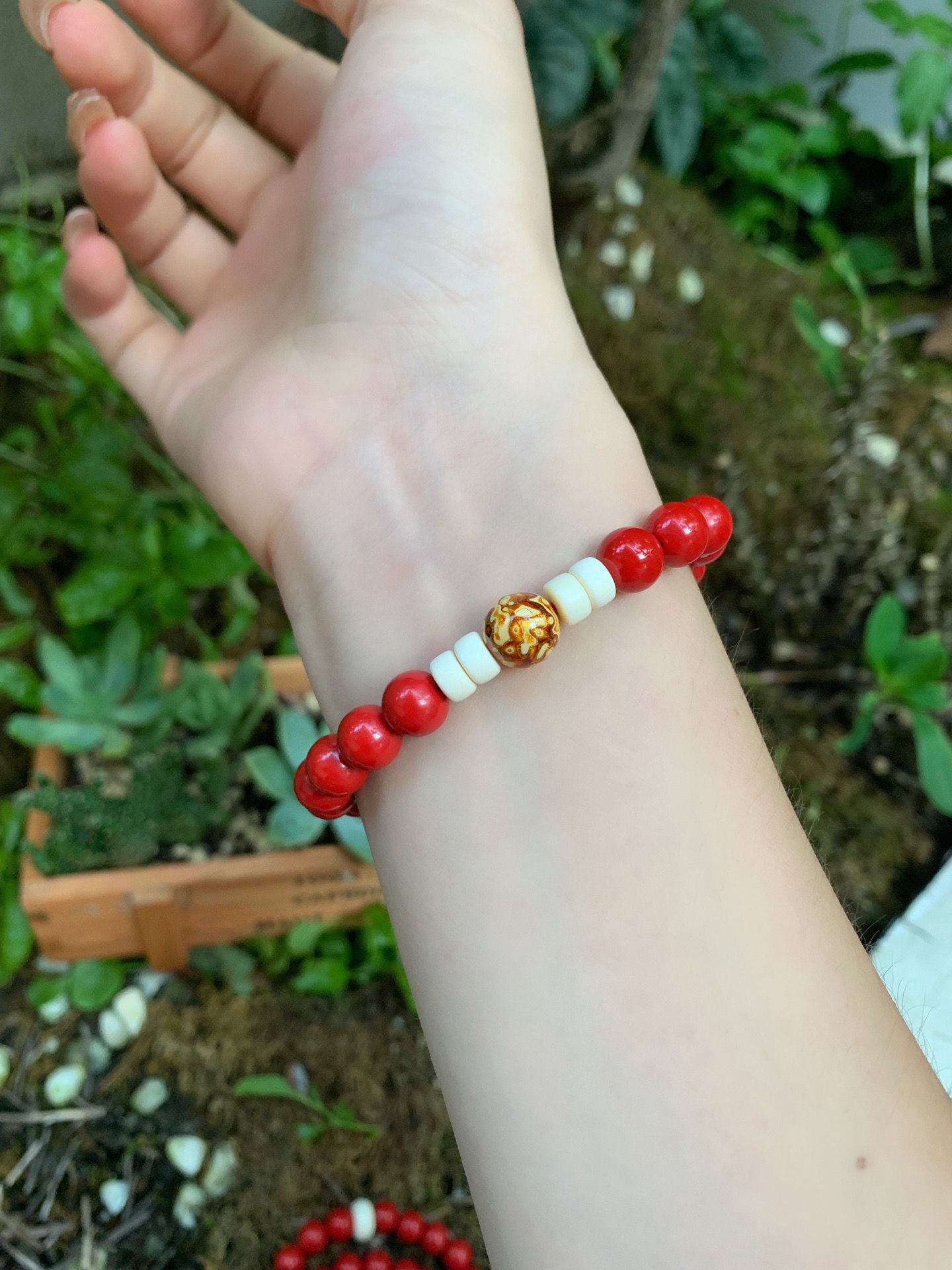 去年的朱砂,已经帮我们庇护很久了,可以用红信封装起来处理掉,今年的朱砂,更为gao级和简洁,因年龄又大一岁,师父科普朱砂仅需佩戴一年左右就需要更换,因此今年不加金银配件!也不会有银碰朱砂发黑现象。