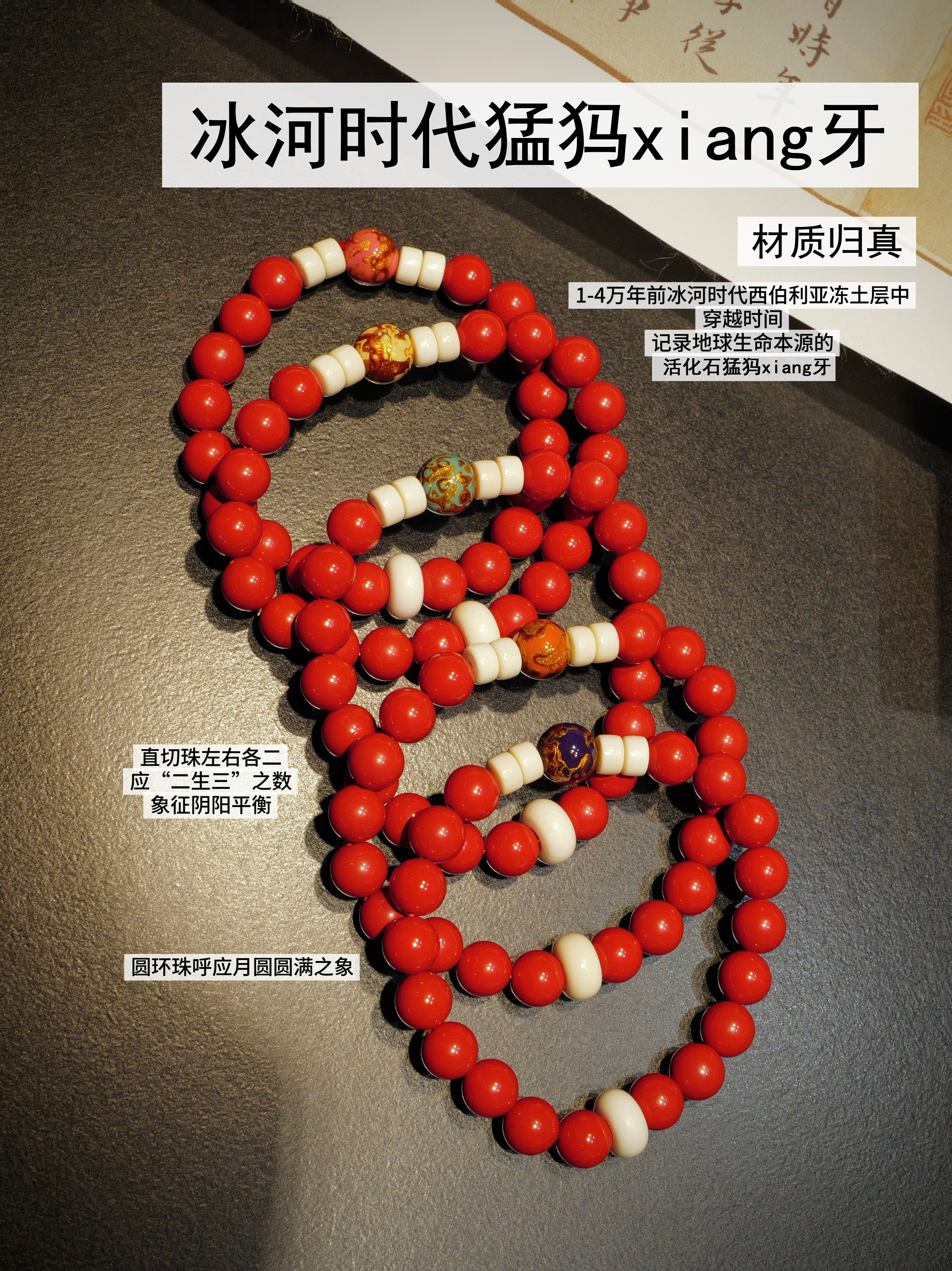 猛犸xiang牙来自冰河世纪的冻土层,这是让我们和过去对话,“修行如磨xiang牙,去伪求真,致虚极,守静笃”,柔白的牙齿能中和一下朱砂的炽烈,不容易上火~