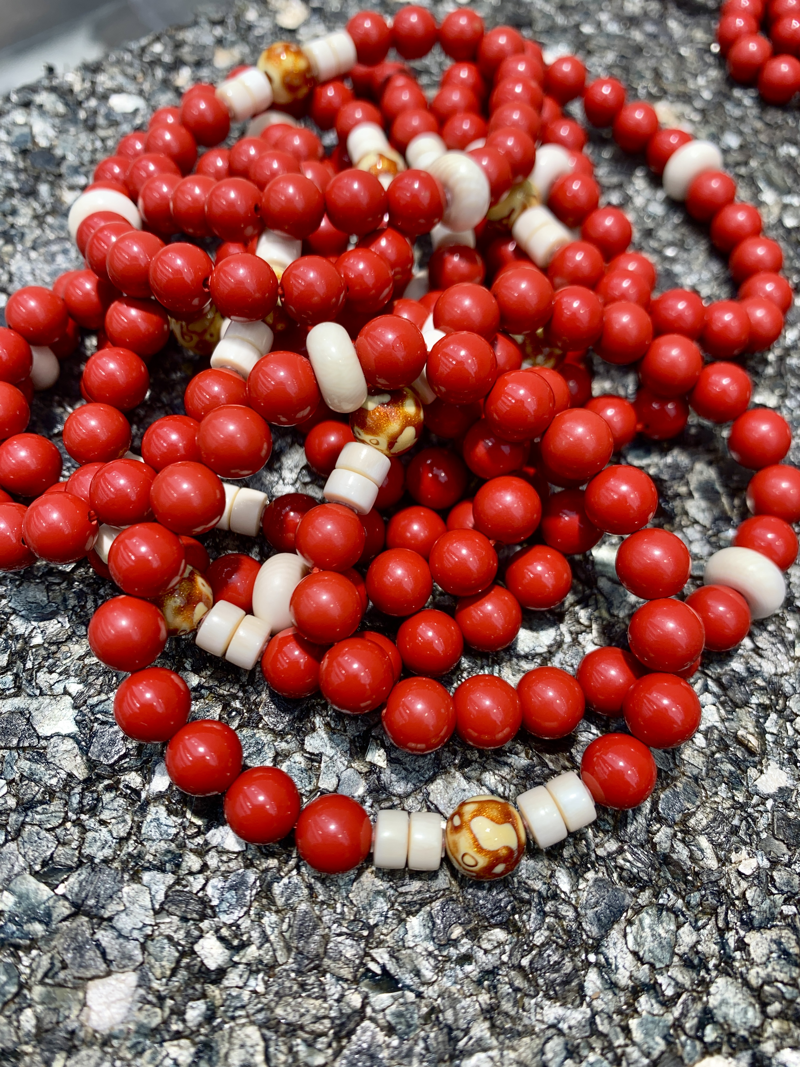 2025·帝王朱砂·猛犸xiang牙古法大漆珠手串朱砂手串