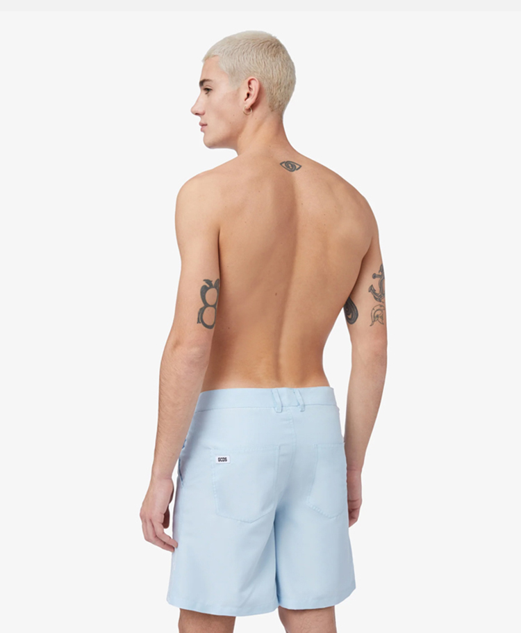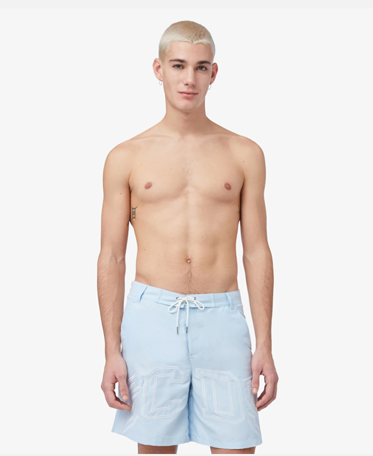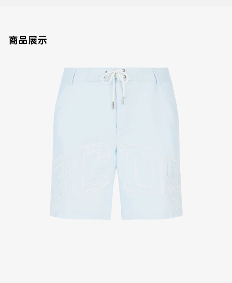 GCDS 男士字母徽标刺绣棉质休闲短裤 浅蓝色 A1CM3905TC570