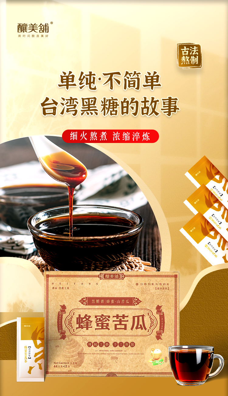 酿美铺黑糖膏蜂蜜苦瓜茶传统工序手工熬制无香精无色素44g/包*12