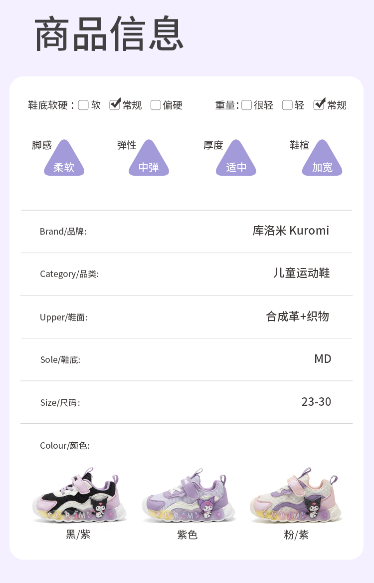 hellokitty童鞋春秋库洛米儿童运动鞋23-30码 KU5536926