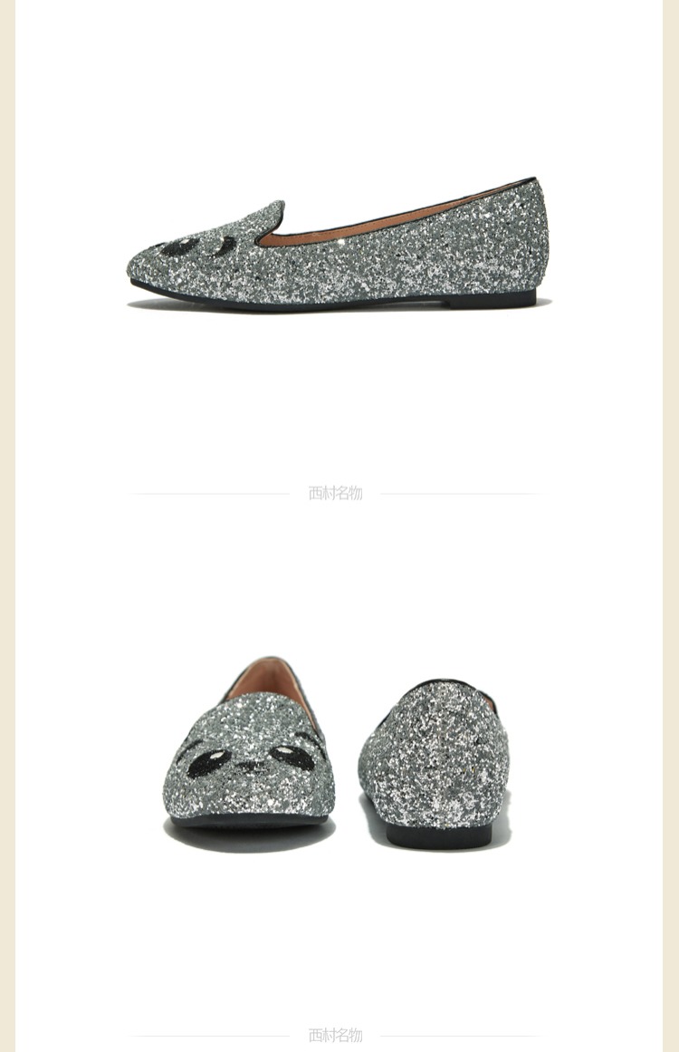 西村名物春季新款格利特亮面女单鞋可爱狗狗平底豆豆鞋X281E10543