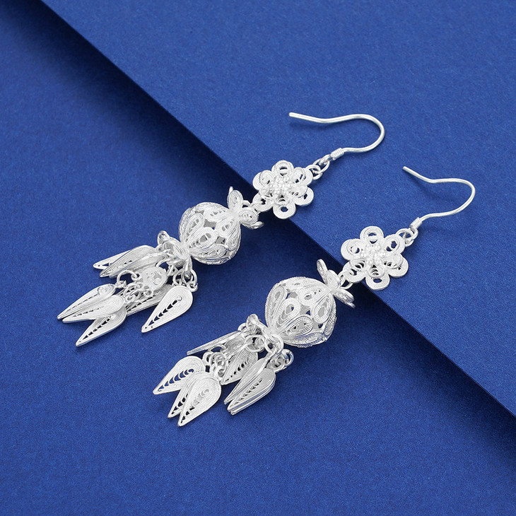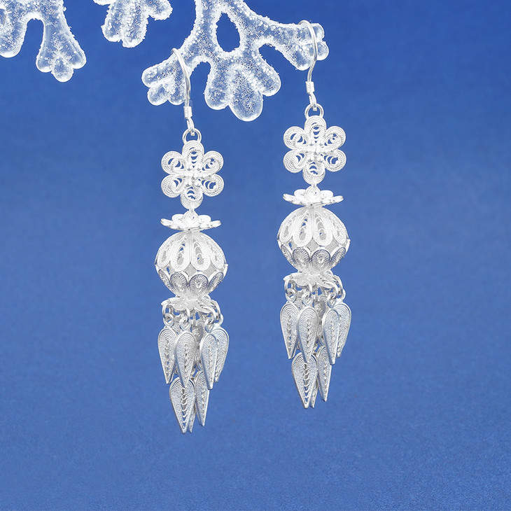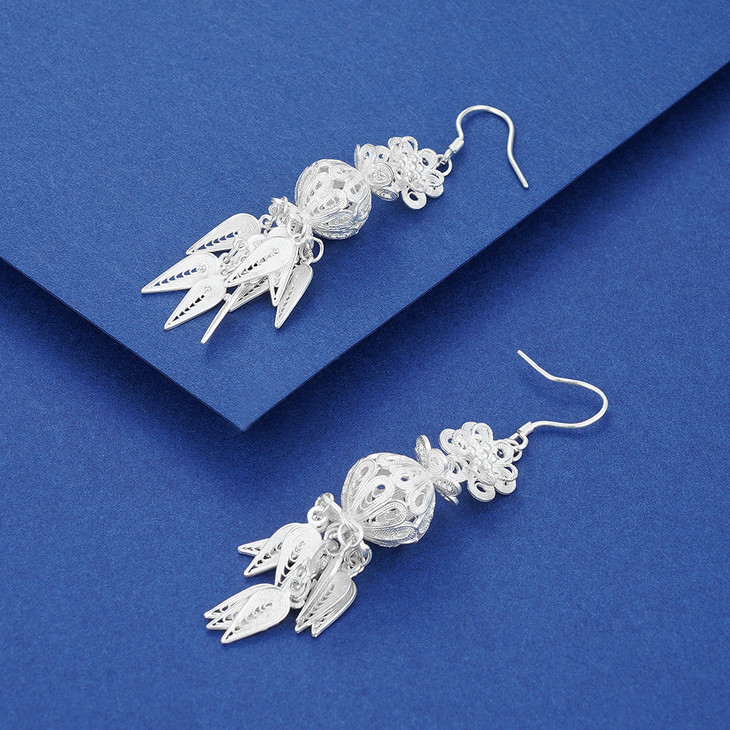 【寓意】:耳饰采花丝工艺编织打造,精工细作间透出玲珑呼吸感。当光影在耳畔流转,既显东方韵味,又具华贵气韵。
