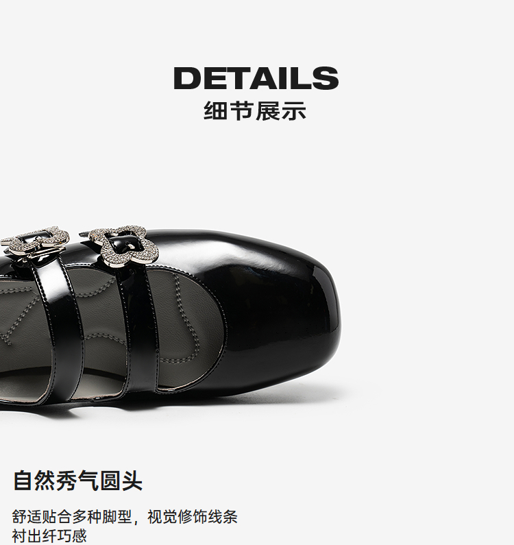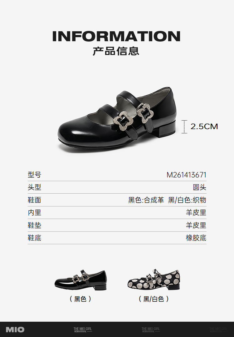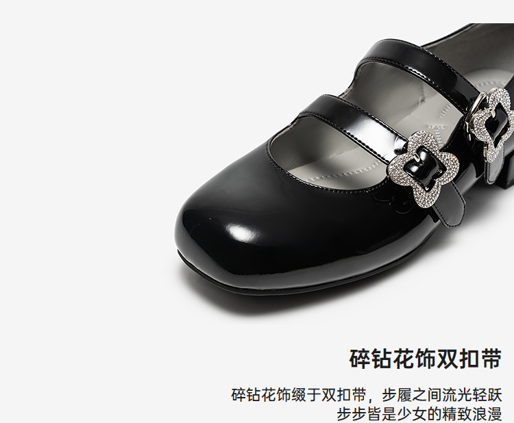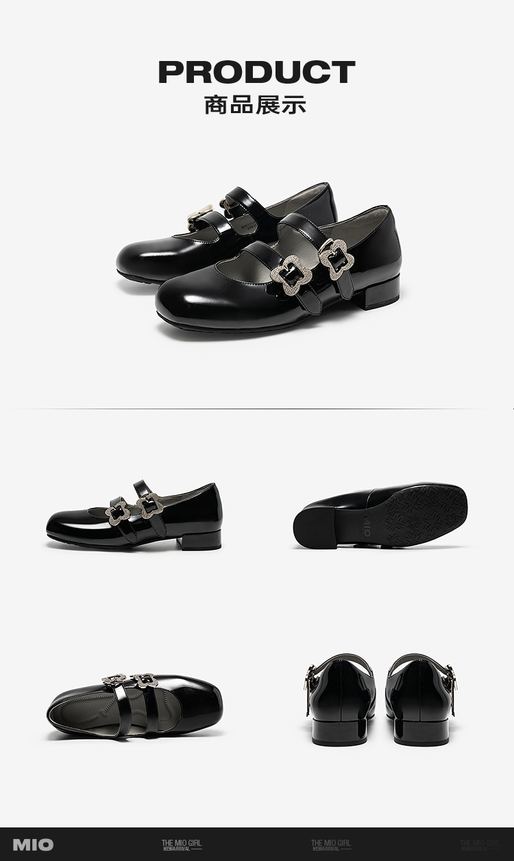 MIO米奥2026春季新款圆头粗跟甜美风多字式扣带花朵饰扣玛丽珍鞋M261413671