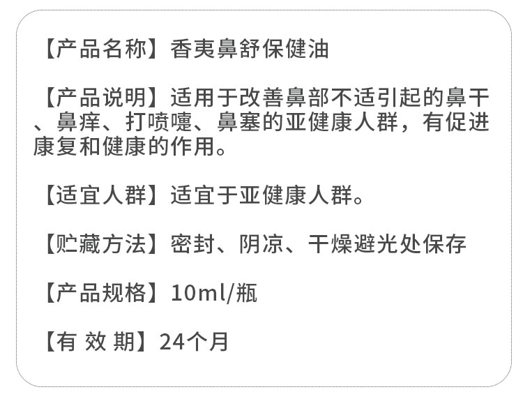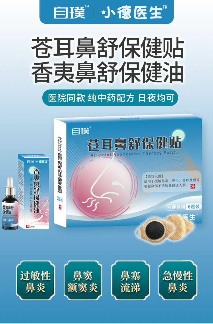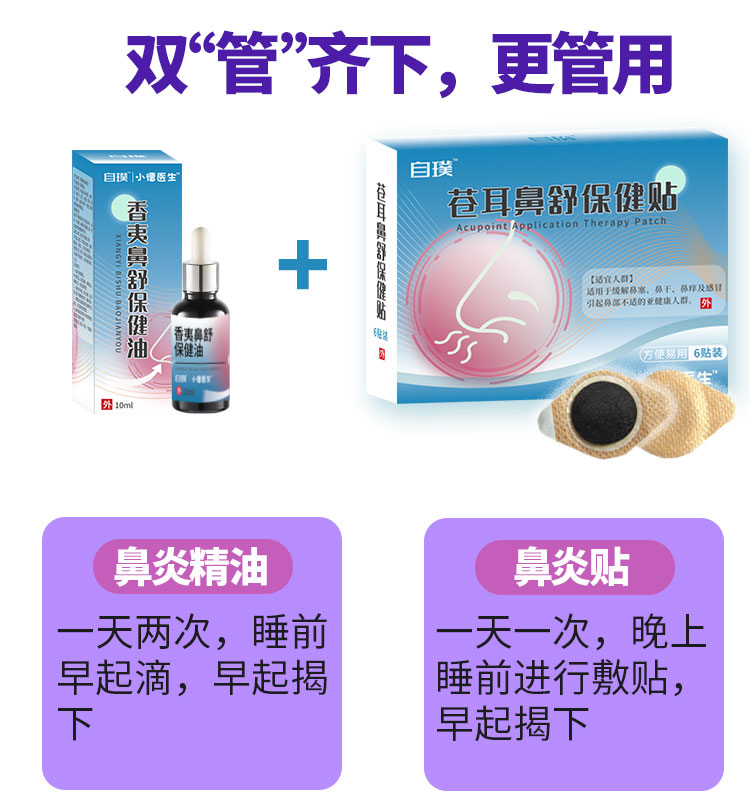 【店选】鼻炎保健组合套餐(苍耳鼻舒贴 6贴/盒;香夷鼻炎精油 10ml/瓶)