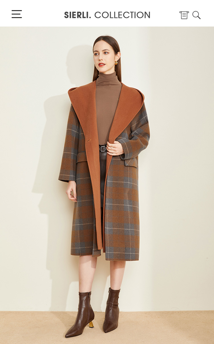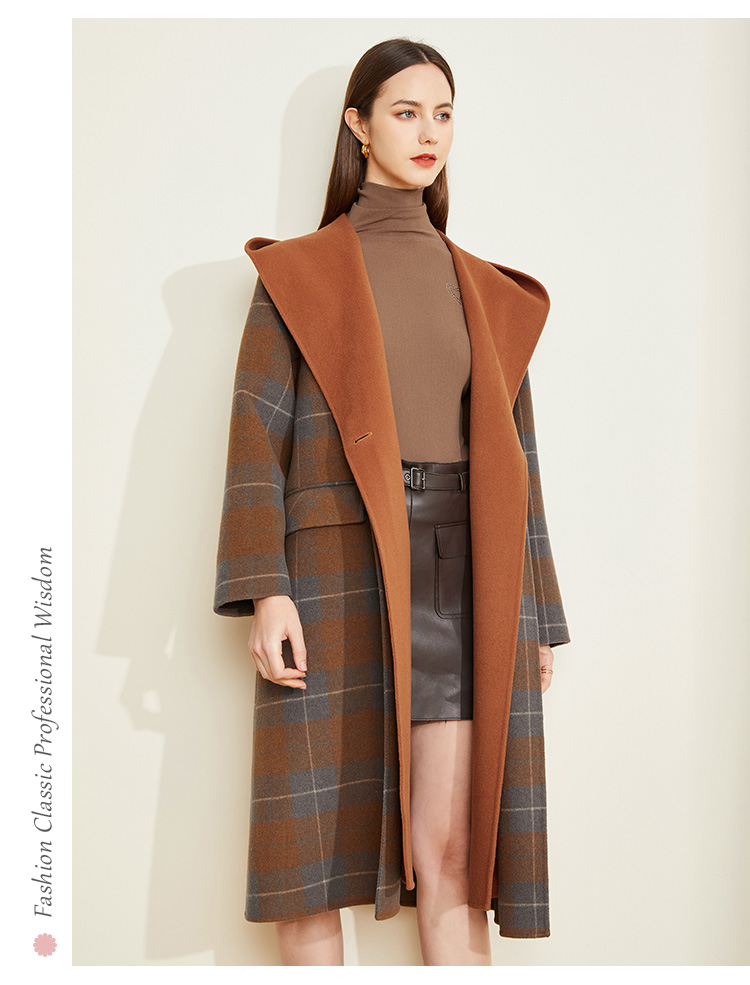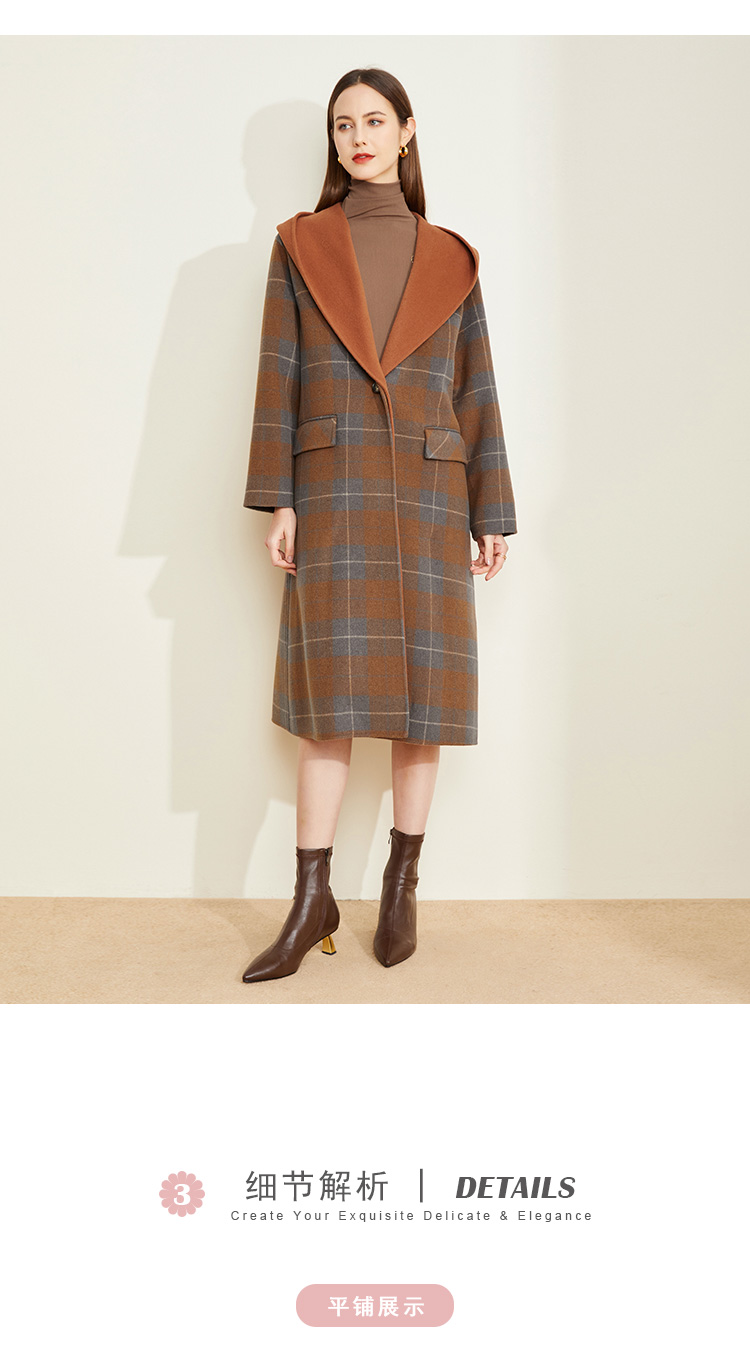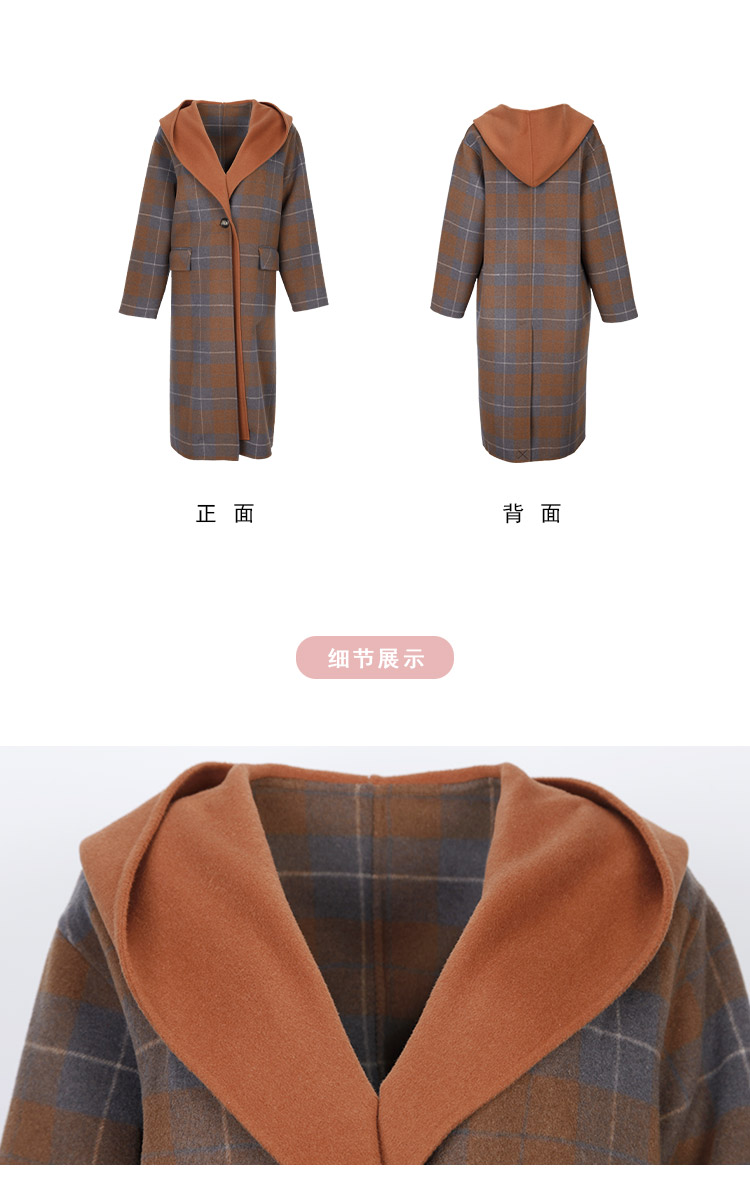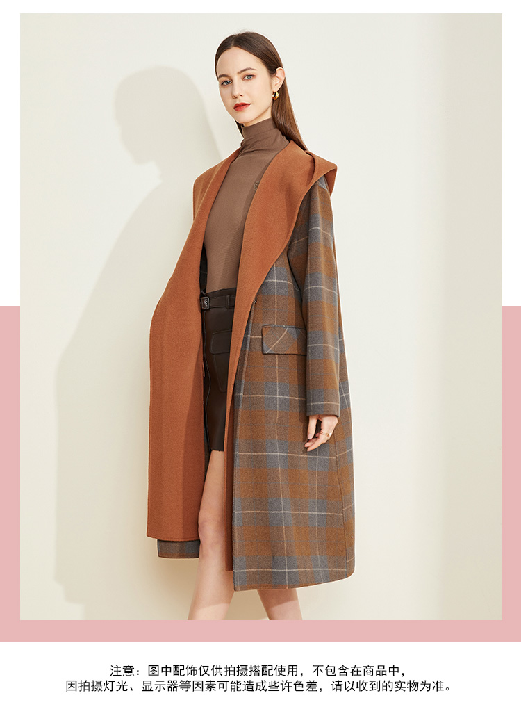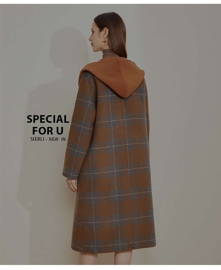 LH9M7斯尔丽2021瑟俪秋冬新款大翻领慵懒连帽宽松休闲外套双面呢大衣