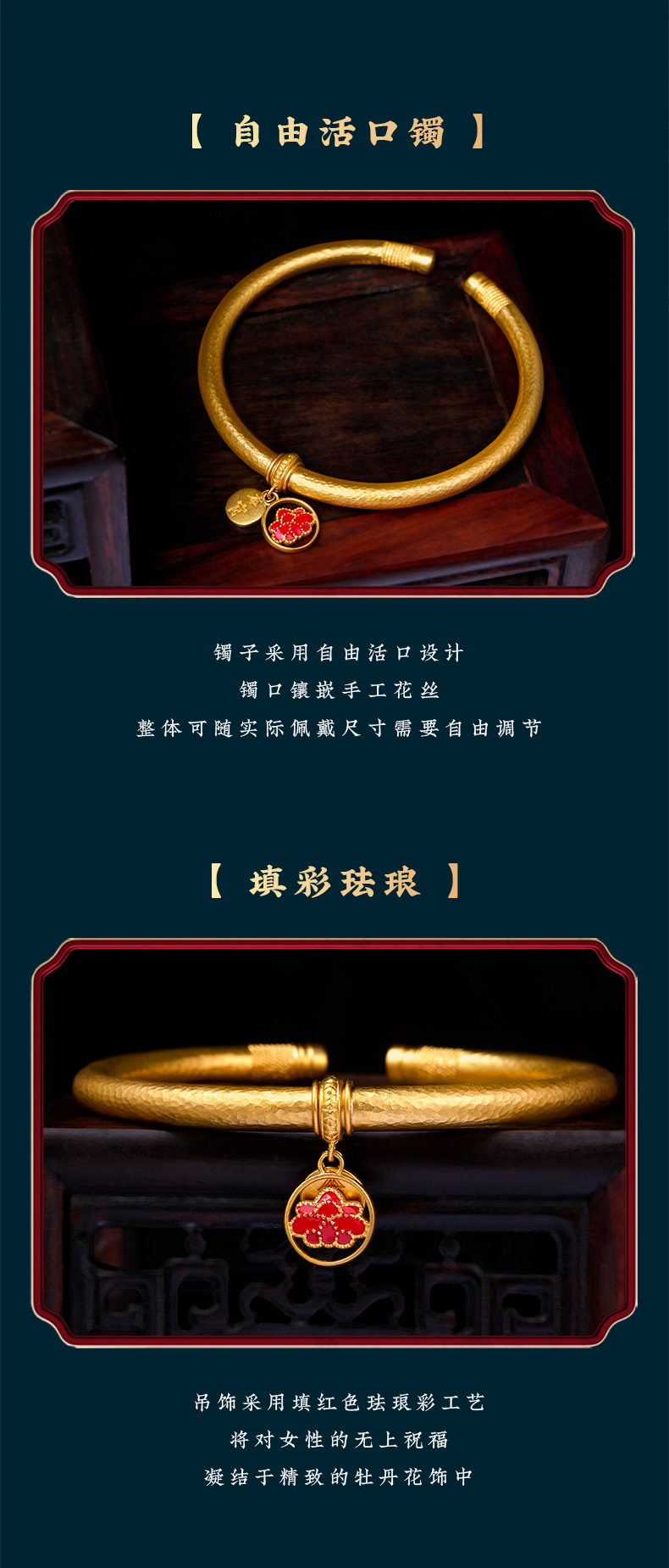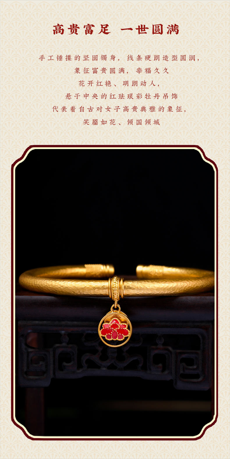 宫匠造办 十朝十美宫镯 明·国色天香黄金手镯