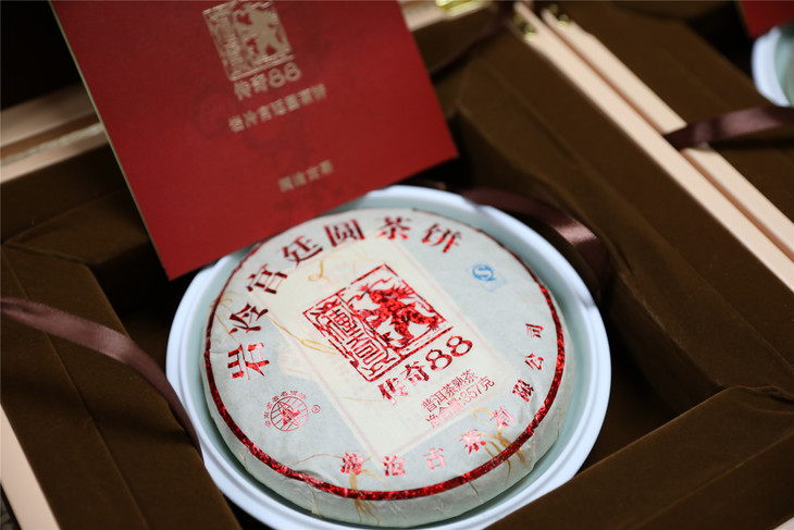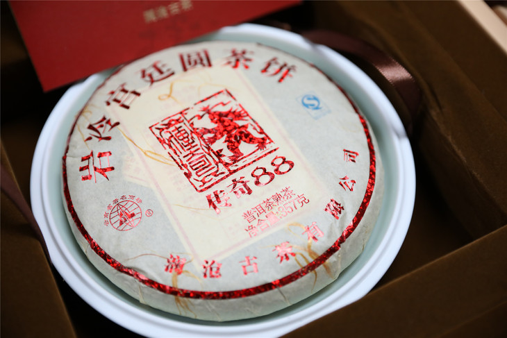 【茶礼】澜沧古茶2013年传奇88熟茶宫廷级古树357g配专用瓷盘礼盒1个