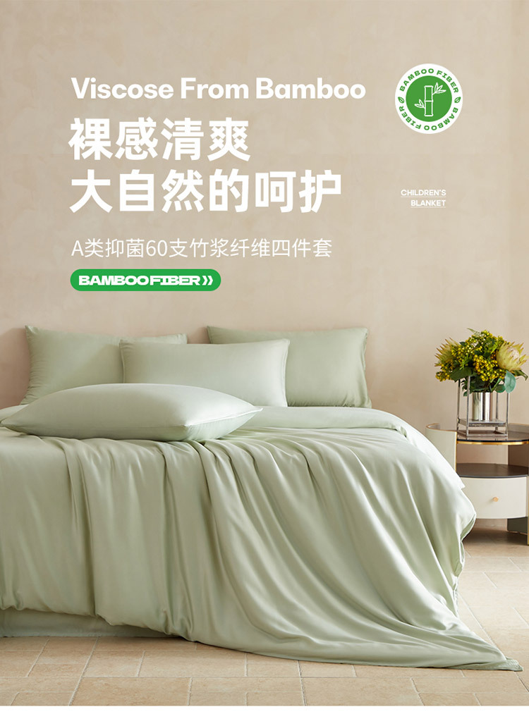【60S竹纤维四件套】高端竹纤维四件套60S纯色A类婴幼儿天然抑菌床品件套