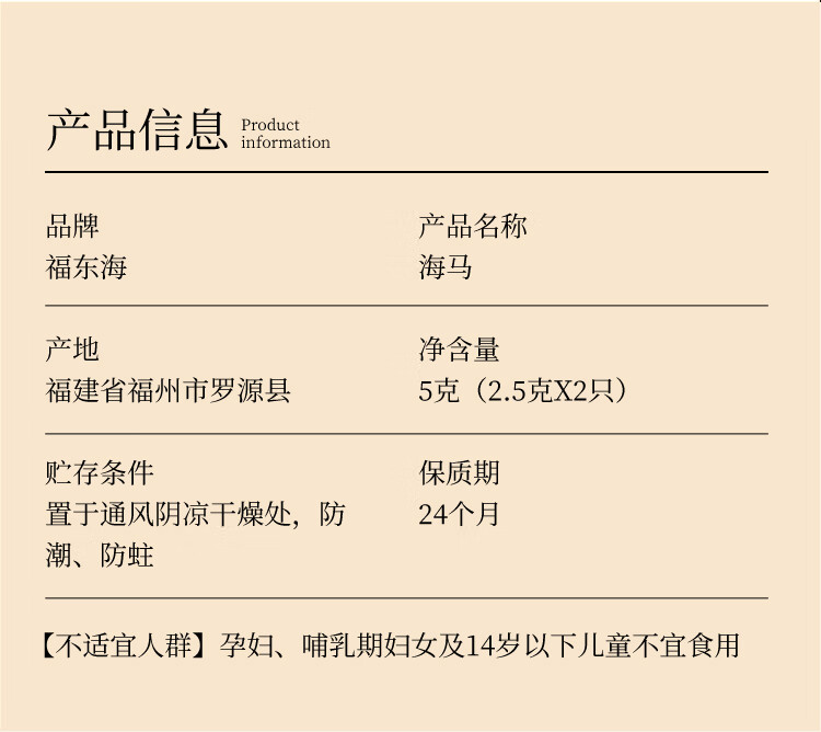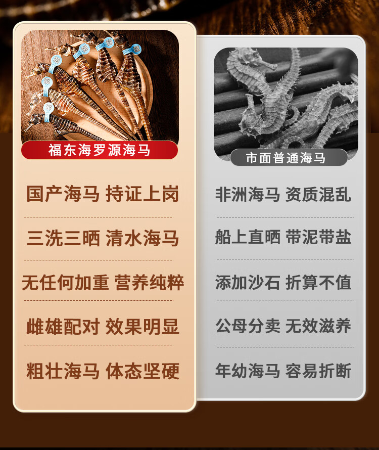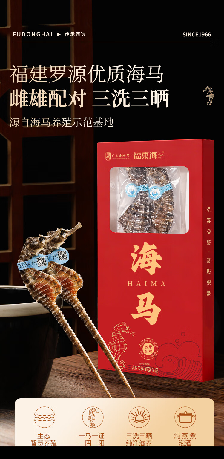 【福东海 福建海马】 一公一母 三洗三晒 自然晾干