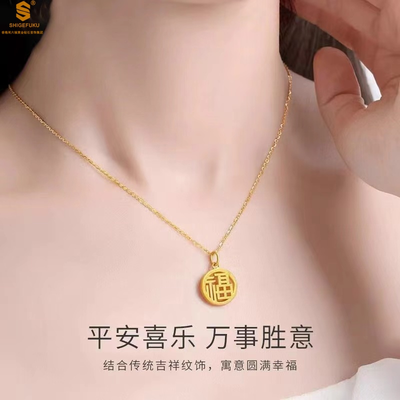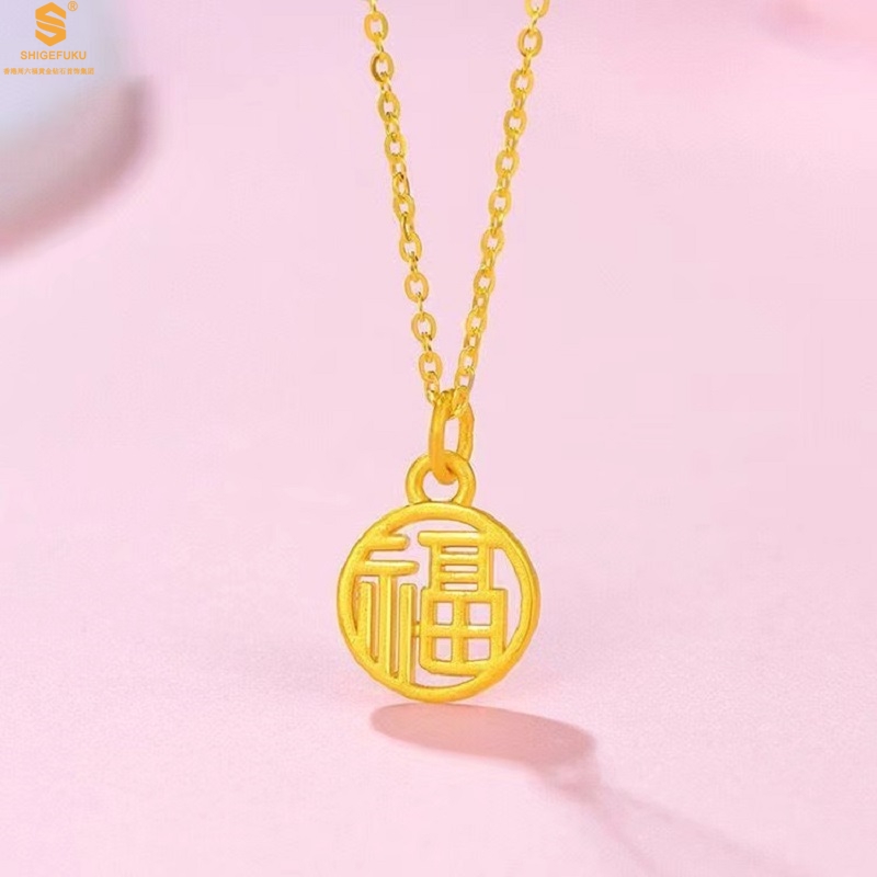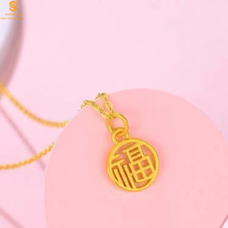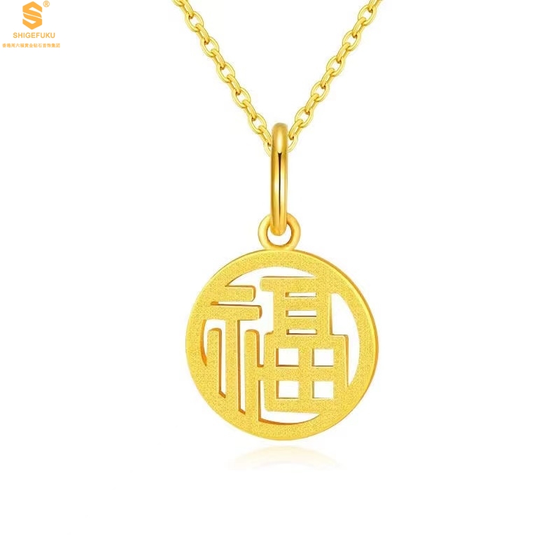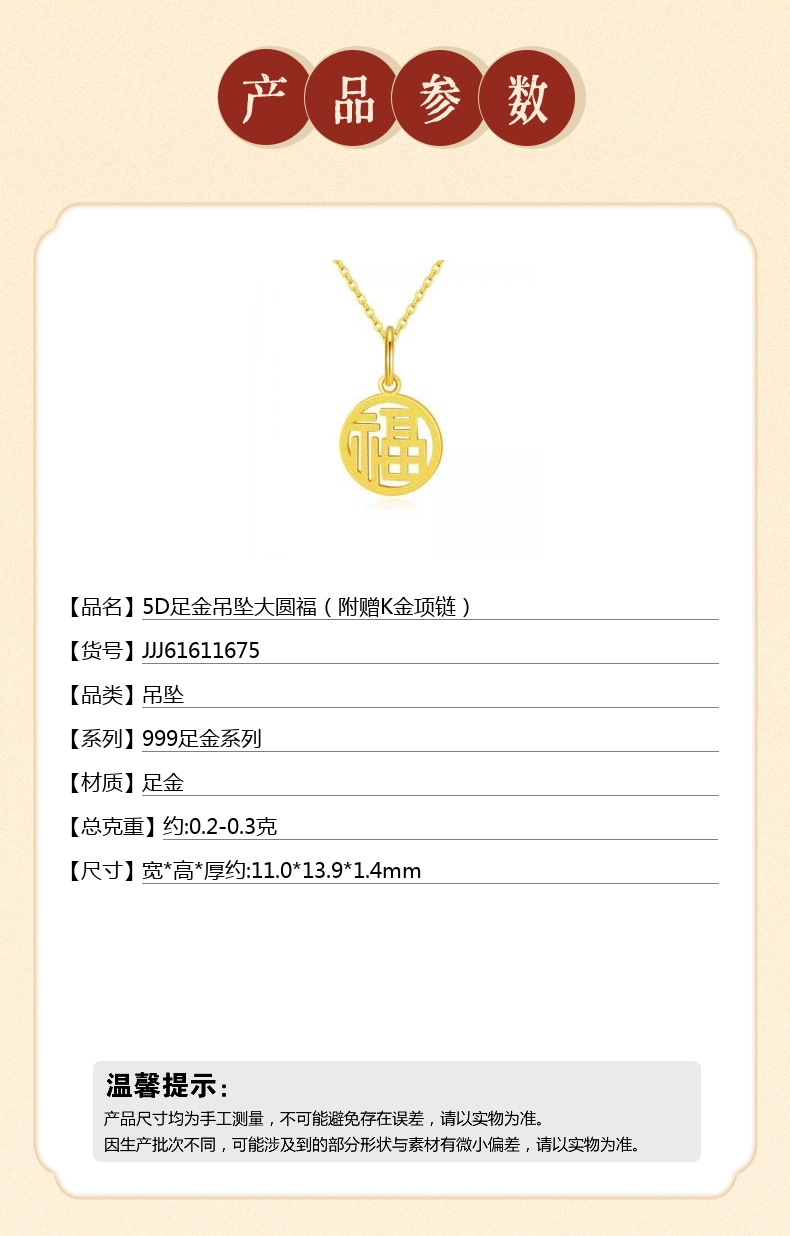 【品名】5D足金吊坠大圆福(附赠K金项链)