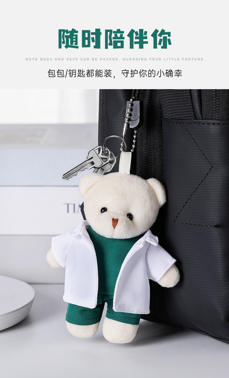 【实付满199送钥匙扣】【医生小熊钥匙扣】创意毛绒钥匙扣男女包包钥匙挂件挂饰
