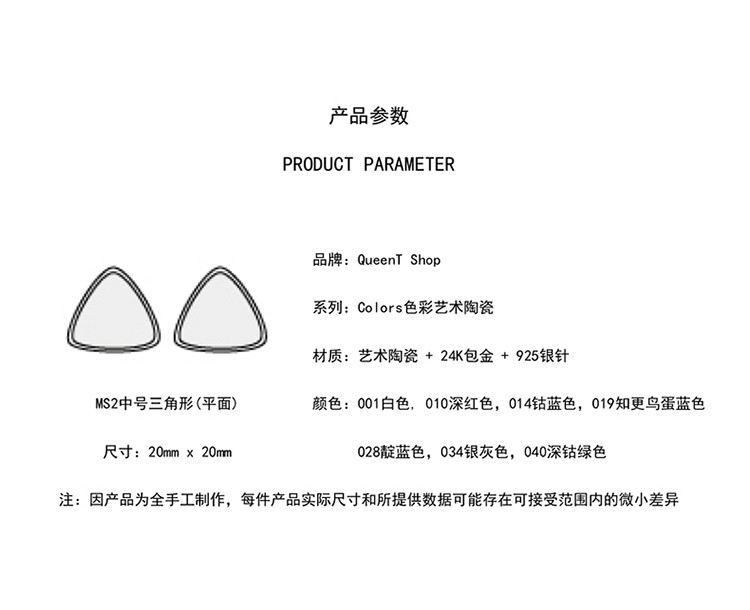 QueenT Shop(QueenT Shop) MS2中号三角形(平面)耳钉 白 均码【瑕疵折扣】