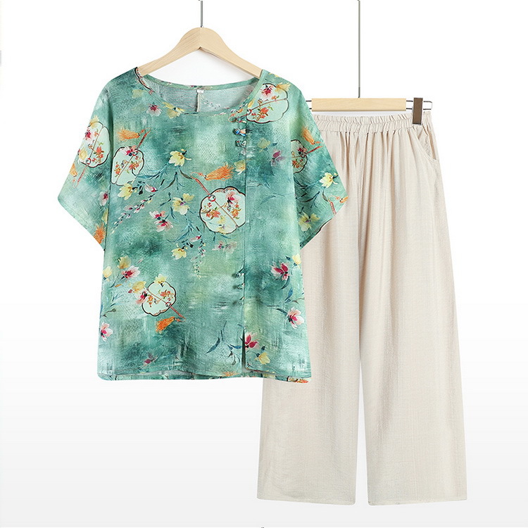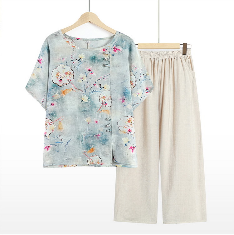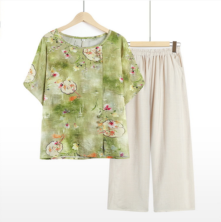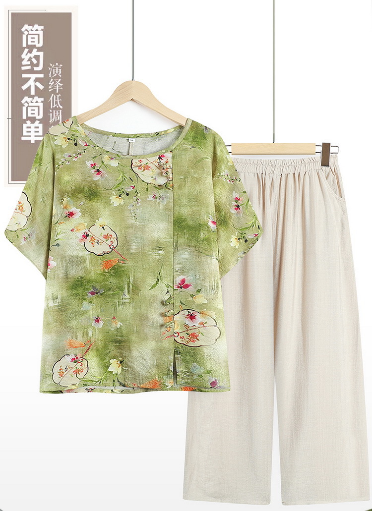 短袖天丝棉休闲套装,中老年人妈妈装加肥大码两件套TYWF-C428DEX335