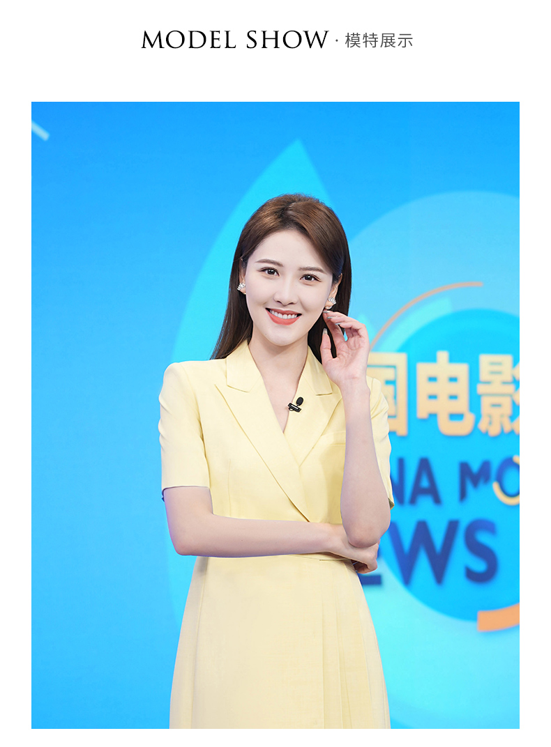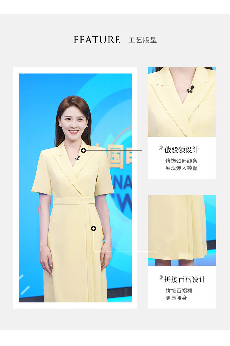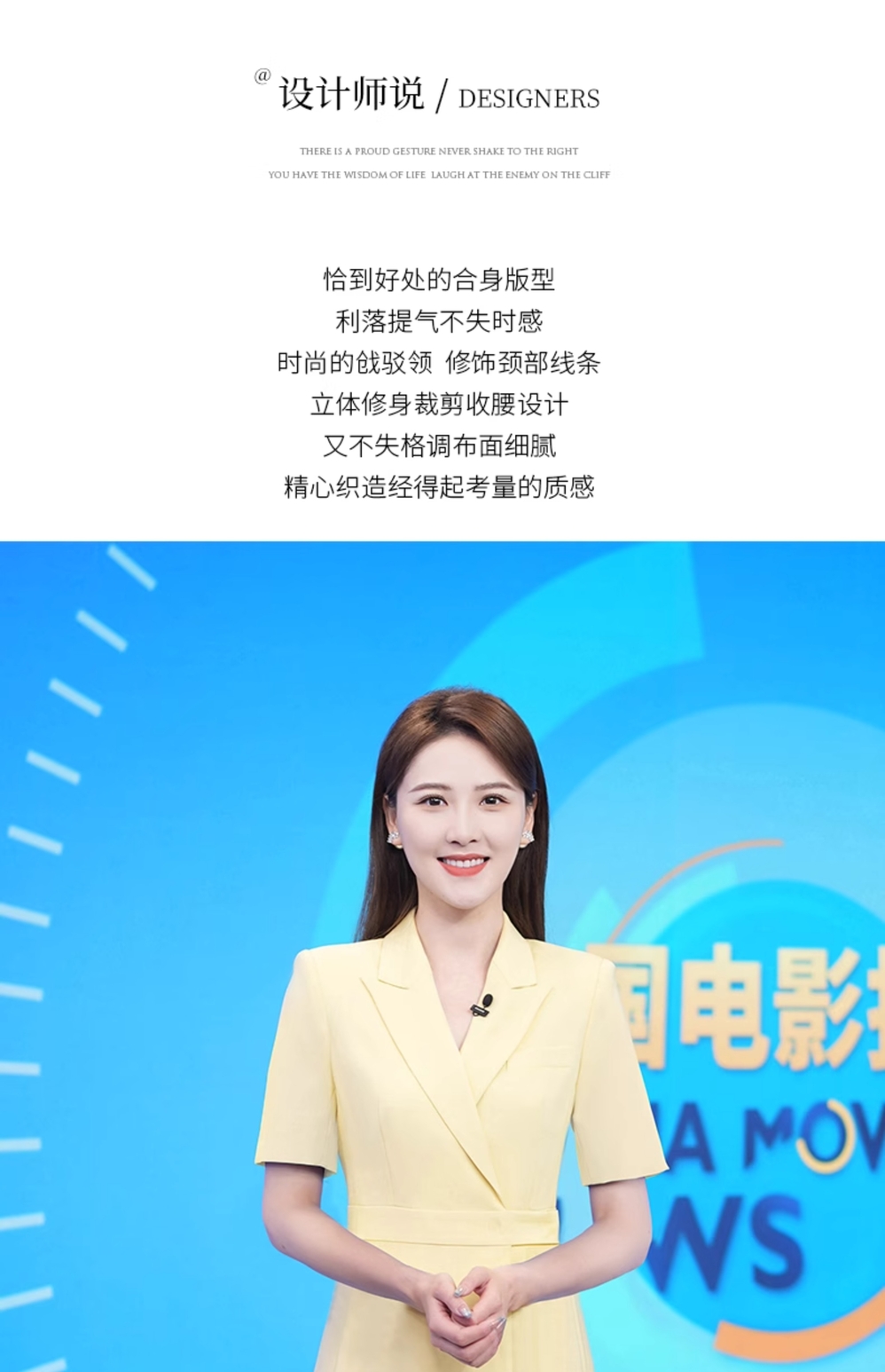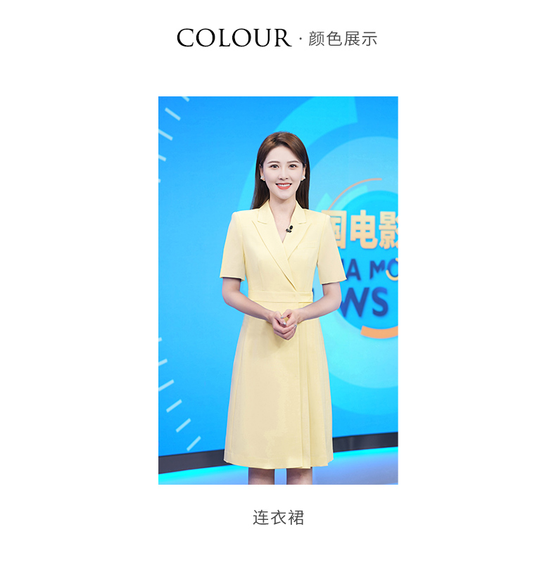 IWY/高级黄色主持人西装连衣裙职业教师录课正装裙子短袖演讲比赛24Q581