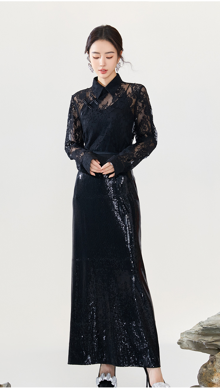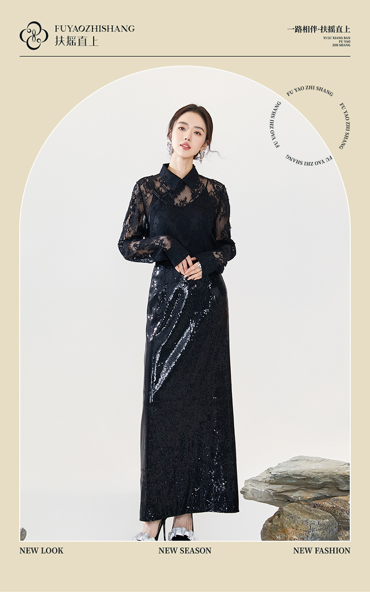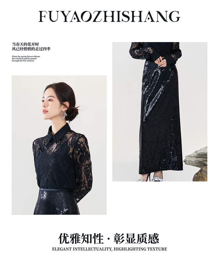 IWY/扶摇系列 国风斜襟盘扣蕾丝衬衫开叉半裙半裙FYB327+FYS328