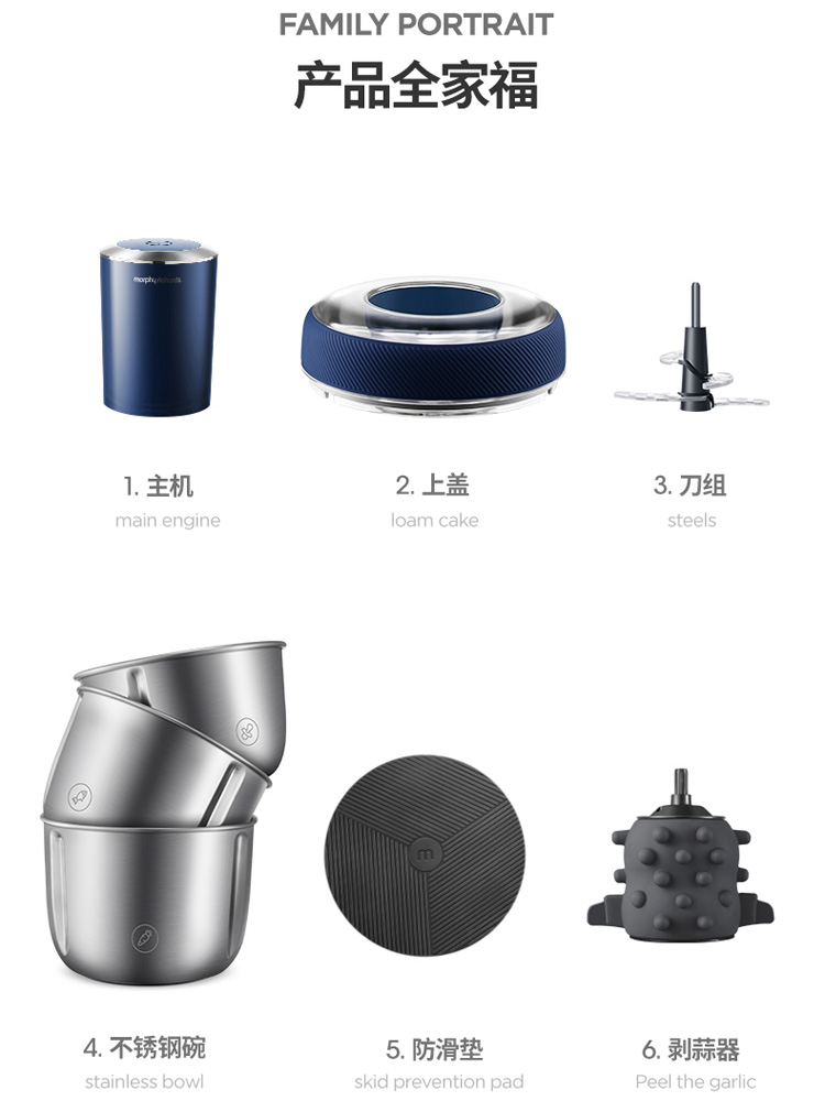 【授权商品】 摩飞电器(Morphyrichards)食物处理器MR9401 1.5L 蓝色