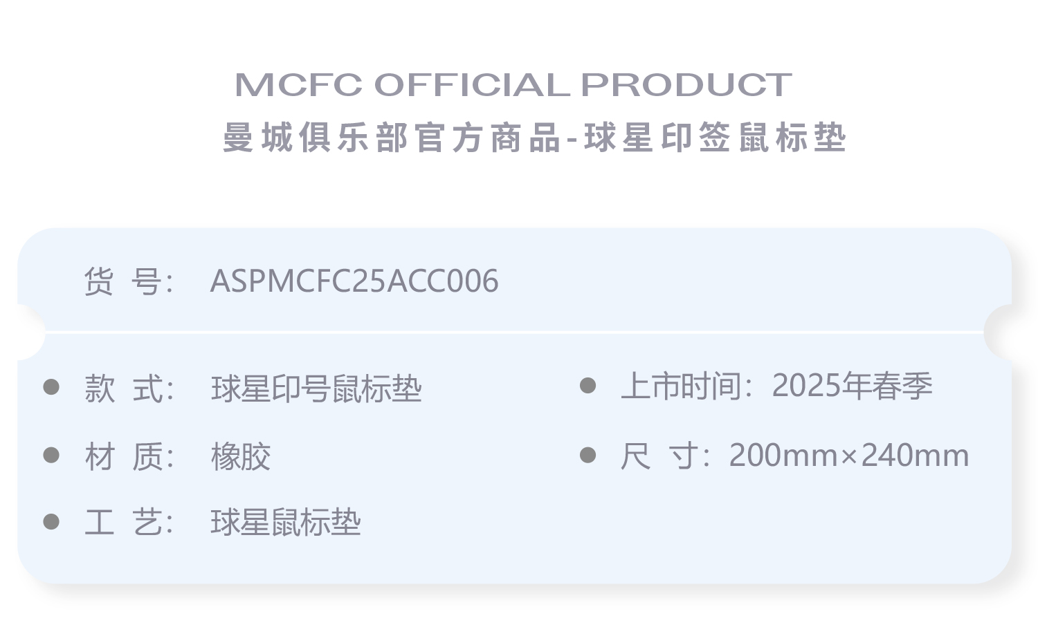【官方正版】曼城俱乐部 | 球员小号鼠标垫球迷纪念周边