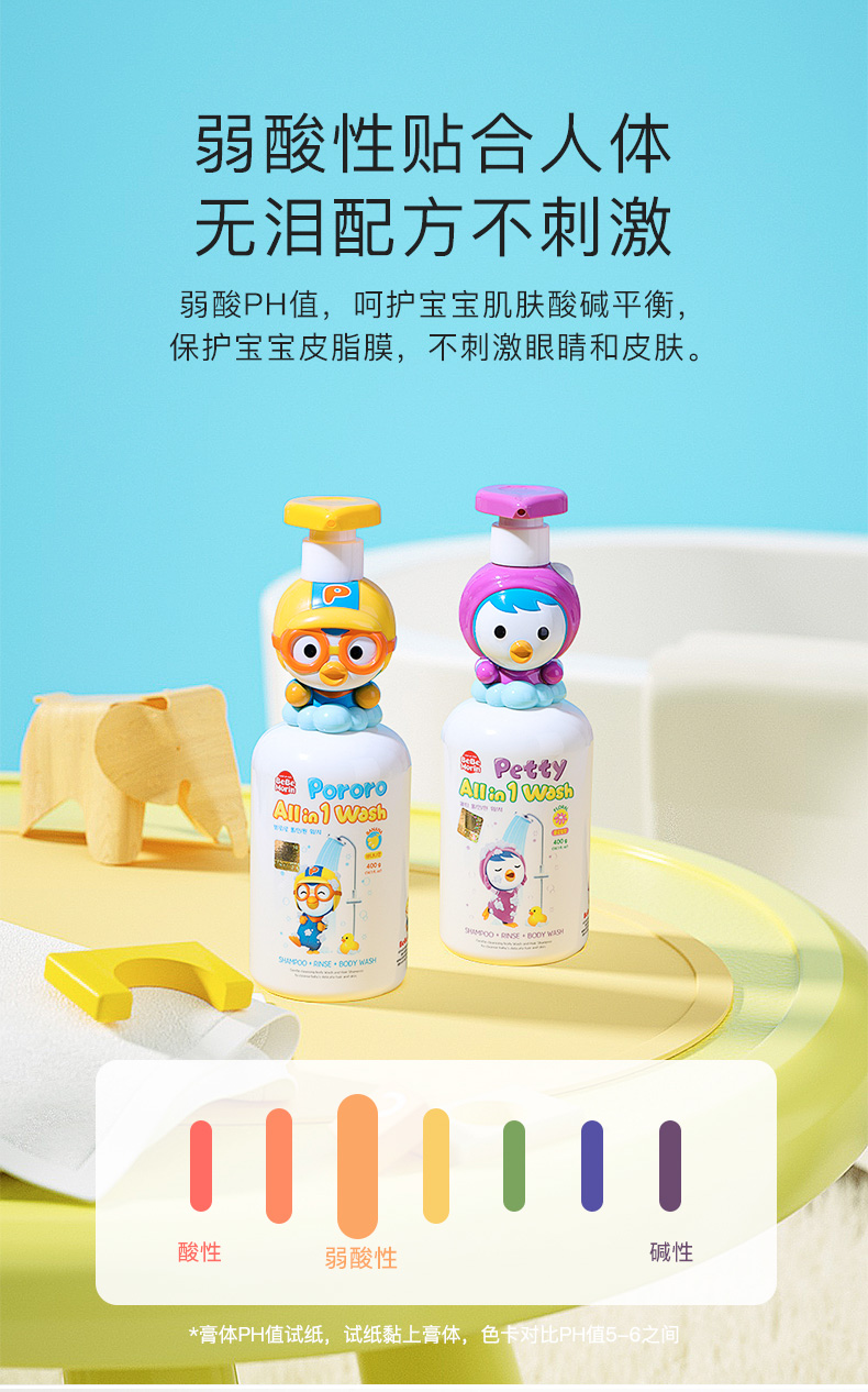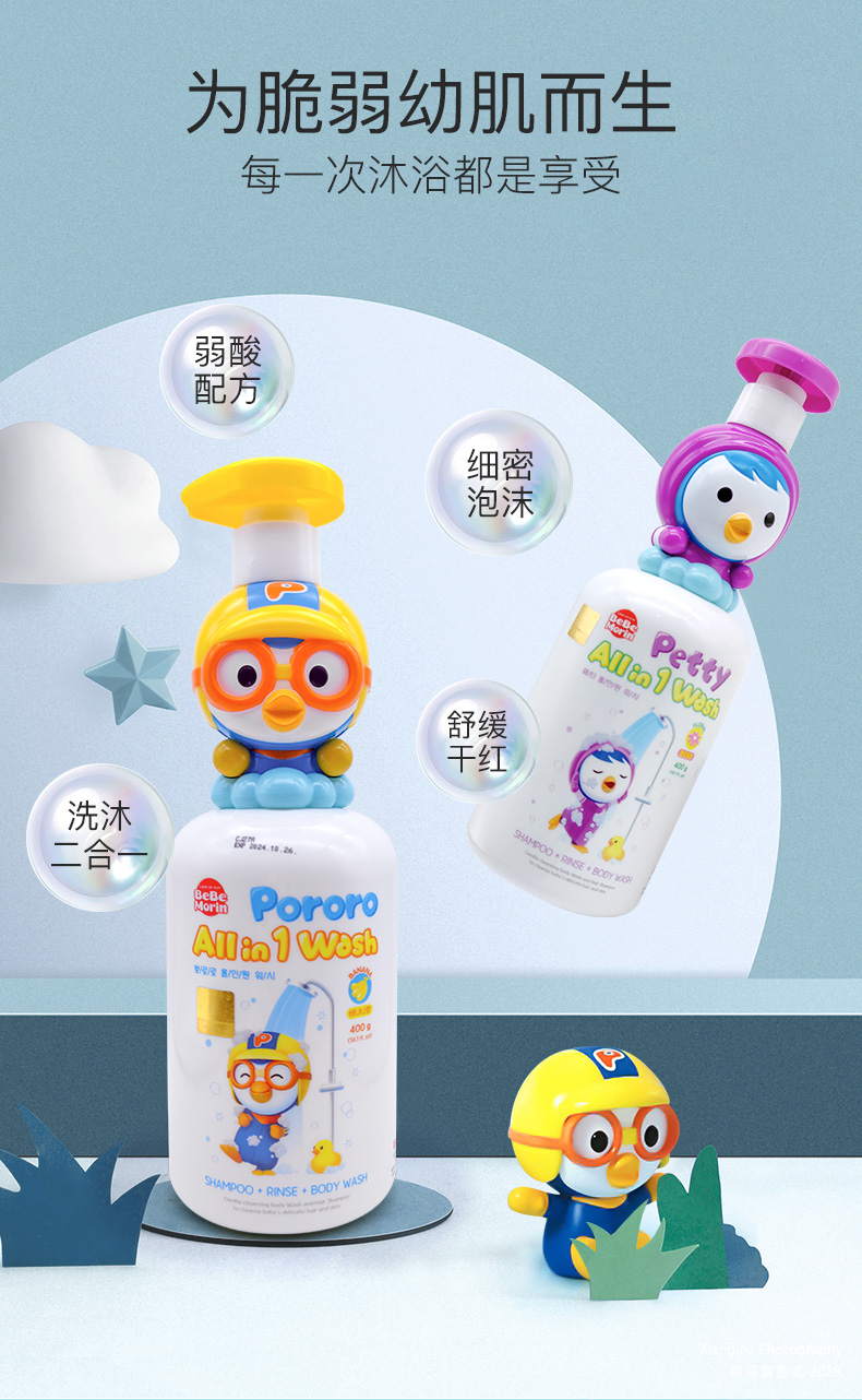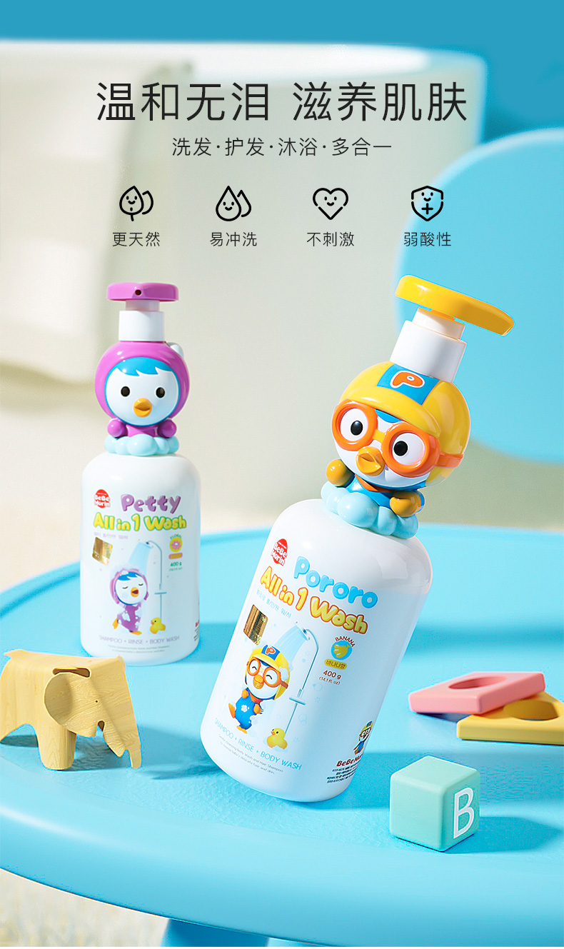 韩国pororo啵乐乐儿童三合一洗护沐浴露花香味400g /117994 植物萃取滋润保湿