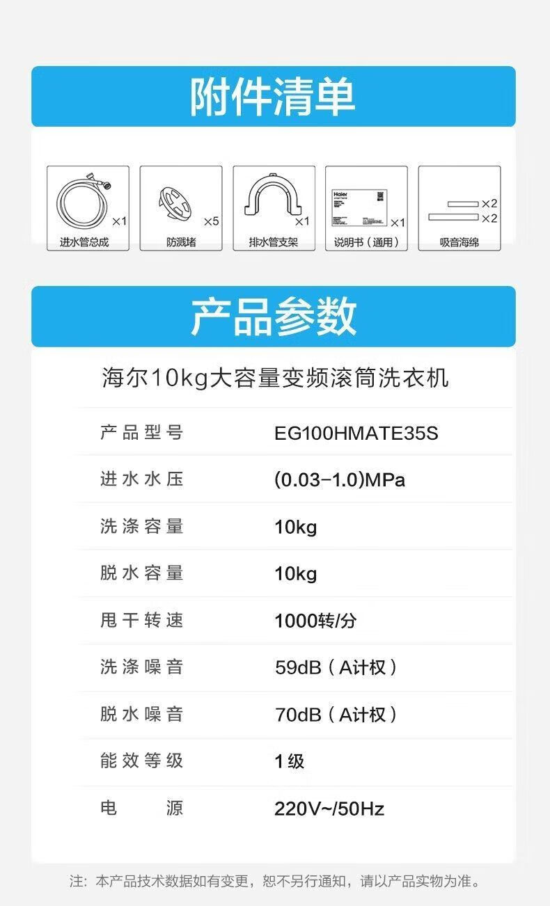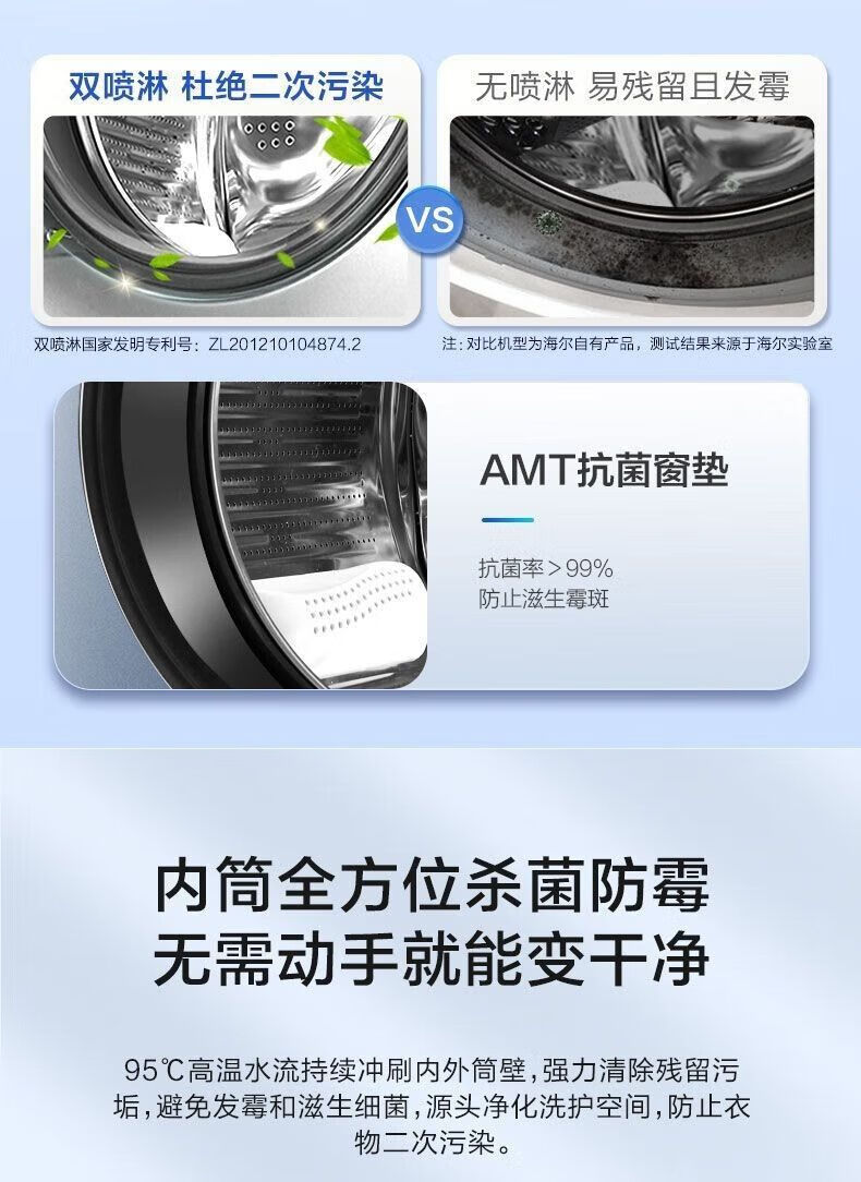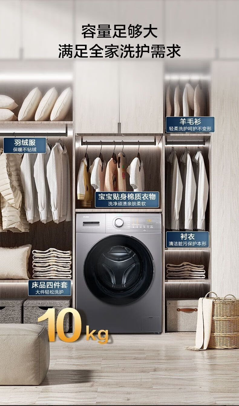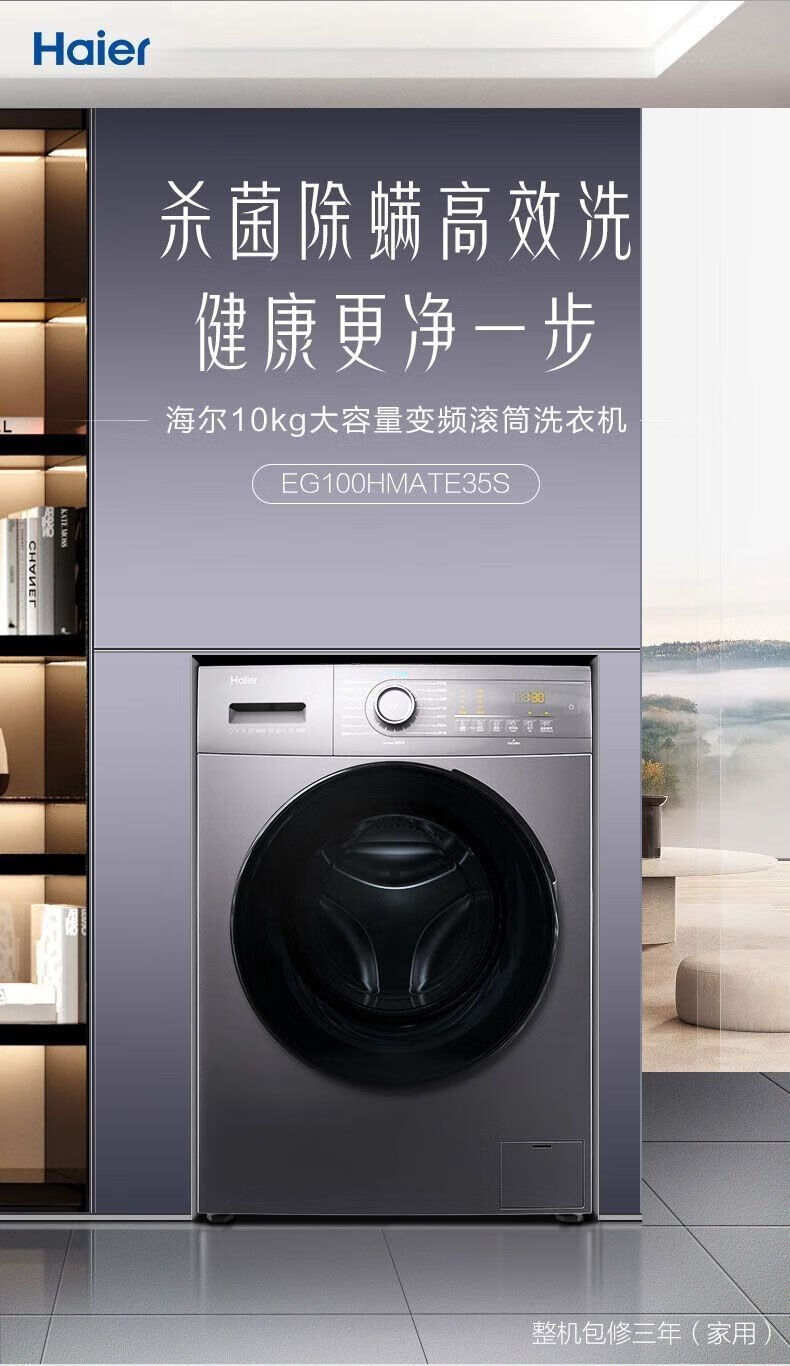 海尔洗衣机10公斤滚筒全自动家用洗烘一体带烘干变频中途添衣筒自洁 EG100HMATE35S 双喷淋微蒸汽空气洗除菌螨