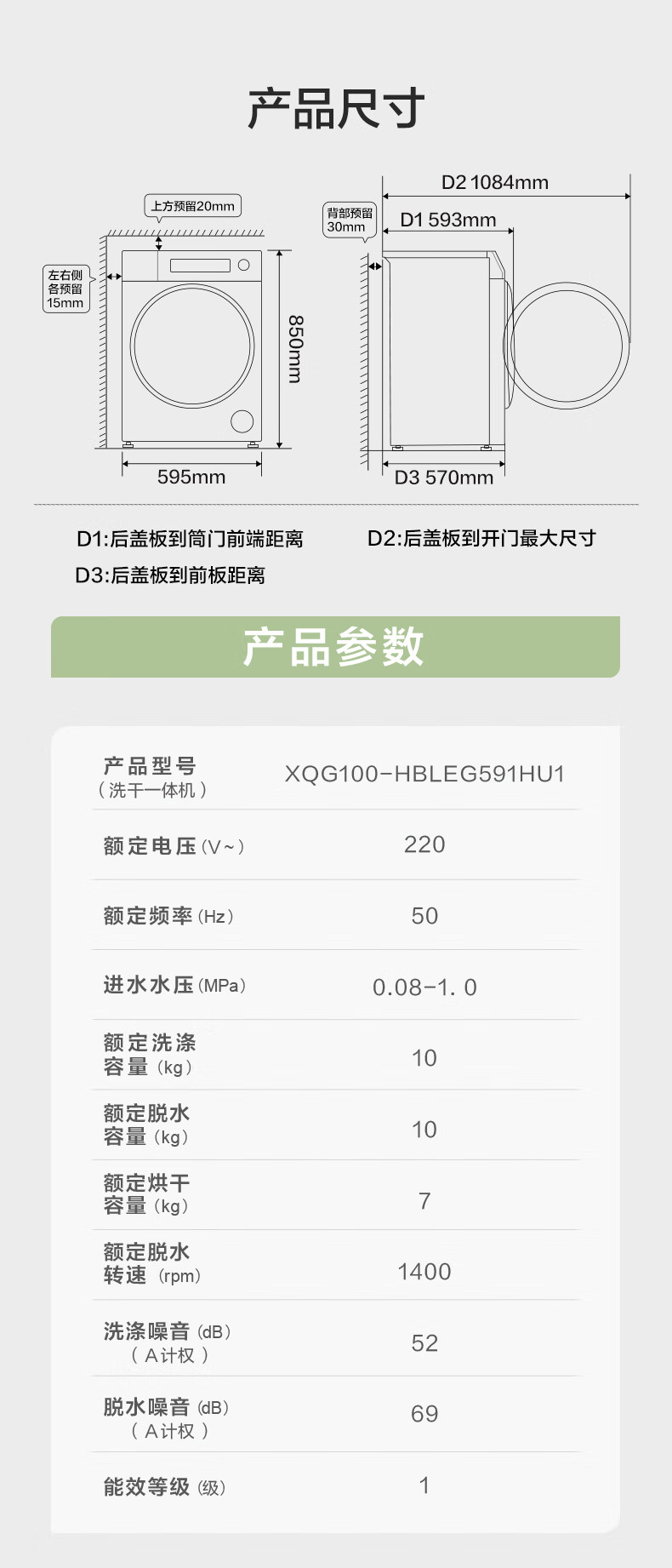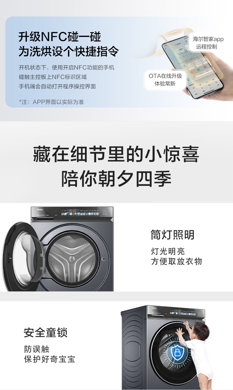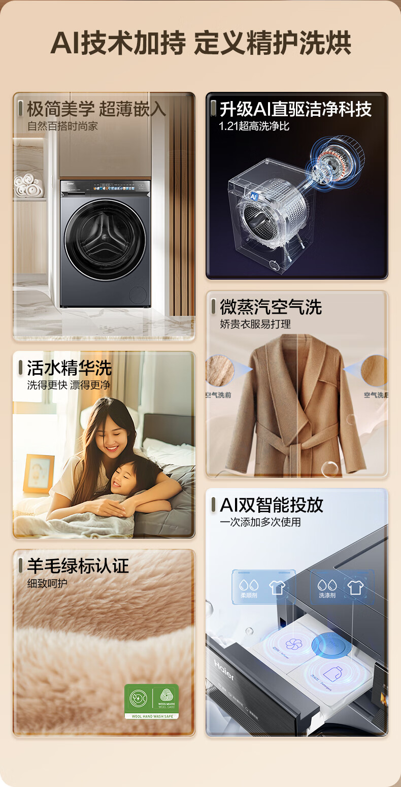 海尔(Haier)云溪4.0洗烘一体机 活水精华洗、双智投、离子除菌 XQG100-HBLEG591HU1