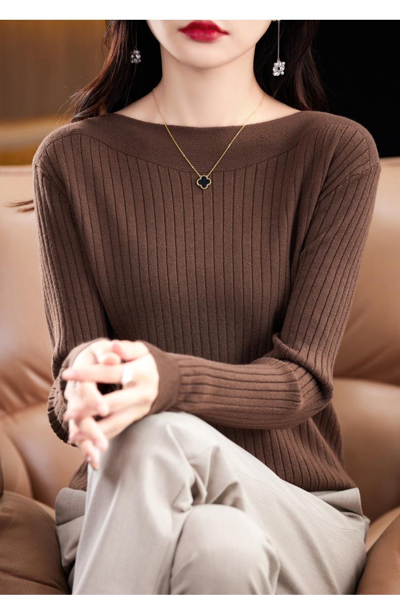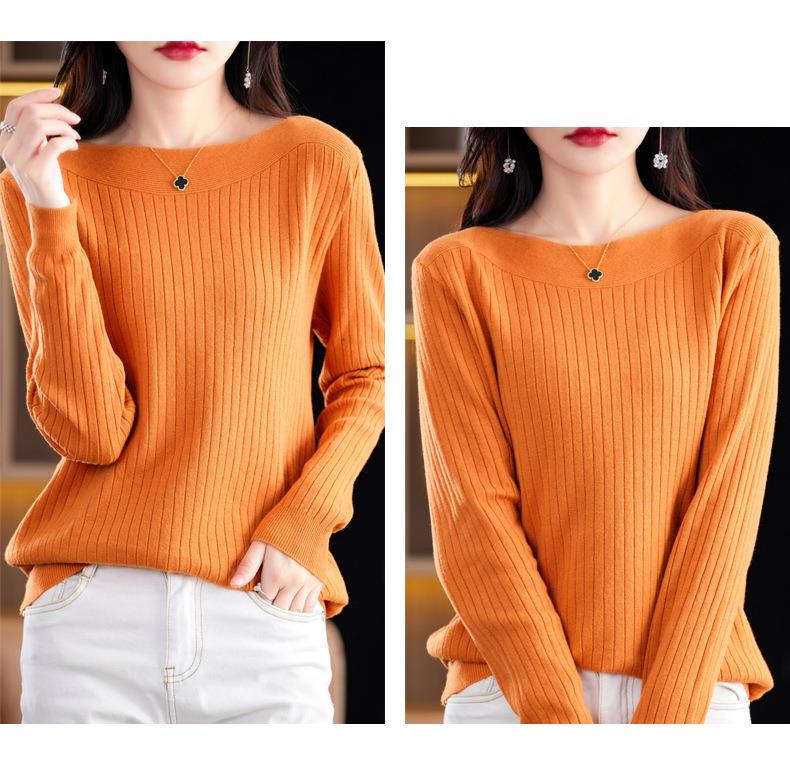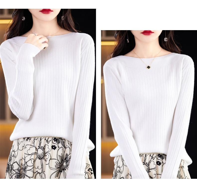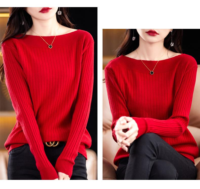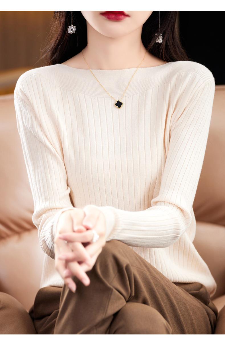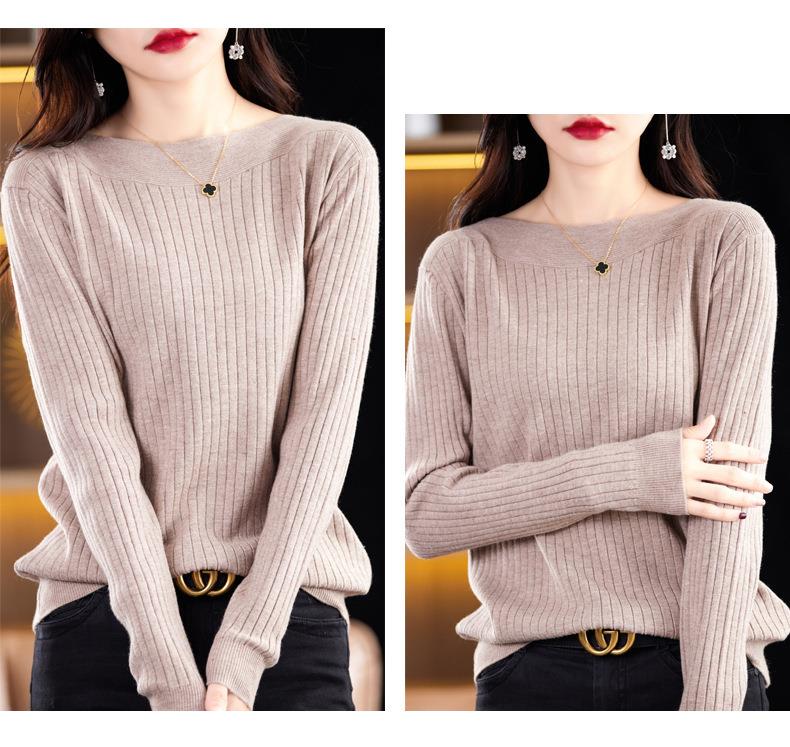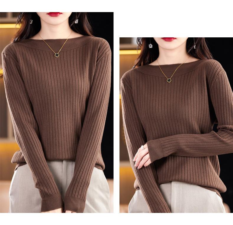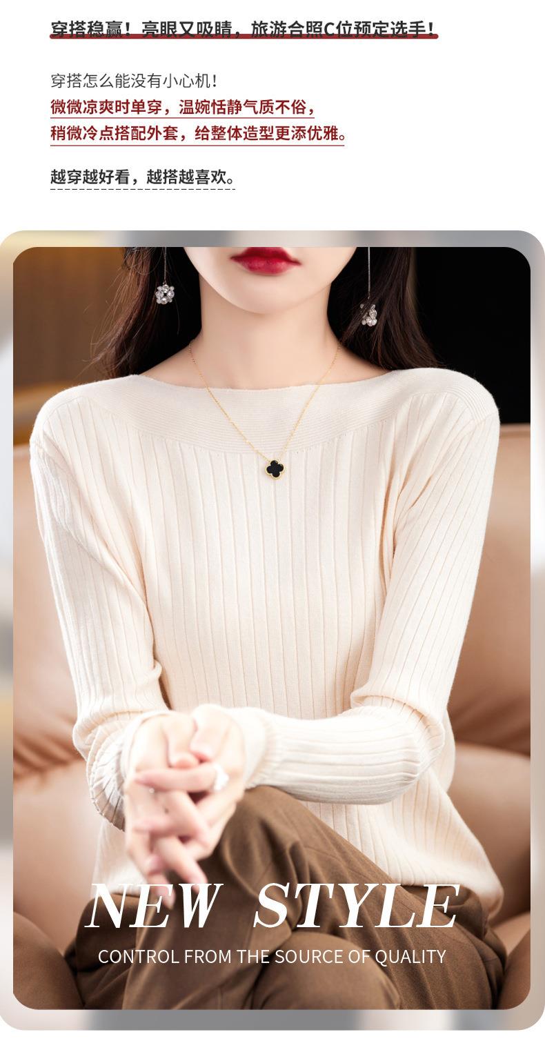 2023秋季新款针织衫毛衣女一字领打底衫女长袖