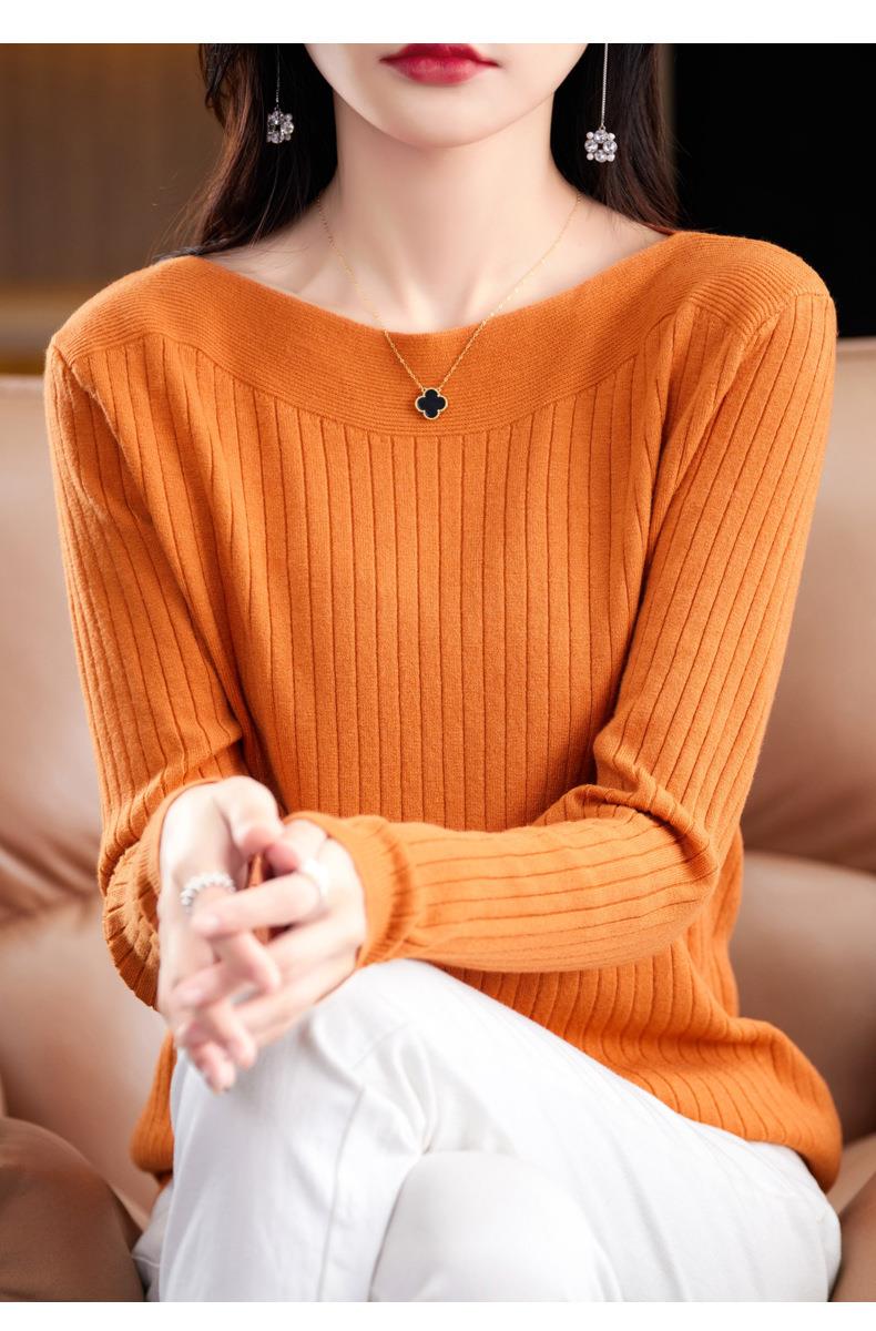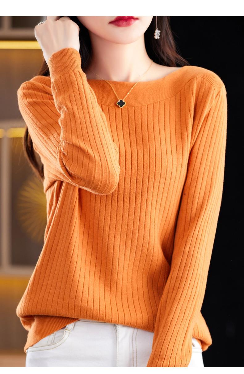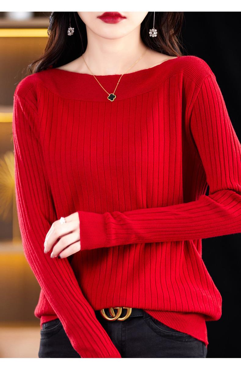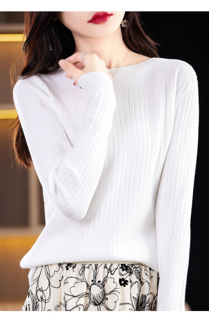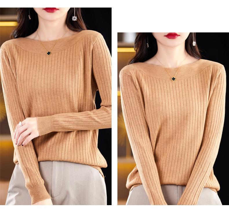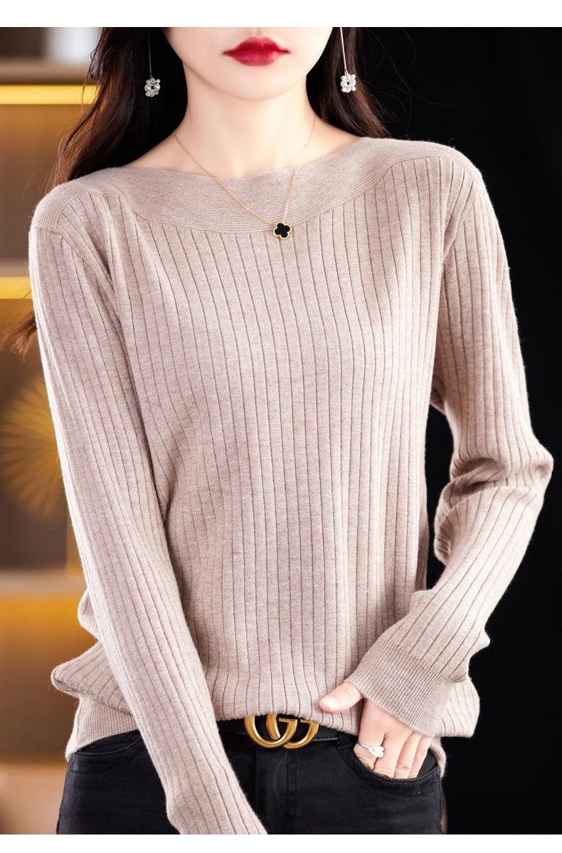 2023秋季新款针织衫毛衣女一字领打底衫女长袖