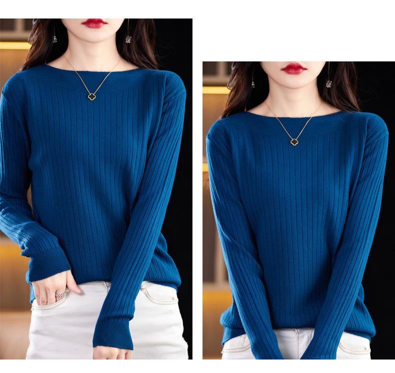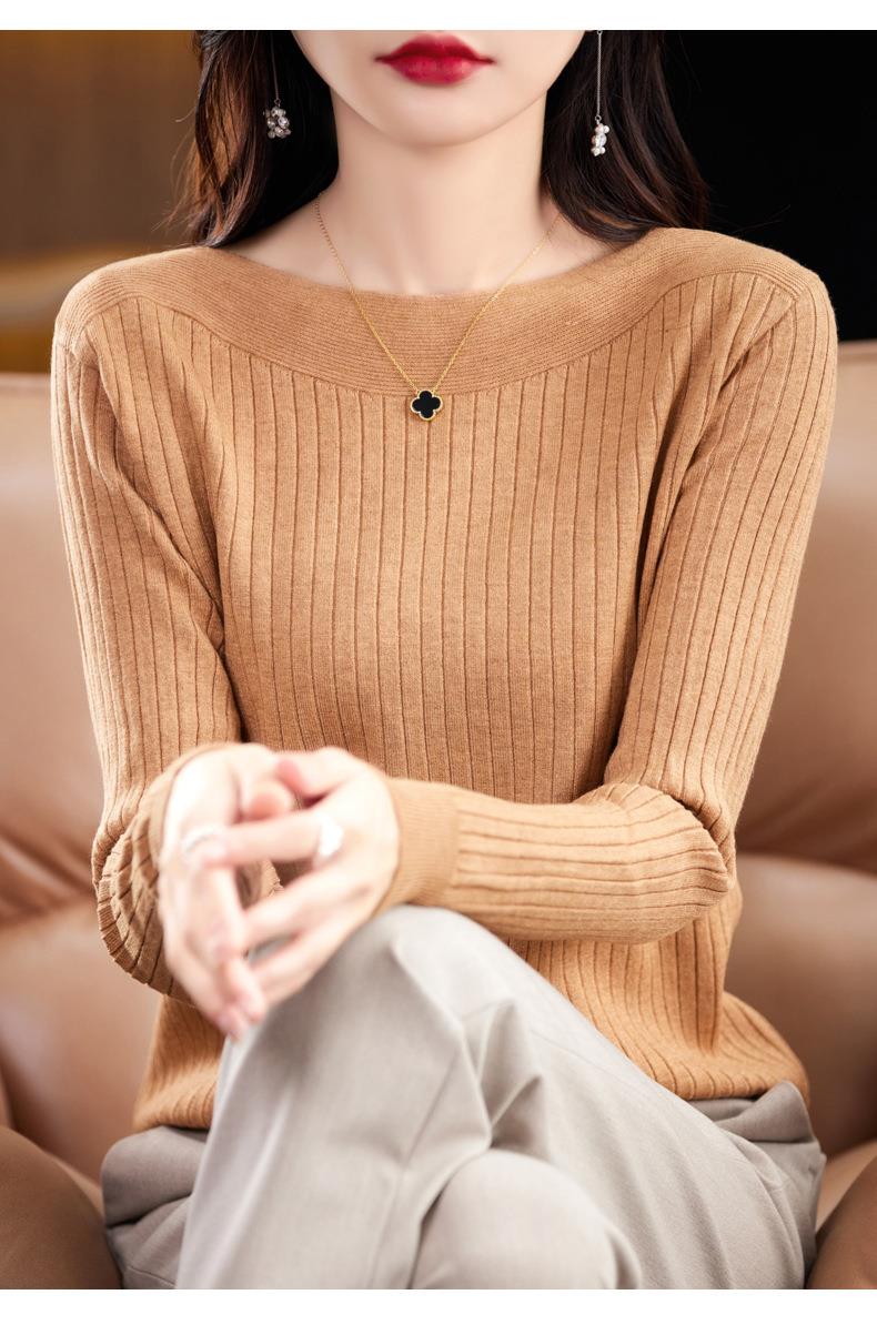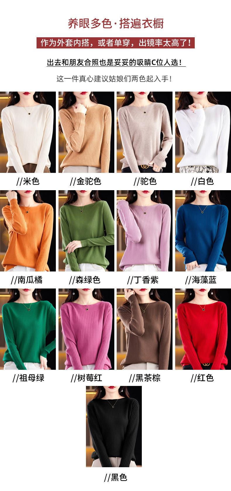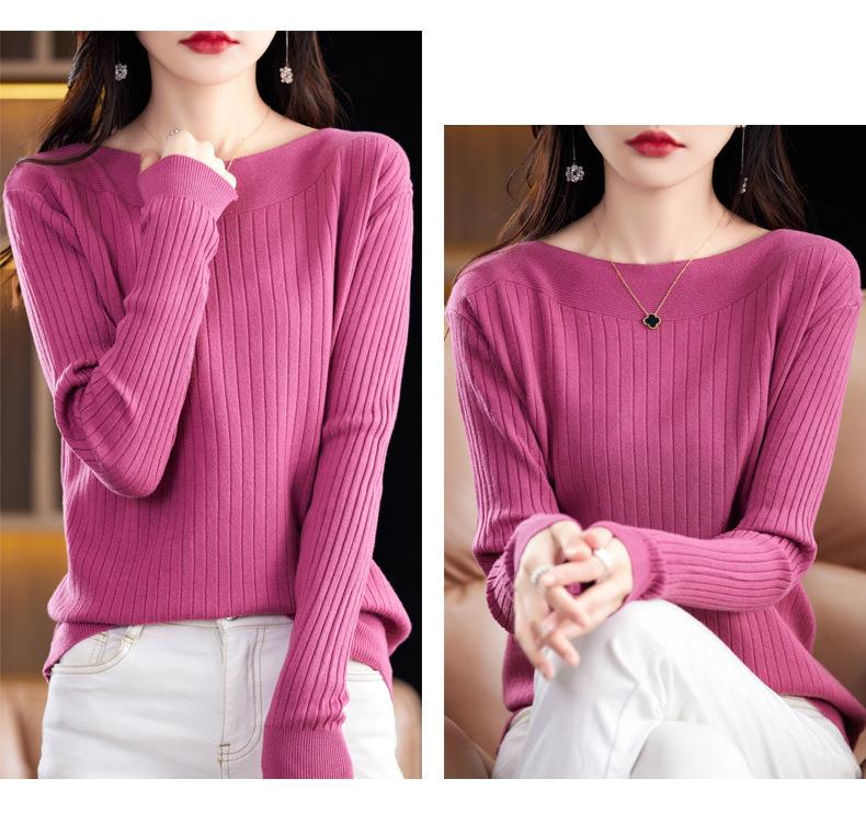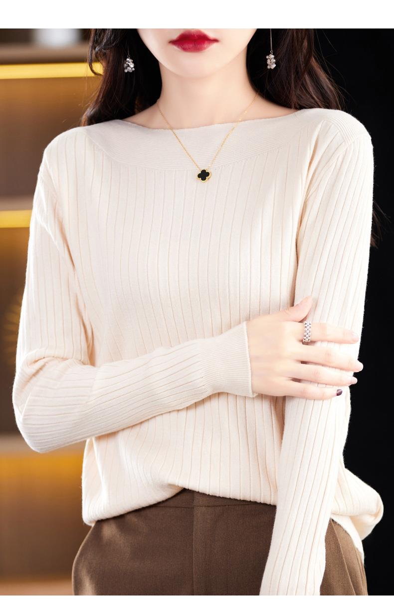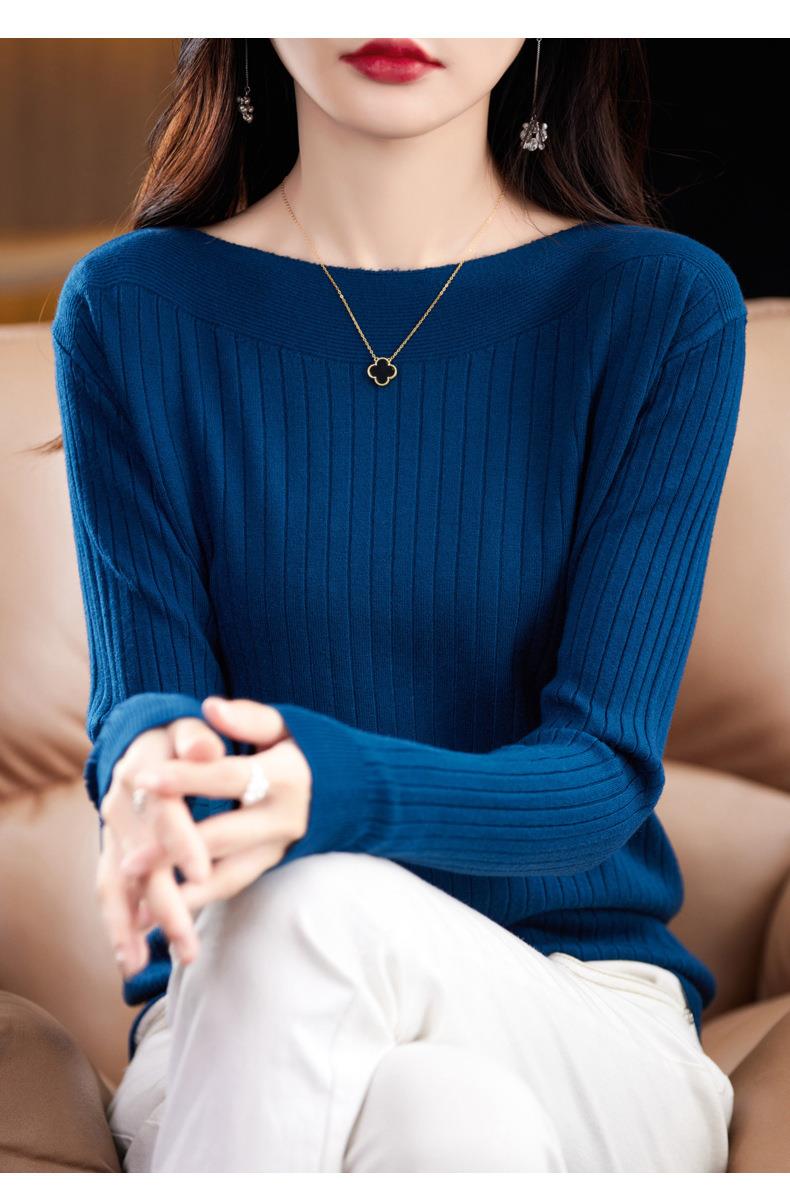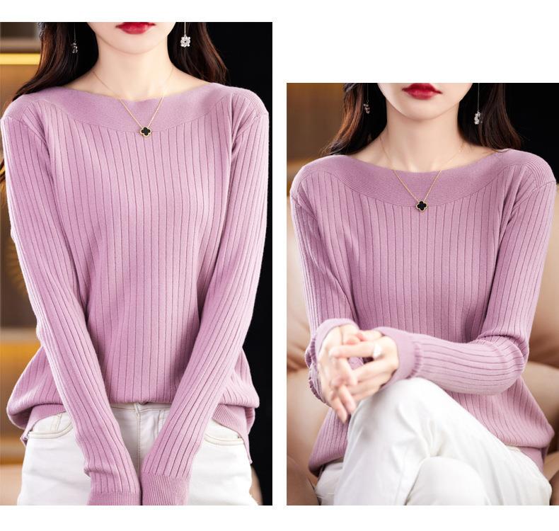 2023秋季新款针织衫毛衣女一字领打底衫女长袖