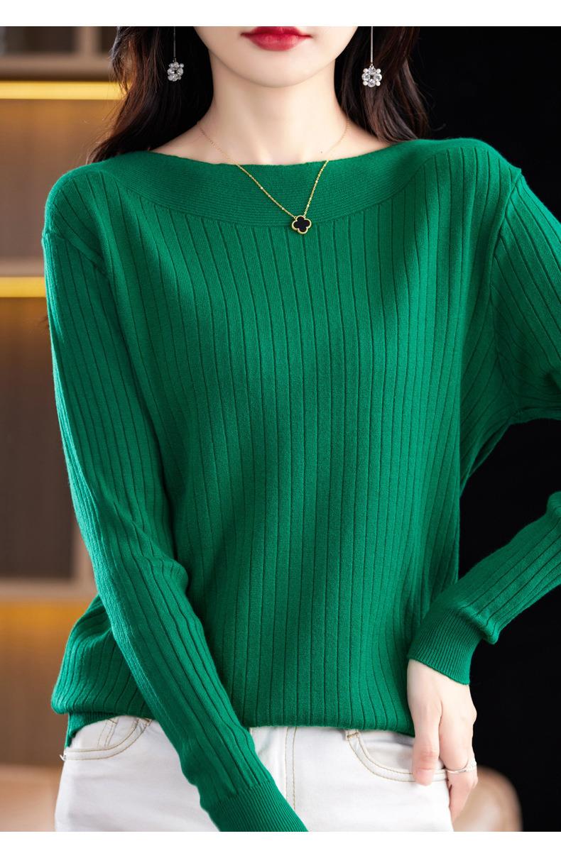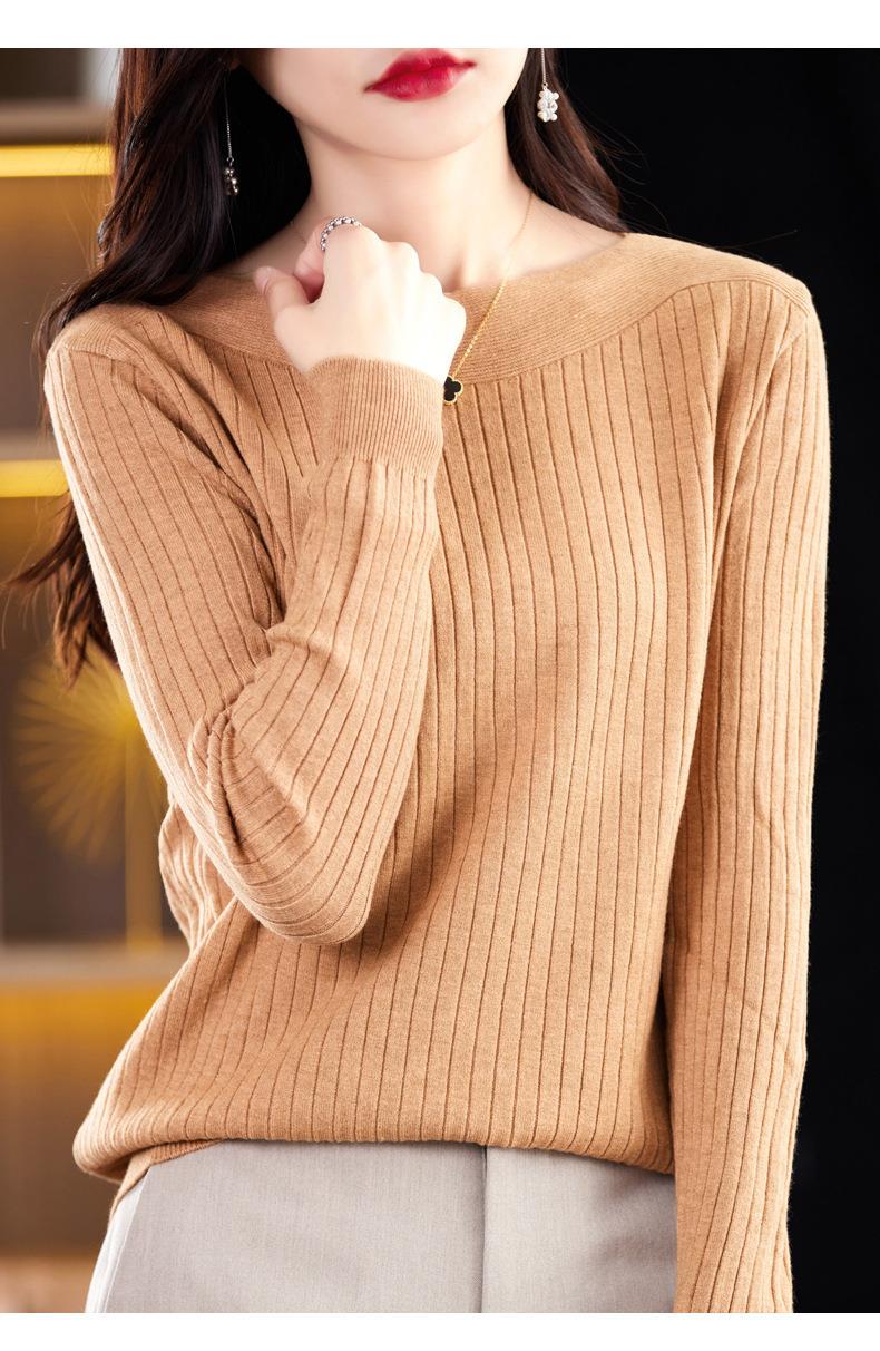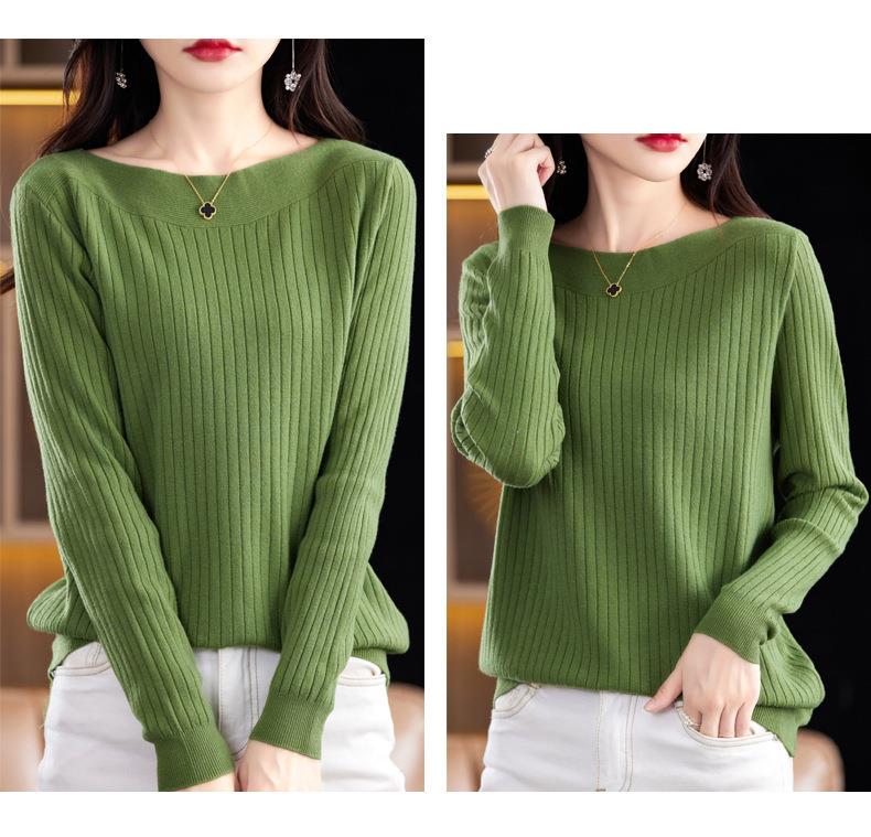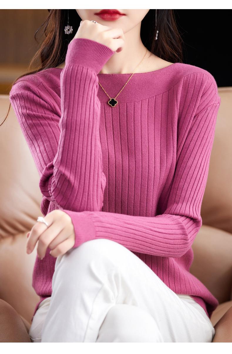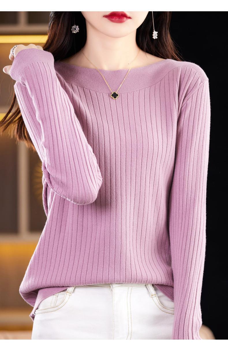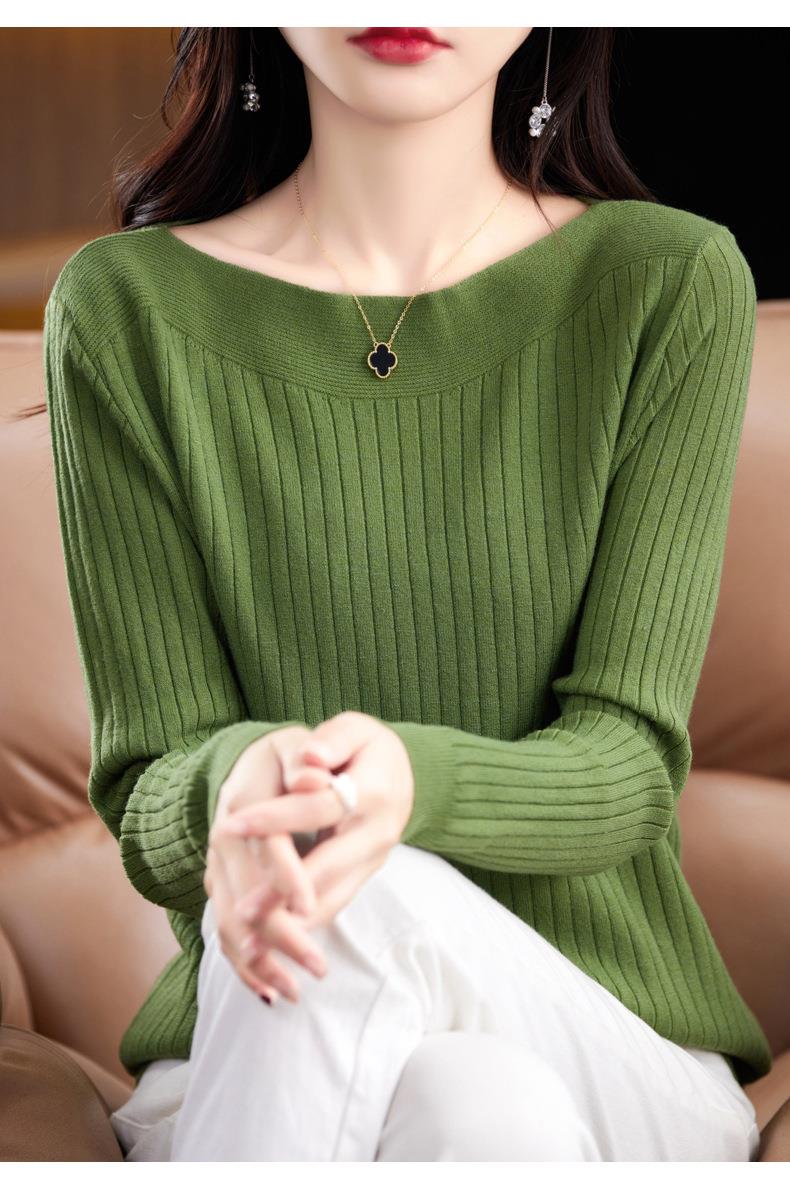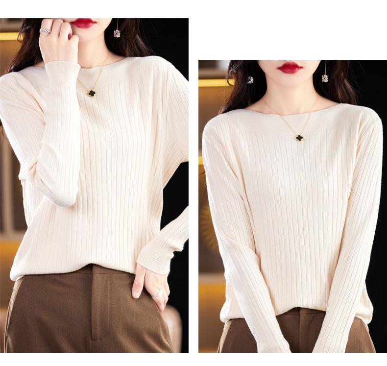 2023秋季新款针织衫毛衣女一字领打底衫女长袖
