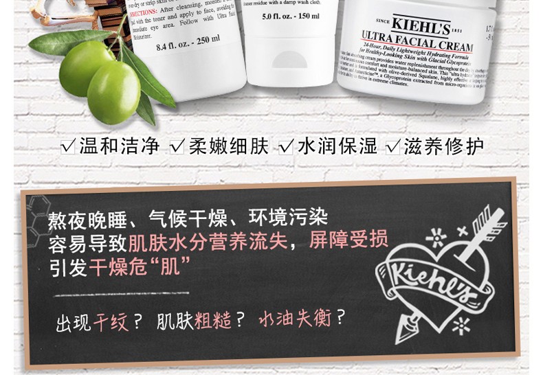 KIEHL'S/科颜氏 高保湿三件套(洁面+水+面霜)