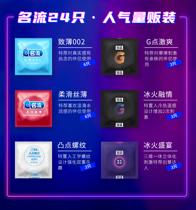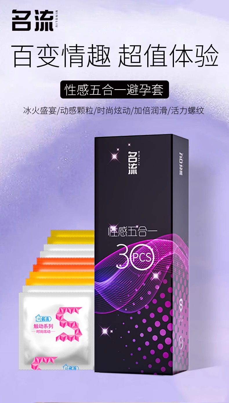 名流避孕套安全套3盒84只装 性感五合一 冰火六合一 至薄002大盒情趣套套计生情趣